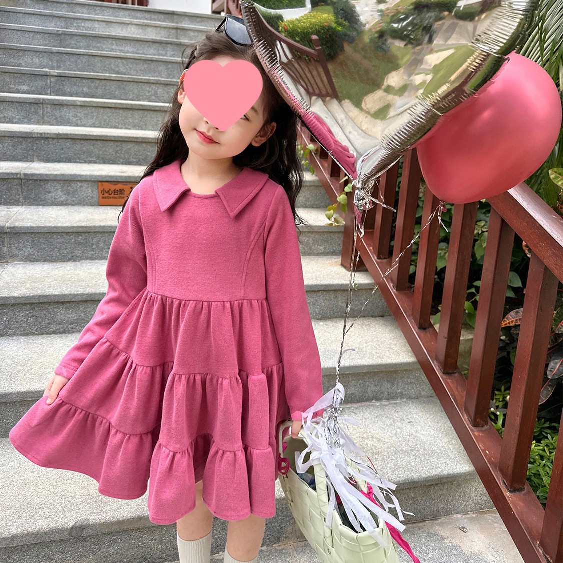 소녀 캐주얼 가을 원피스 2024 새로운 중소 어린이 한국 서양식 단색 긴 소매 세련된 공주 원피스