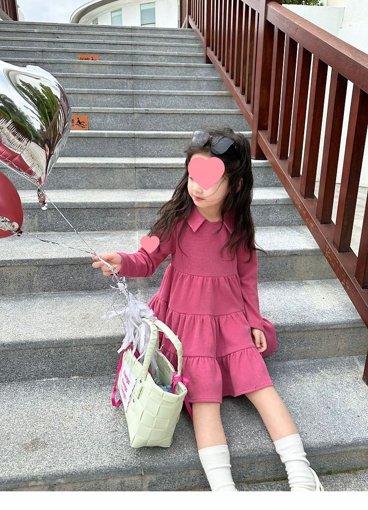소녀 캐주얼 가을 원피스 2024 새로운 중소 어린이 한국 서양식 단색 긴 소매 세련된 공주 원피스스토어 가기