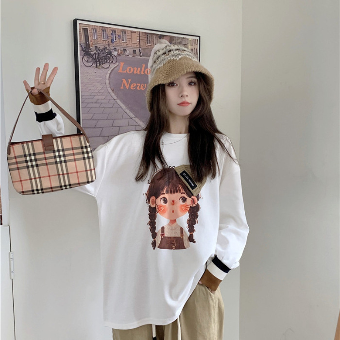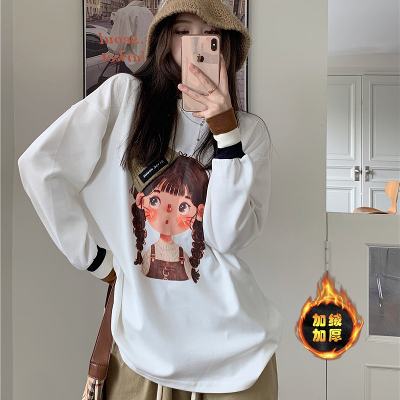 AL114 # 기모/기모 봄과 가을이 아닌 긴팔 중간 길이 티셔츠 여성용 내복 플러스 사이즈 바닥 셔츠 탑스토어 가기