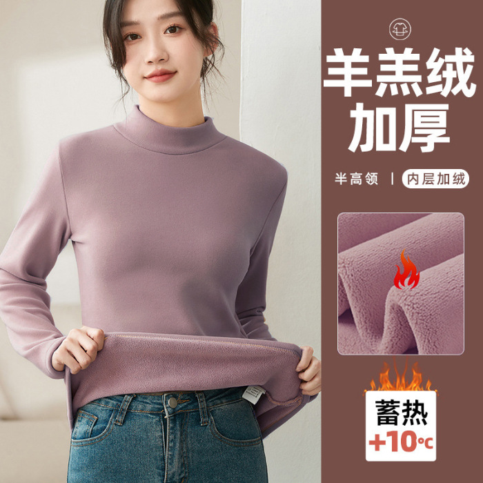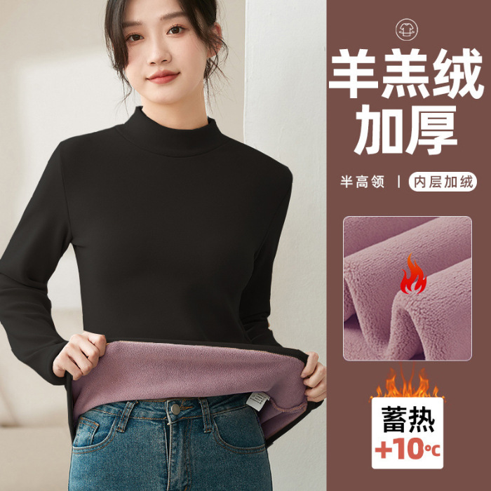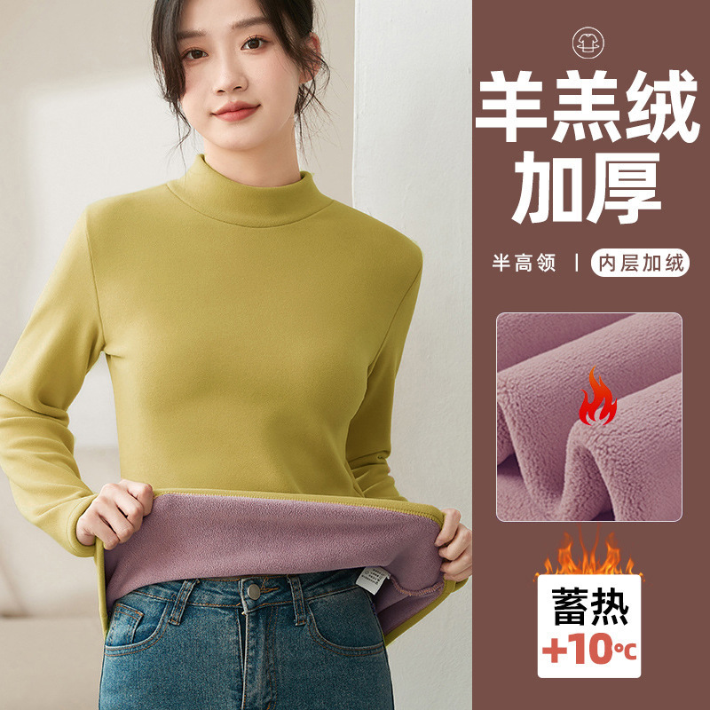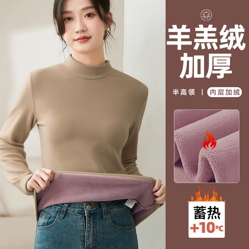 MO12 #500g 폴라 플리스 따뜻한 기모 두꺼운 바닥 셔츠 여성용 가을과 겨울 내부 슬림 하프 터틀넥 티셔츠스토어 가기