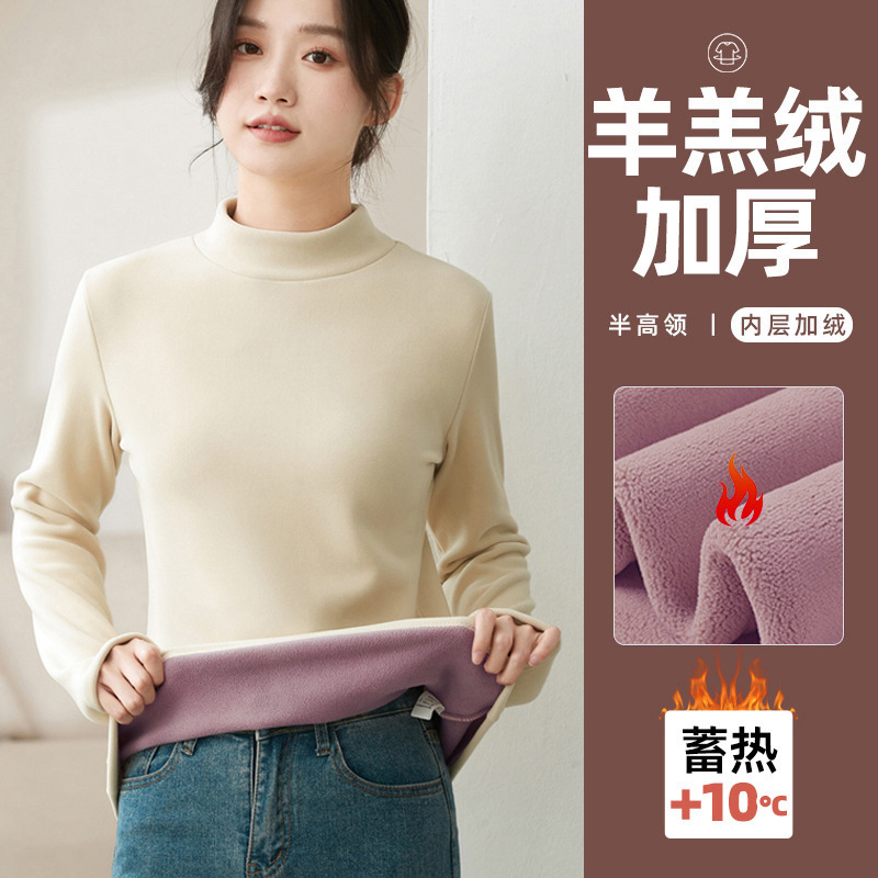MO12 #500g 폴라 플리스 따뜻한 기모 두꺼운 바닥 셔츠 여성용 가을과 겨울 내부 슬림 하프 터틀넥 티셔츠