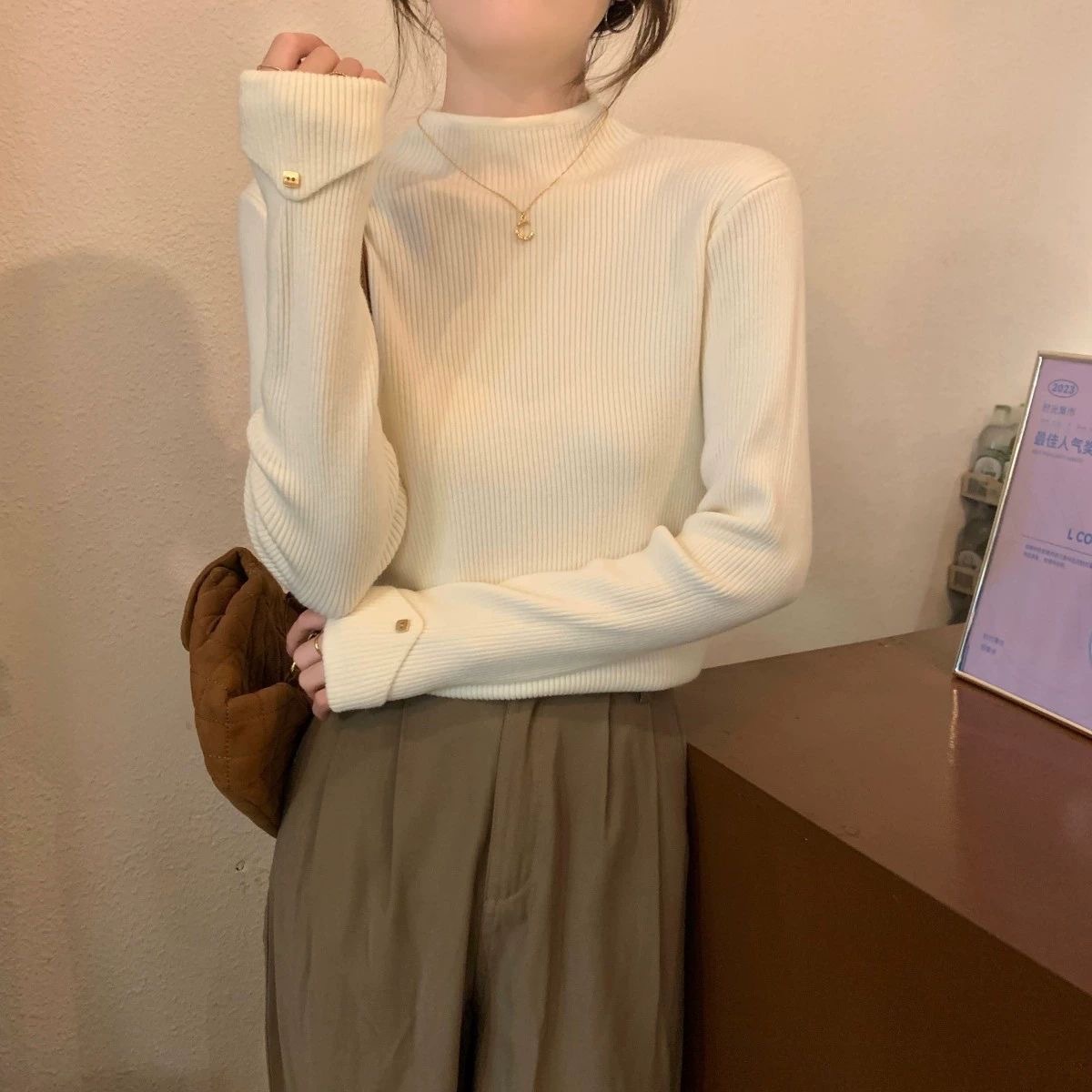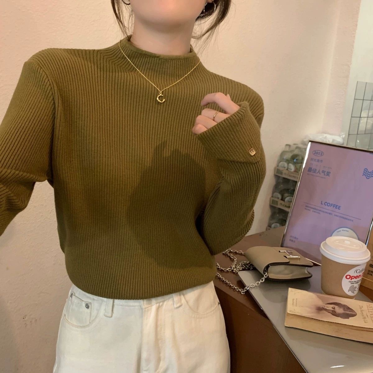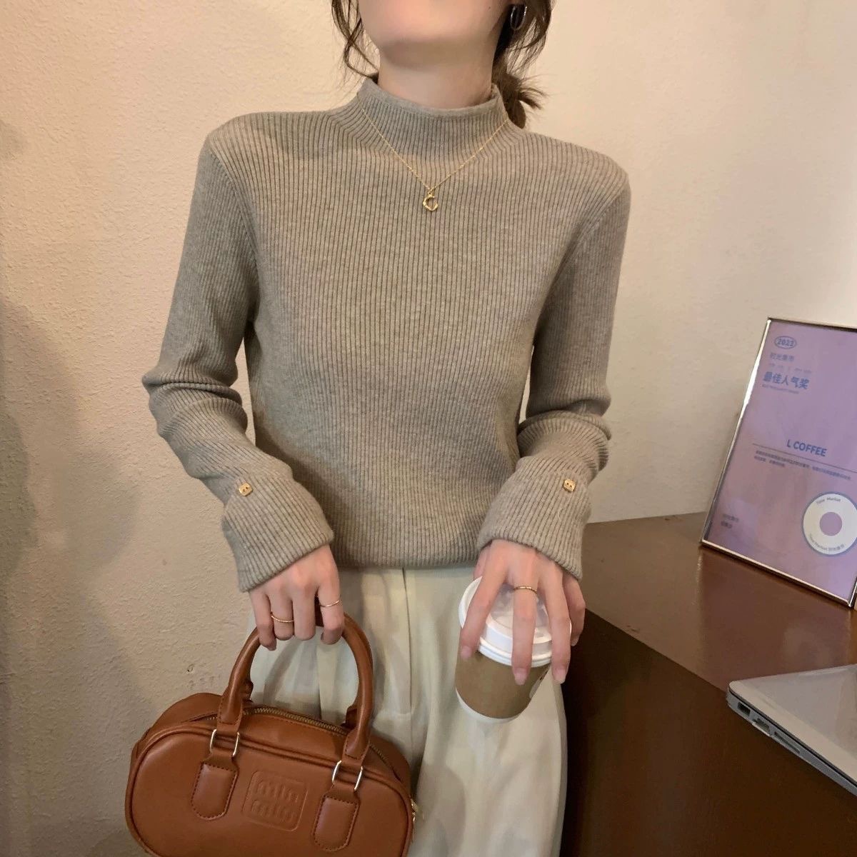 한국식 고급 슬림 핏 슬리밍 바닥 셔츠 스웨터 봄 새로운 여성 하프 터틀넥 따뜻한 긴팔 니트 탑
