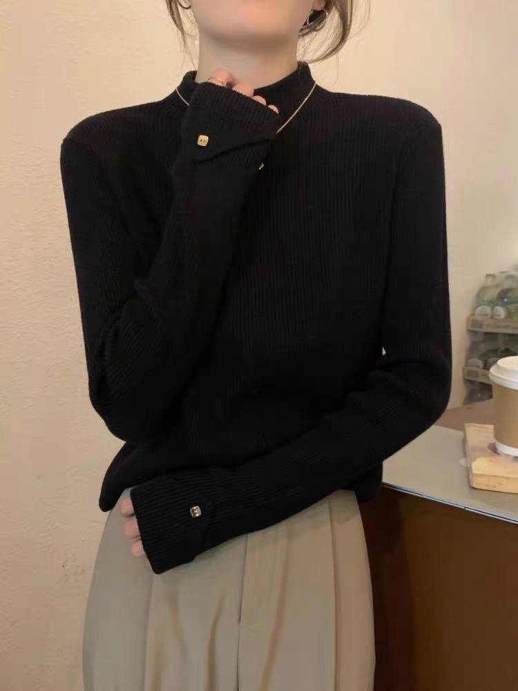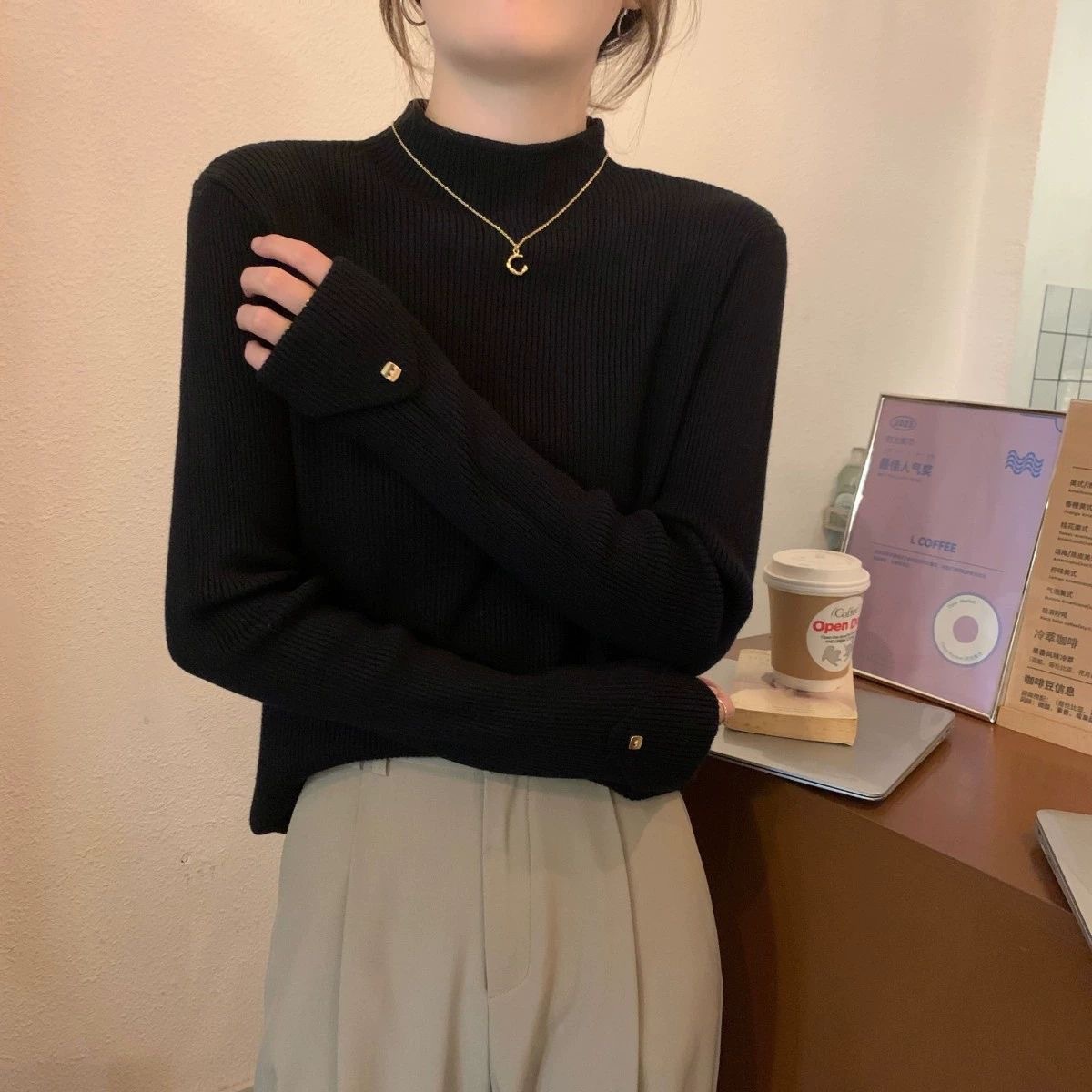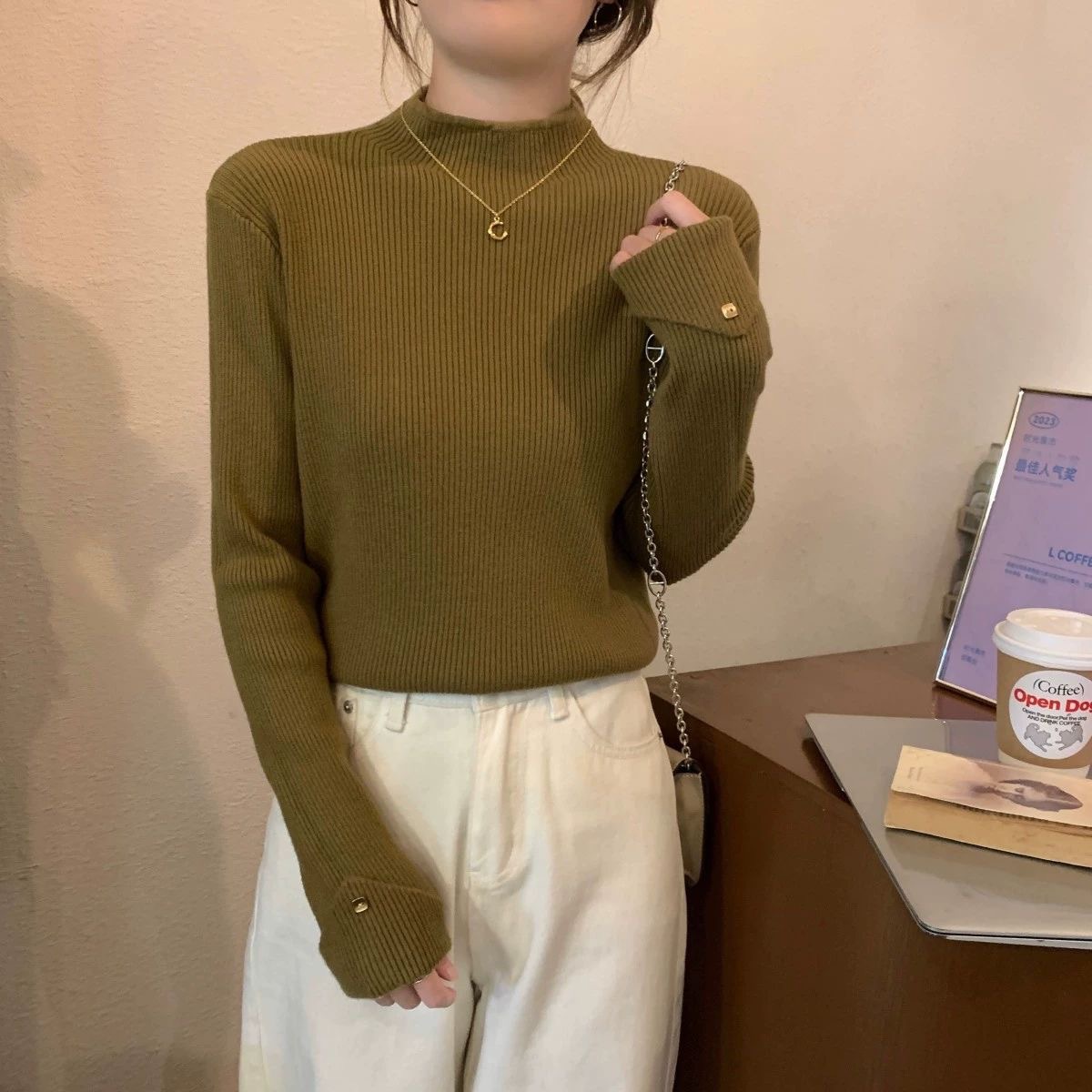 한국식 고급 슬림 핏 슬리밍 바닥 셔츠 스웨터 봄 새로운 여성 하프 터틀넥 따뜻한 긴팔 니트 탑