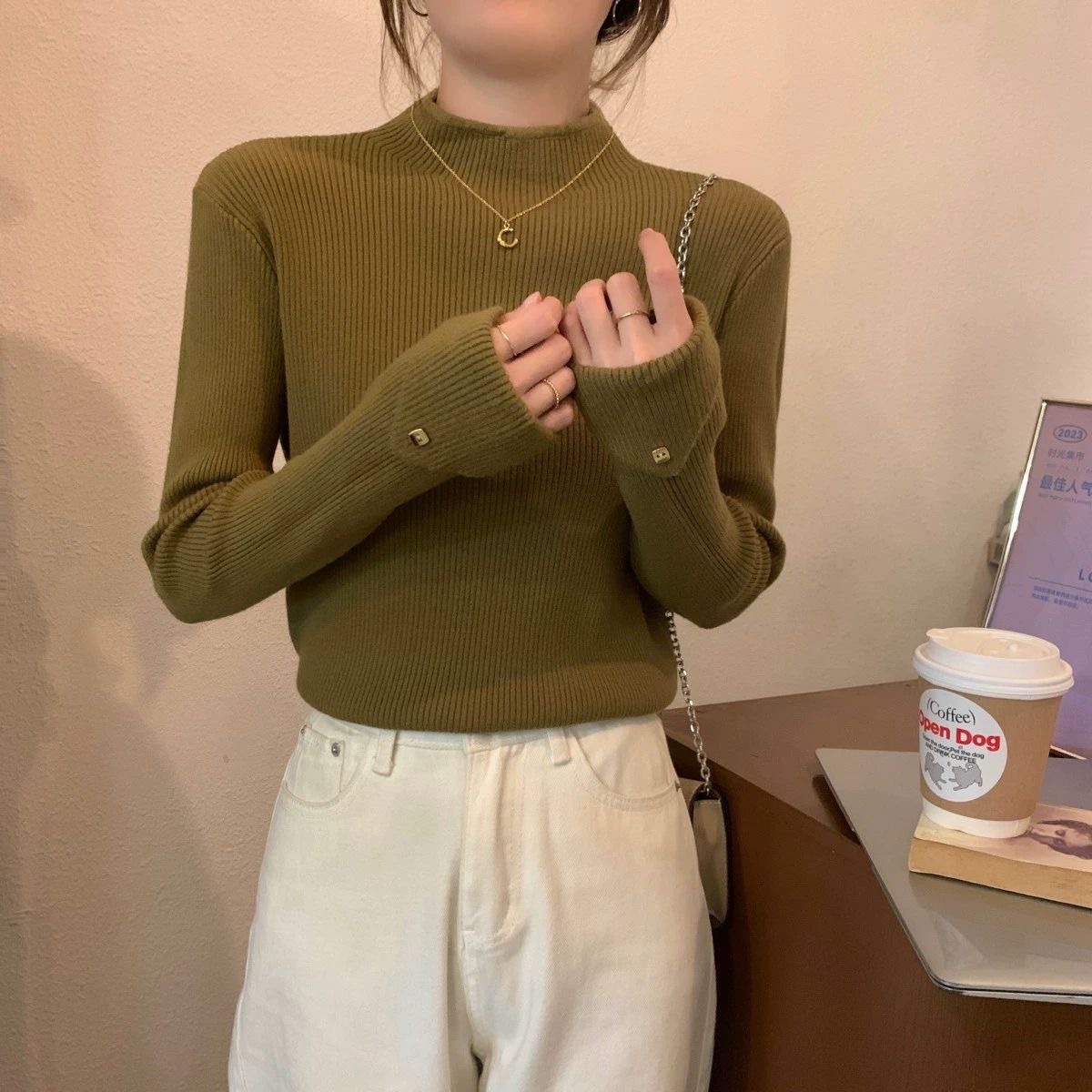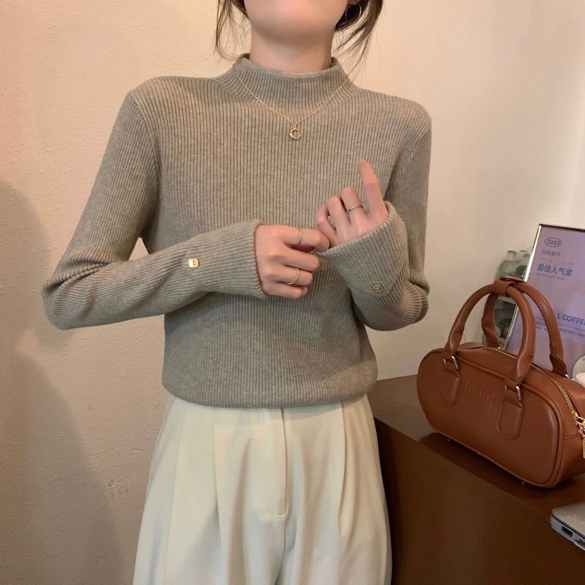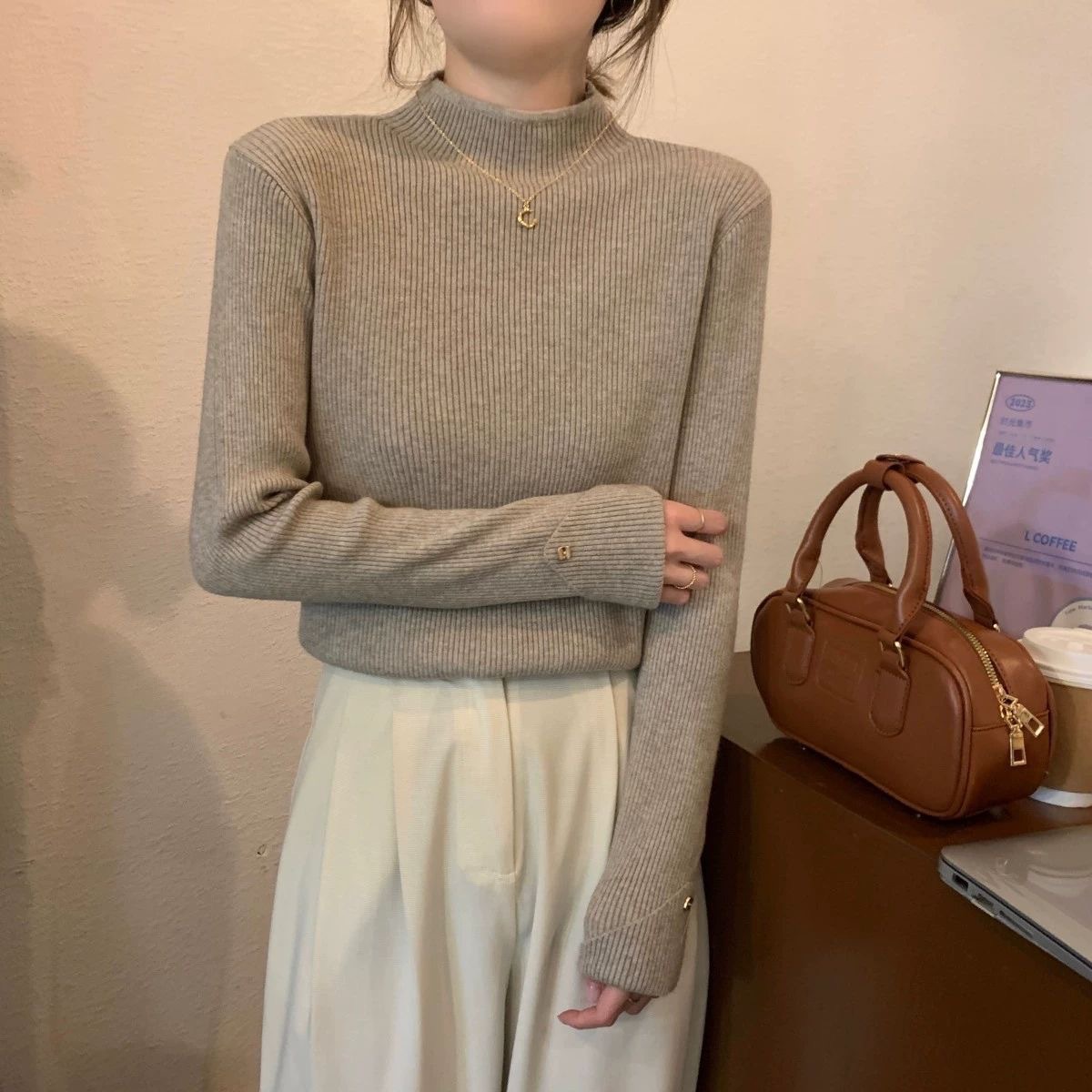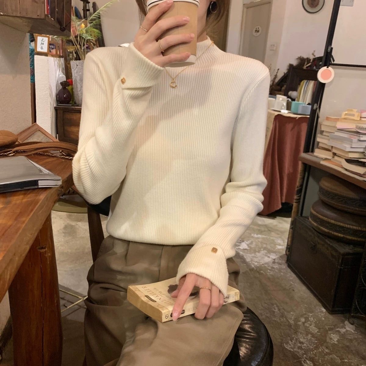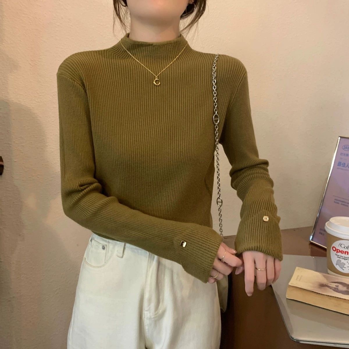 한국식 고급 슬림 핏 슬리밍 바닥 셔츠 스웨터 봄 새로운 여성 하프 터틀넥 따뜻한 긴팔 니트 탑스토어 가기