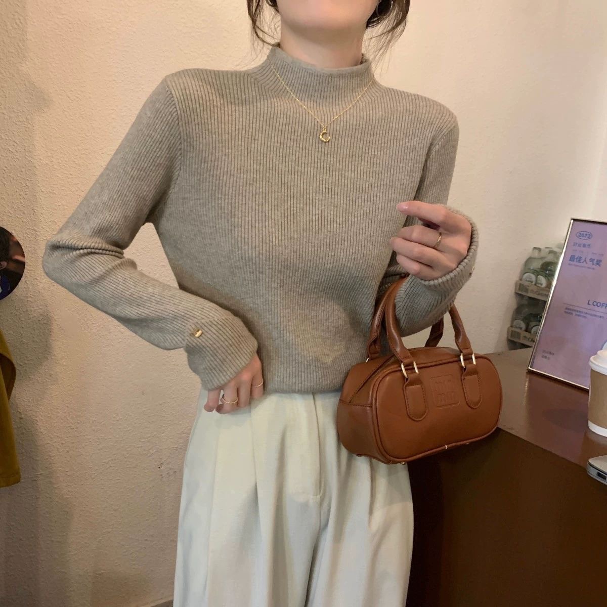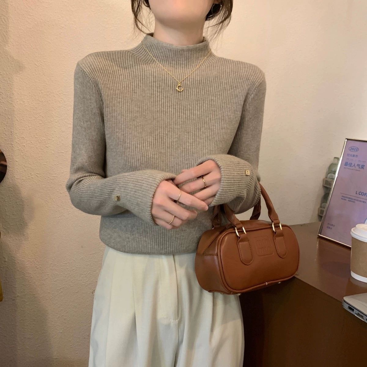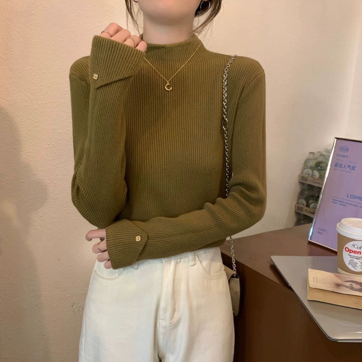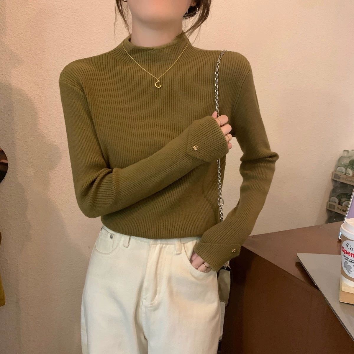 한국식 고급 슬림 핏 슬리밍 바닥 셔츠 스웨터 봄 새로운 여성 하프 터틀넥 따뜻한 긴팔 니트 탑스토어 가기