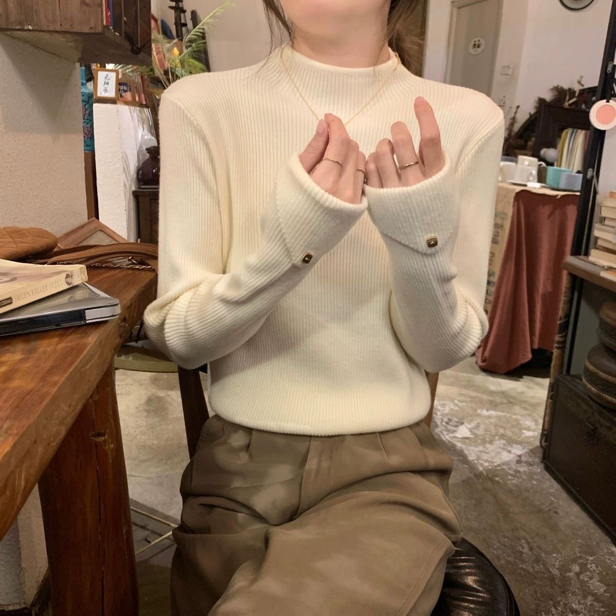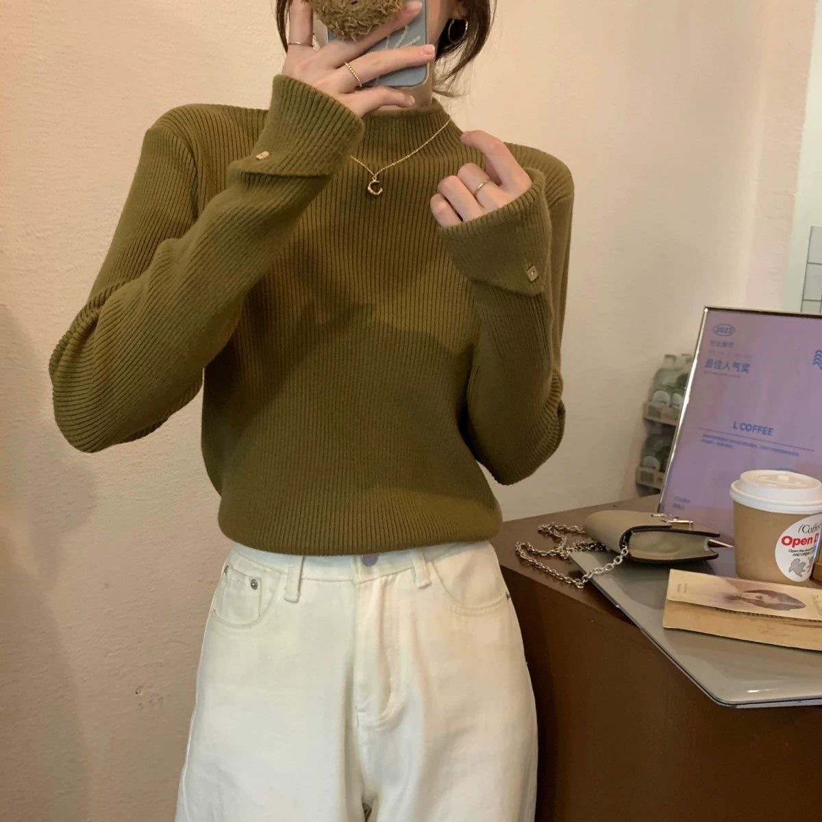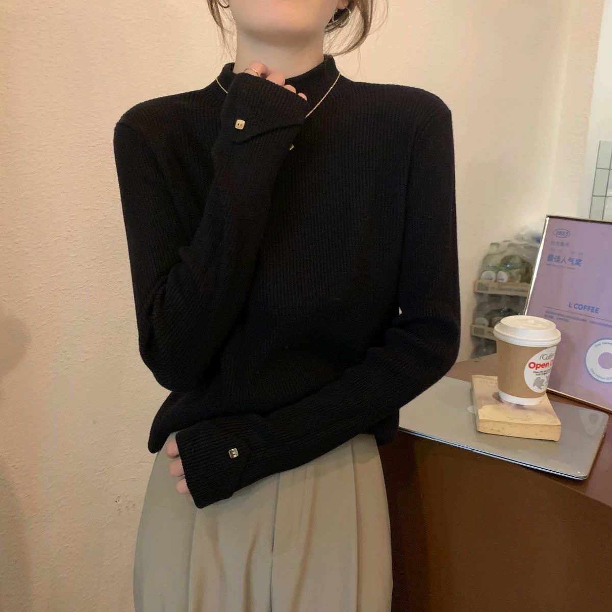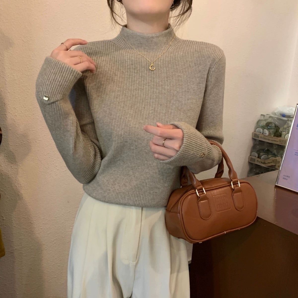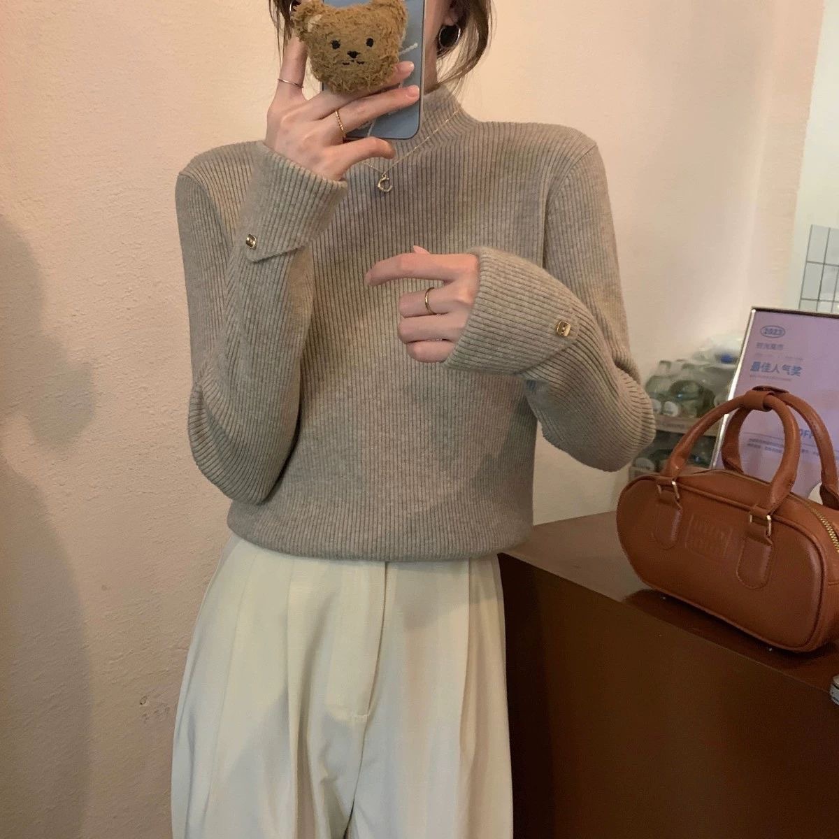 한국식 고급 슬림 핏 슬리밍 바닥 셔츠 스웨터 봄 새로운 여성 하프 터틀넥 따뜻한 긴팔 니트 탑스토어 가기