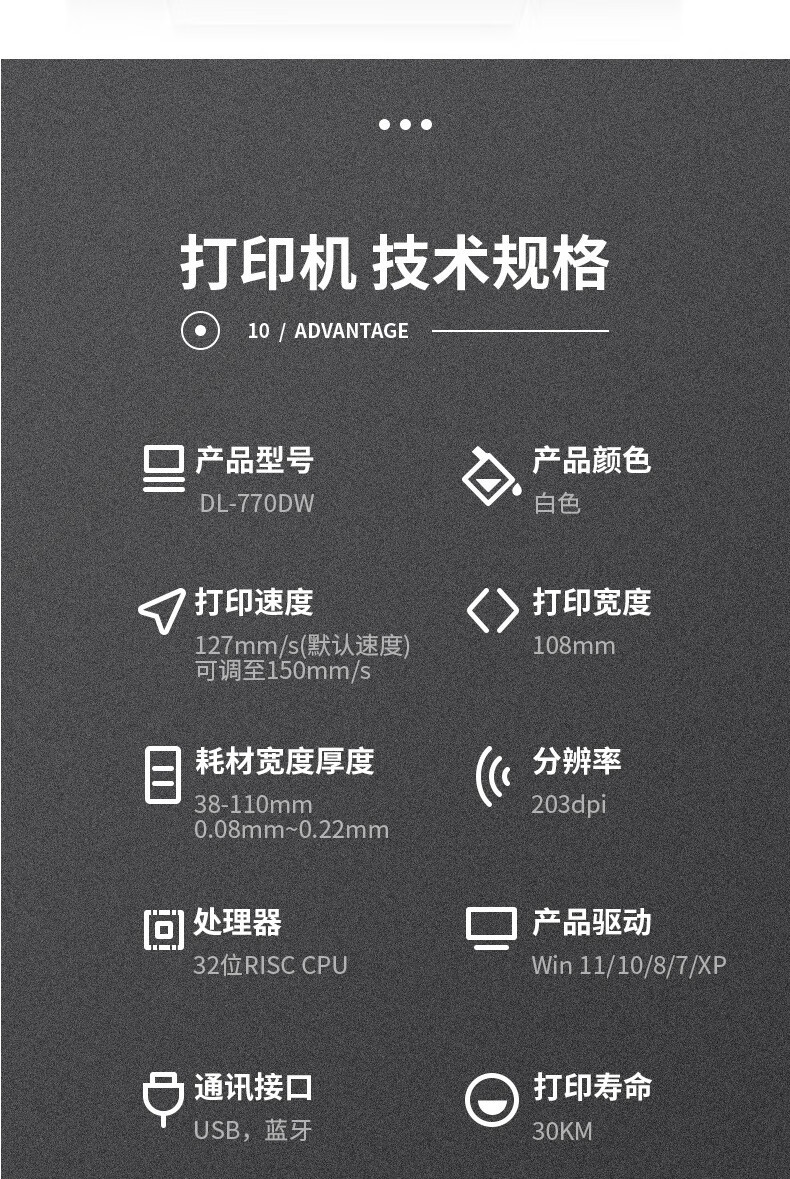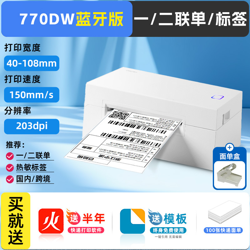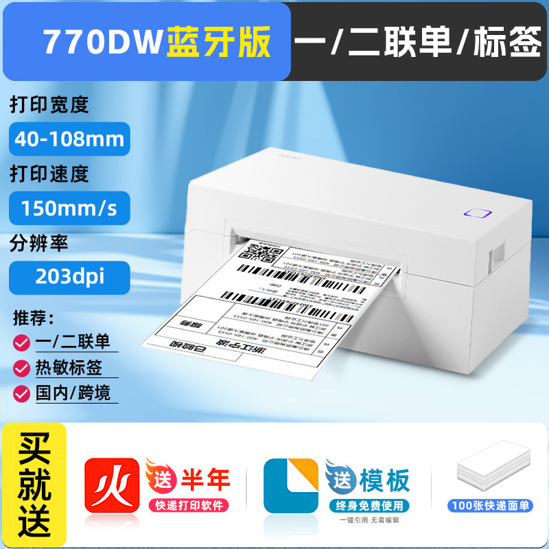 Deli 770DW 열전사 라벨 프린터는 휴대폰 전자 단일 기계형 국경 간 전자 상거래 프린터에 연결할 수 있습니다.스토어 가기