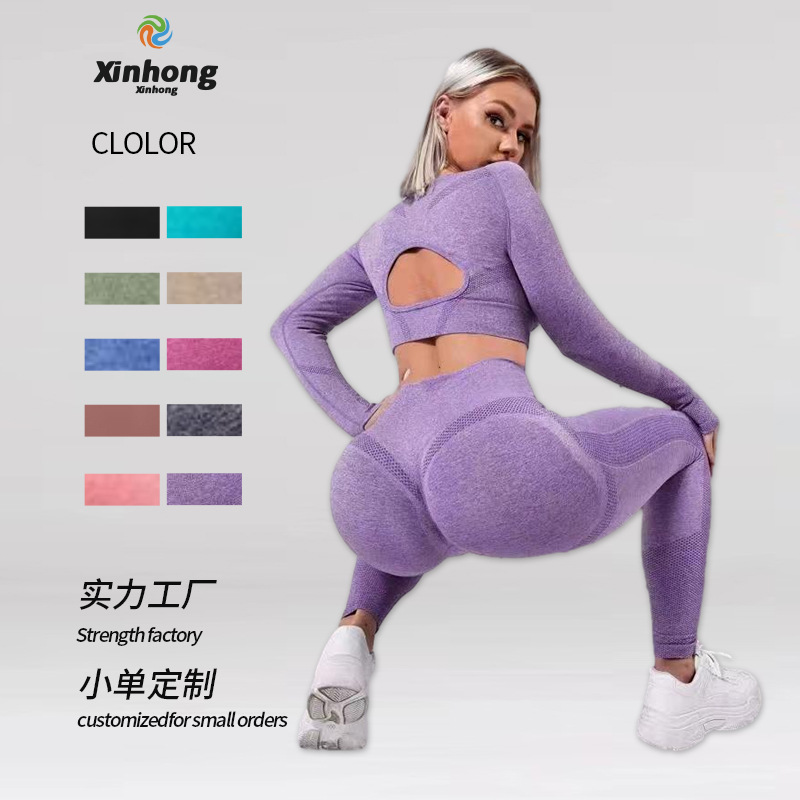 새로운 유럽과 미국의 국경 간 원활한 높은 허리 복숭아 엉덩이 타이트 스트레치 요가 옷 세트 달리기 피트니스 투피스 세트