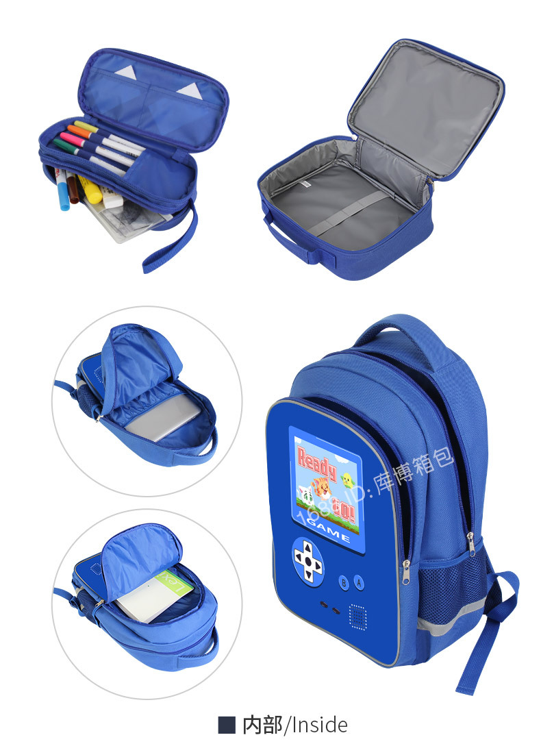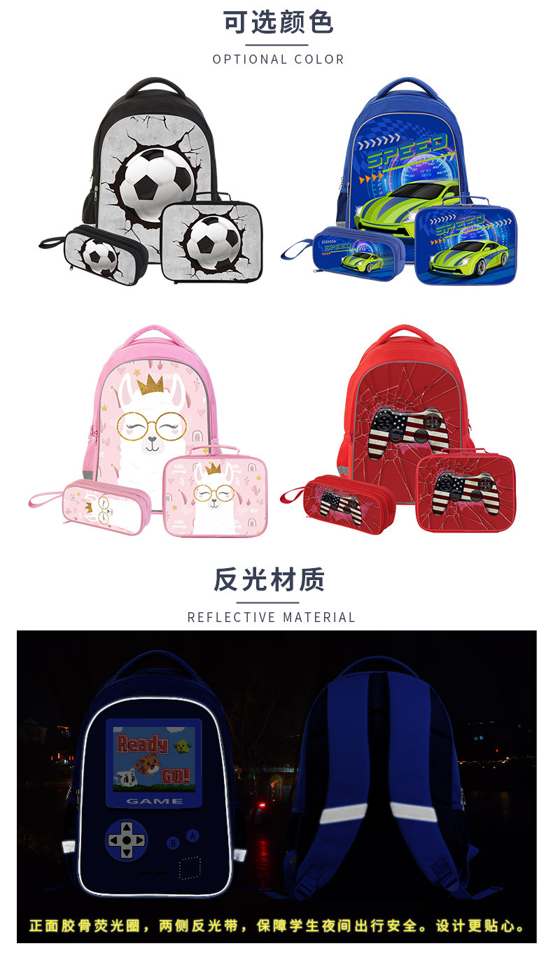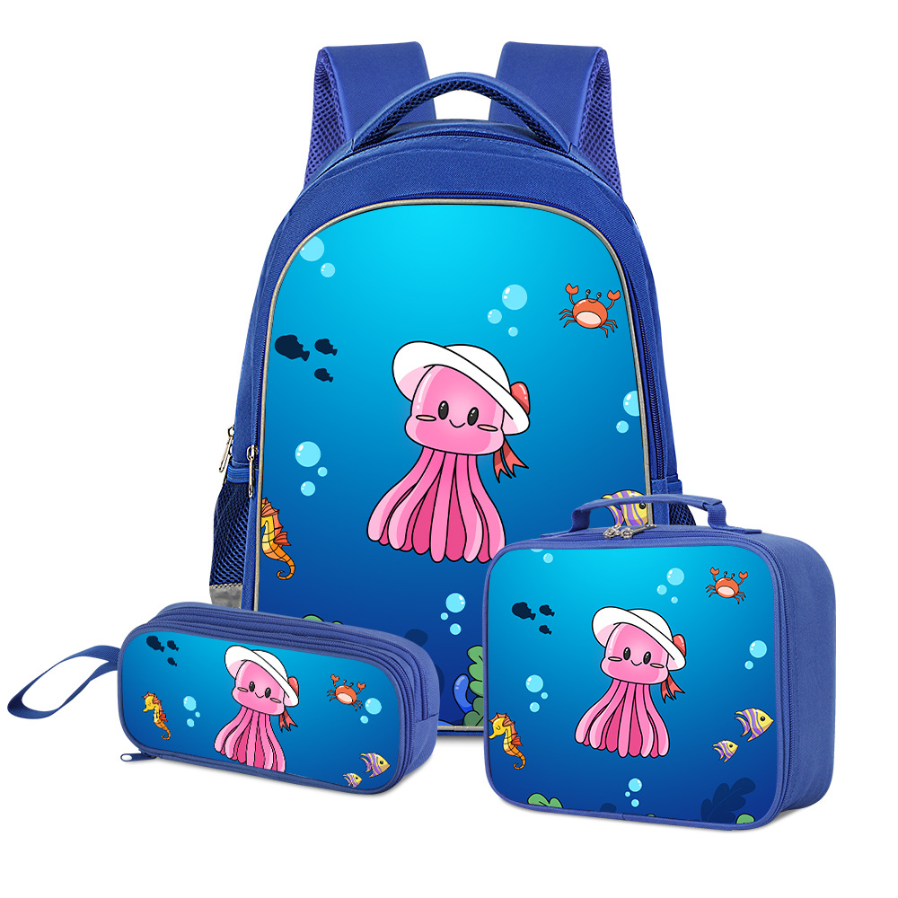海洋世界书包三件套 跨境3D图案定制学生双肩背包三件套笔袋餐包