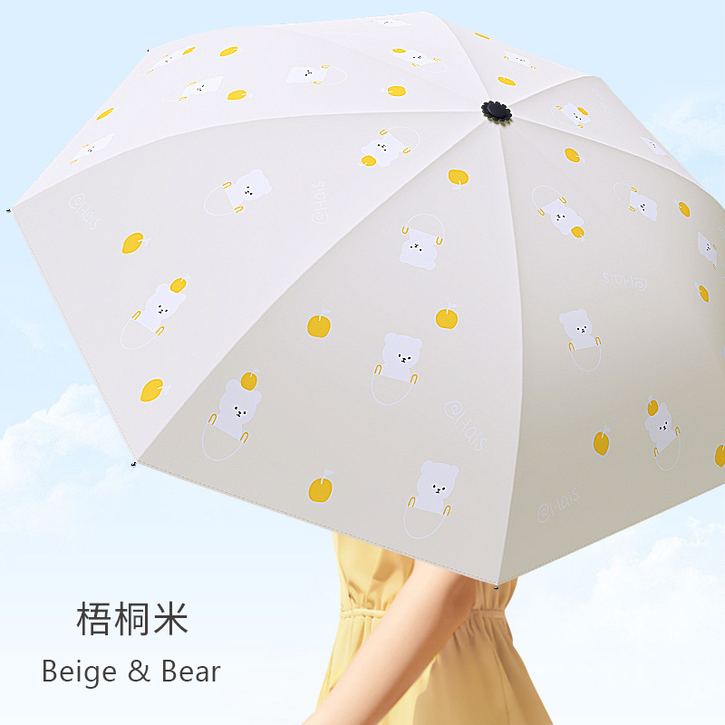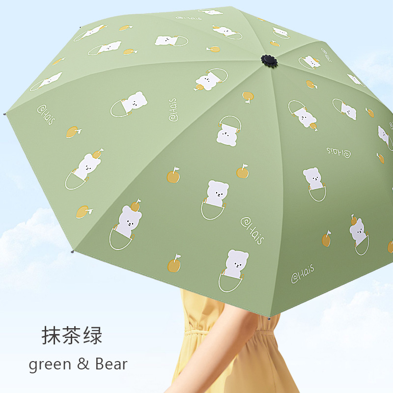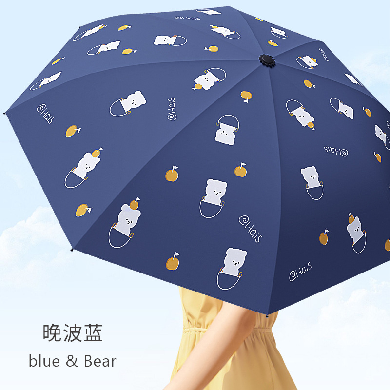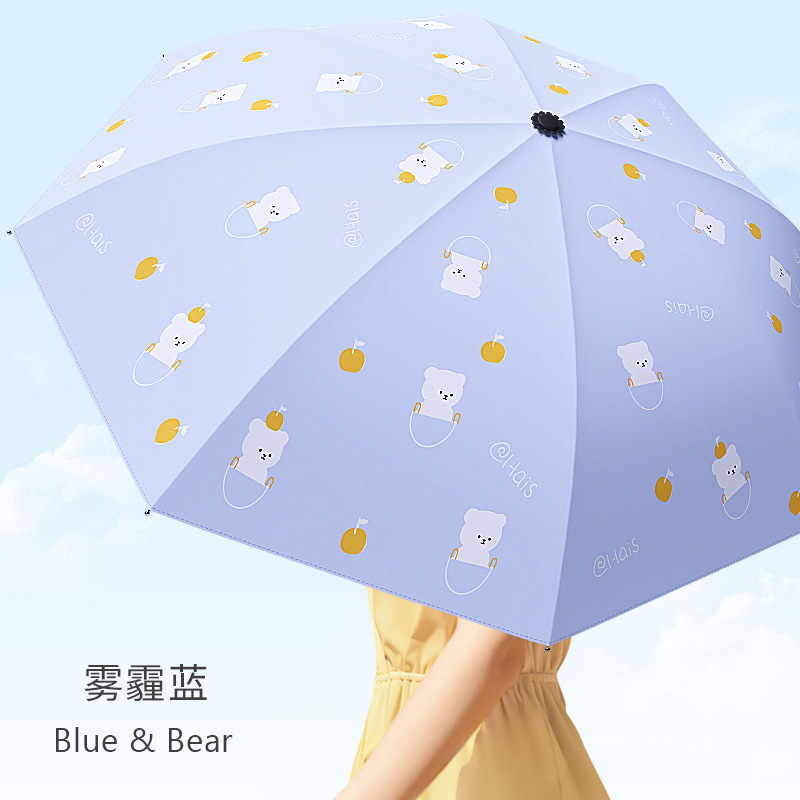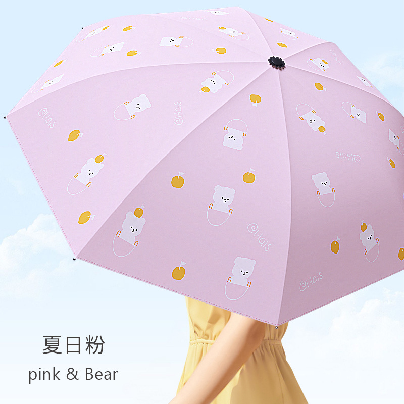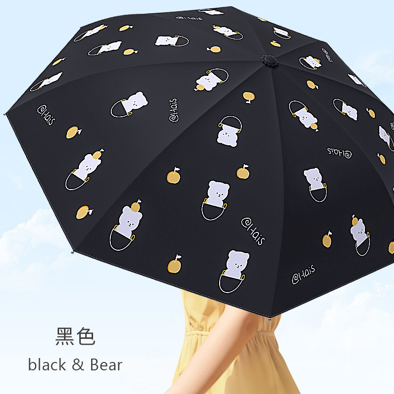 한국어 버전의 창의적인 숨바꼭질 만화 학생 우산 접이식 검은 고무 비 이중 사용 선 스크린 우산 제조 업체 도매