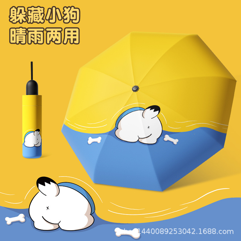 한국어 버전의 창의적인 숨바꼭질 만화 학생 우산 접이식 검은 고무 비 이중 사용 선 스크린 우산 제조 업체 도매스토어 가기