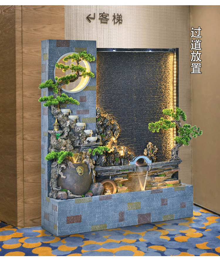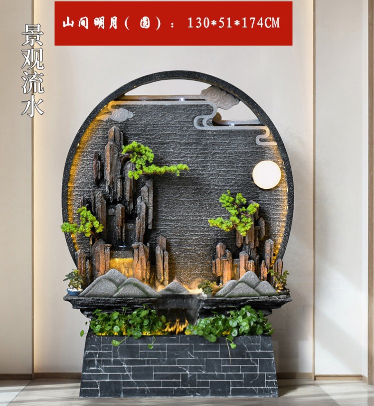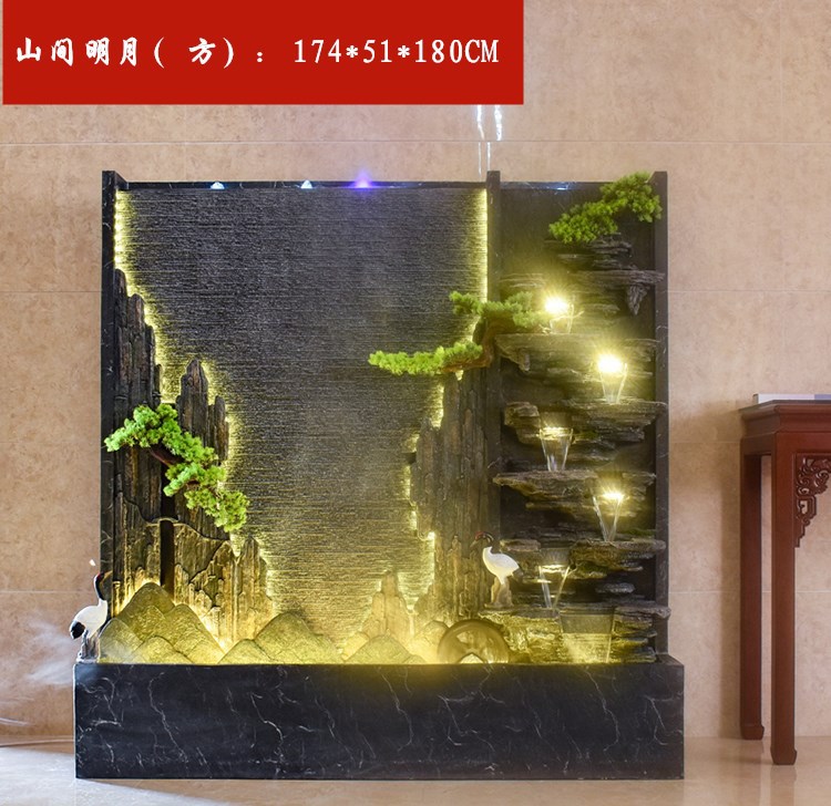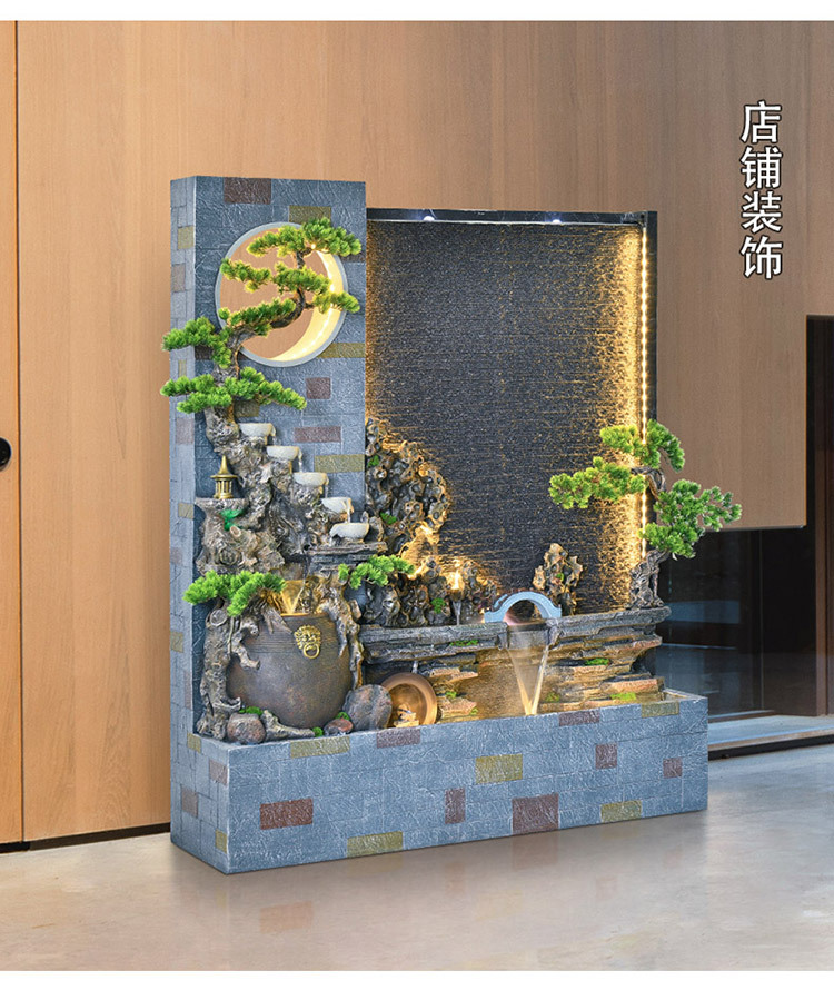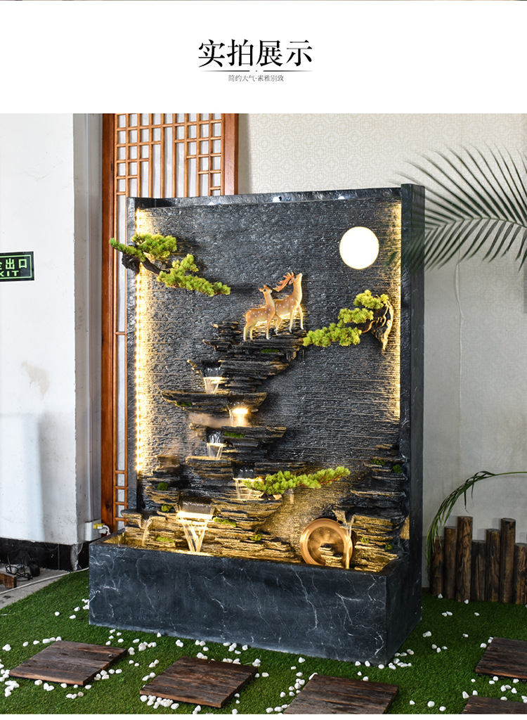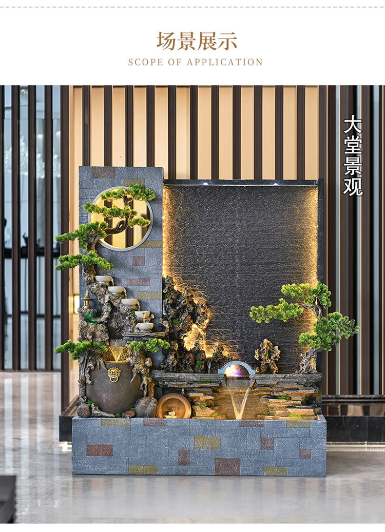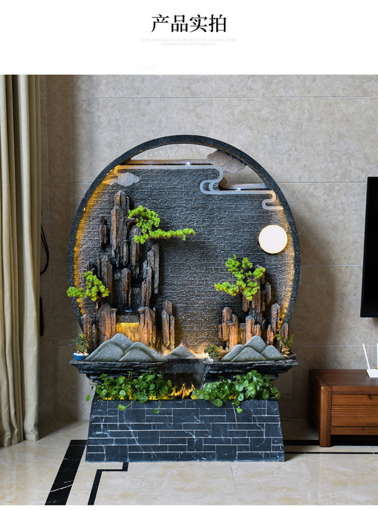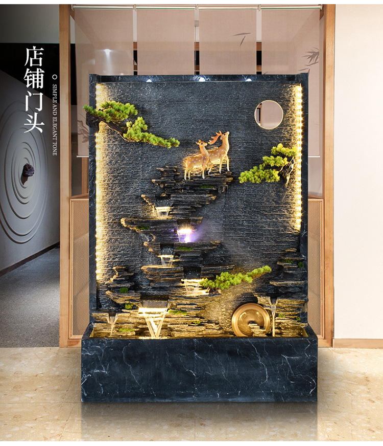 Rockery 물 분수 실내 거실 바닥 장식 풍수 바퀴 물 커튼 벽 물 스크린 오프닝 선물 풍경스토어 가기
