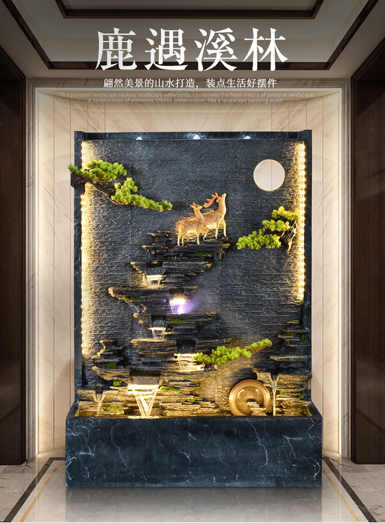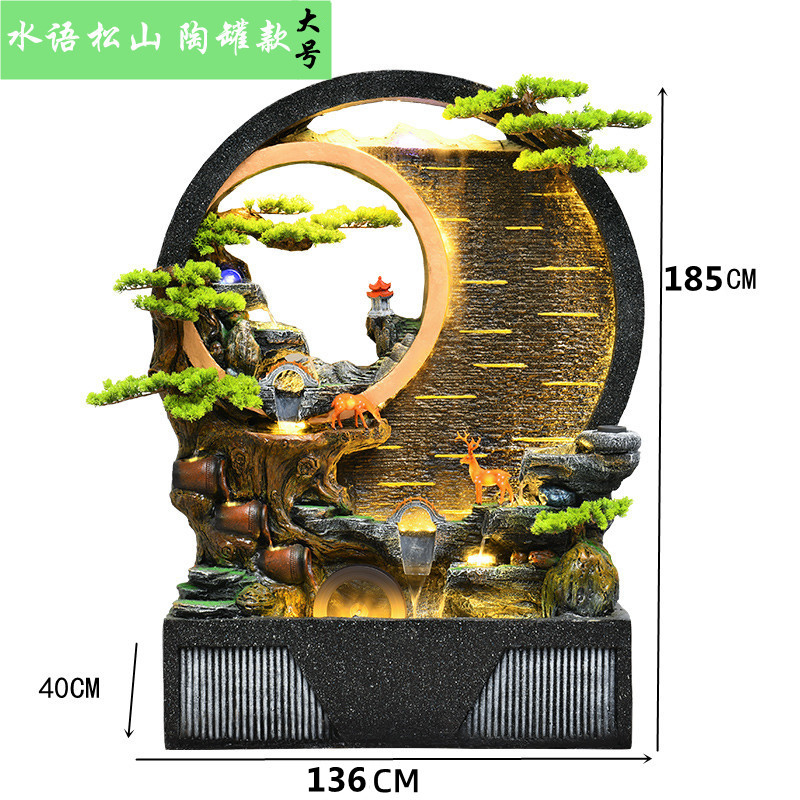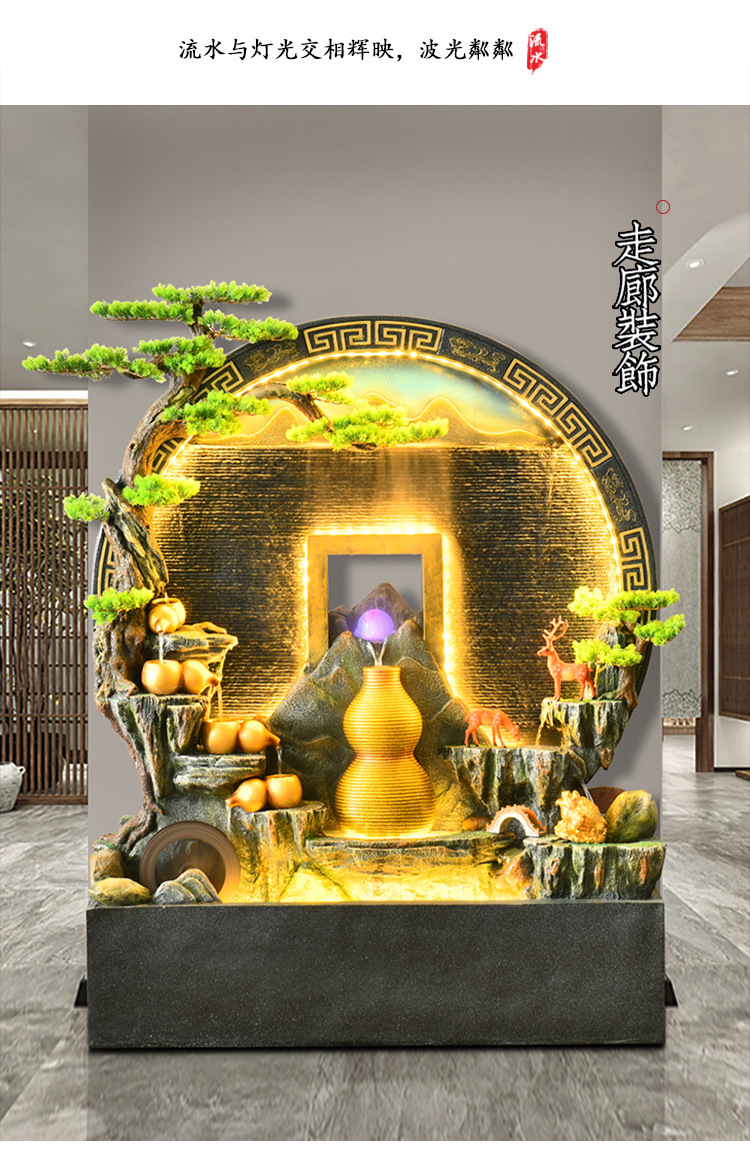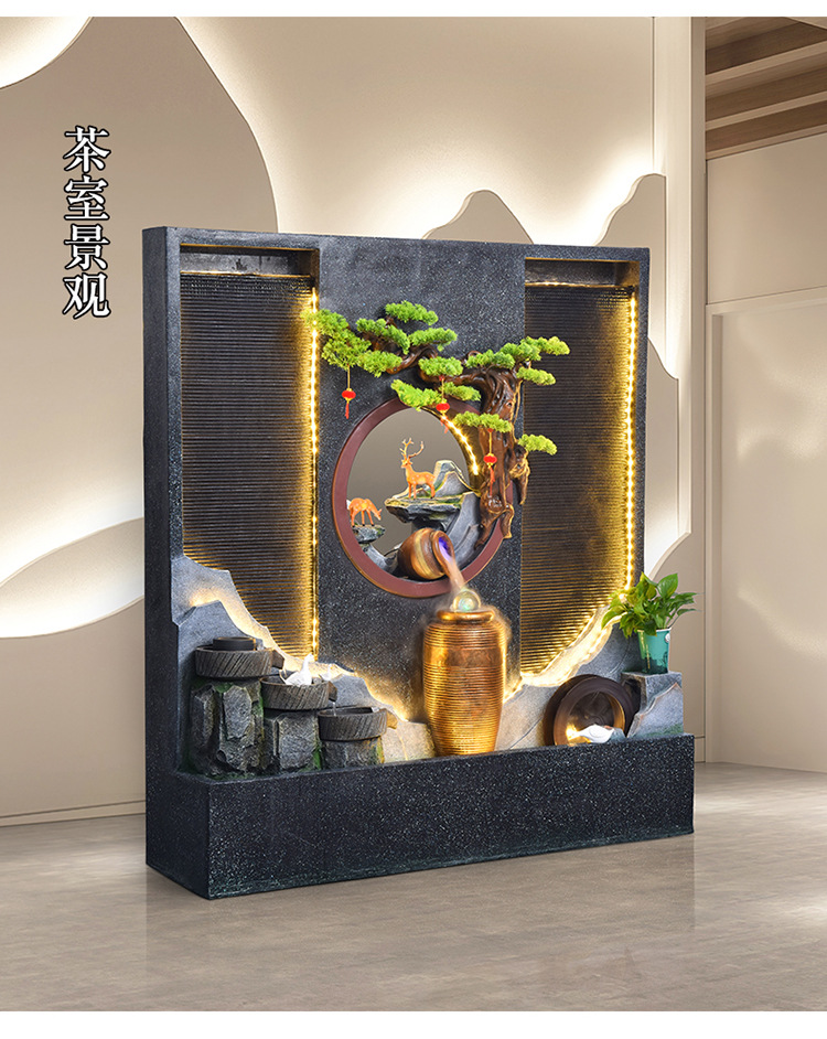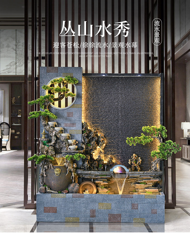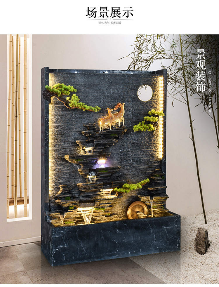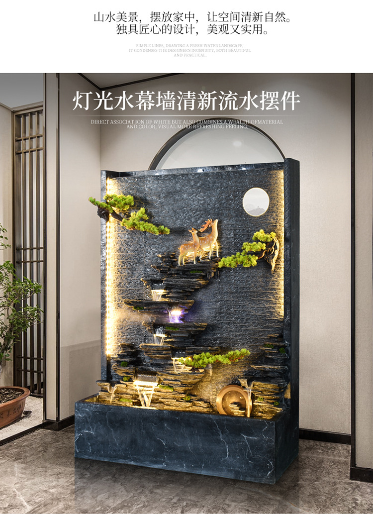 Rockery 물 분수 실내 거실 바닥 장식 풍수 바퀴 물 커튼 벽 물 스크린 오프닝 선물 풍경스토어 가기