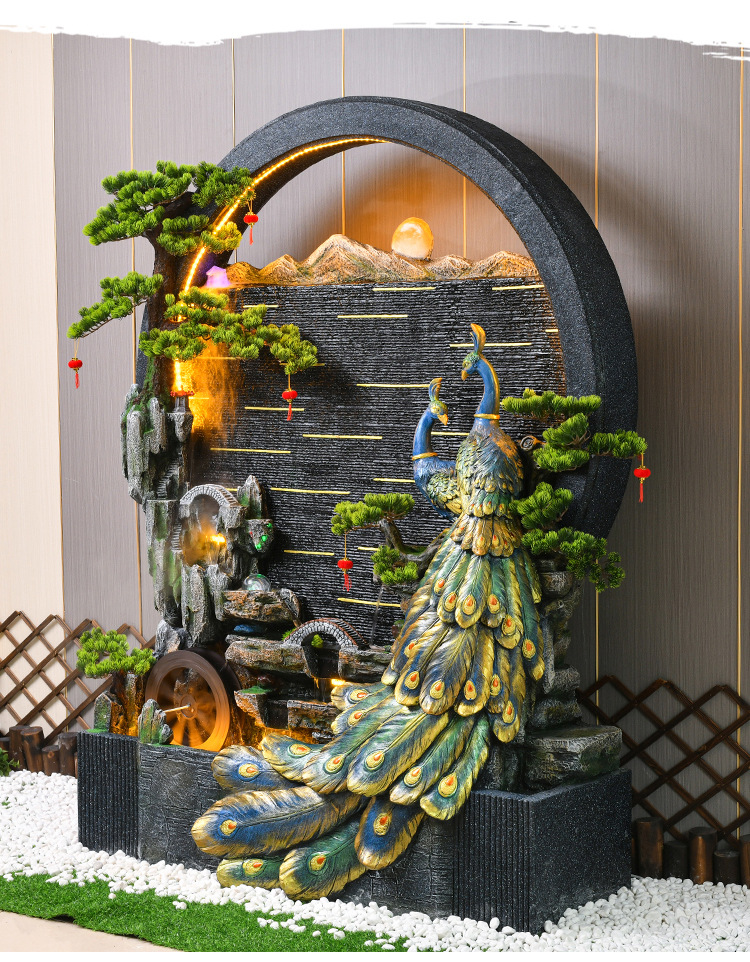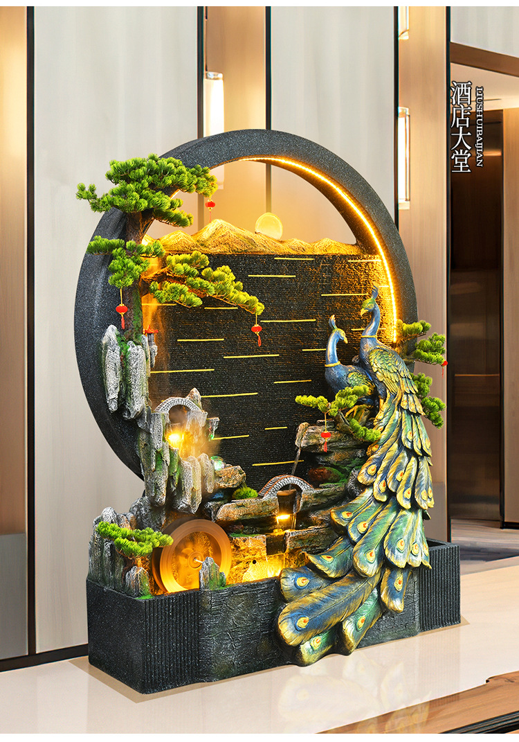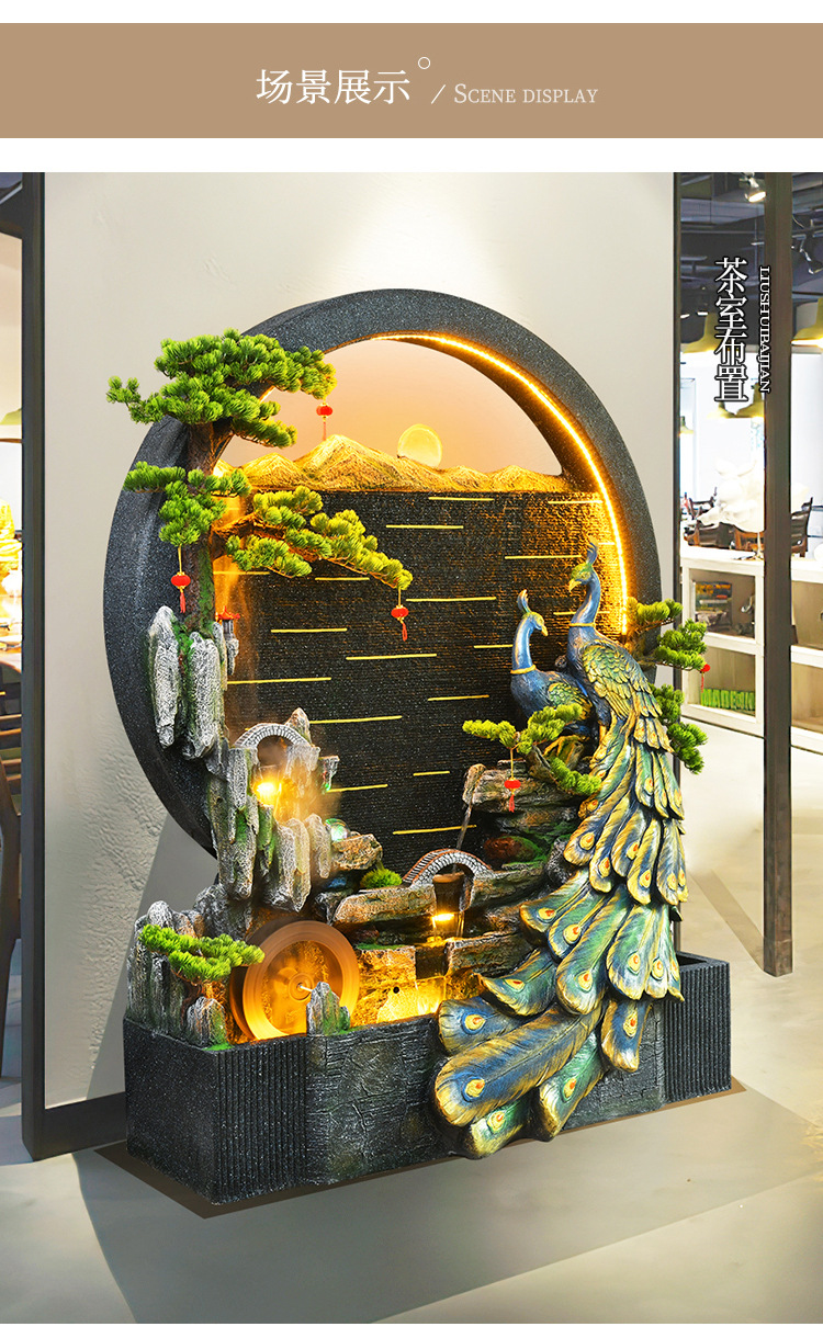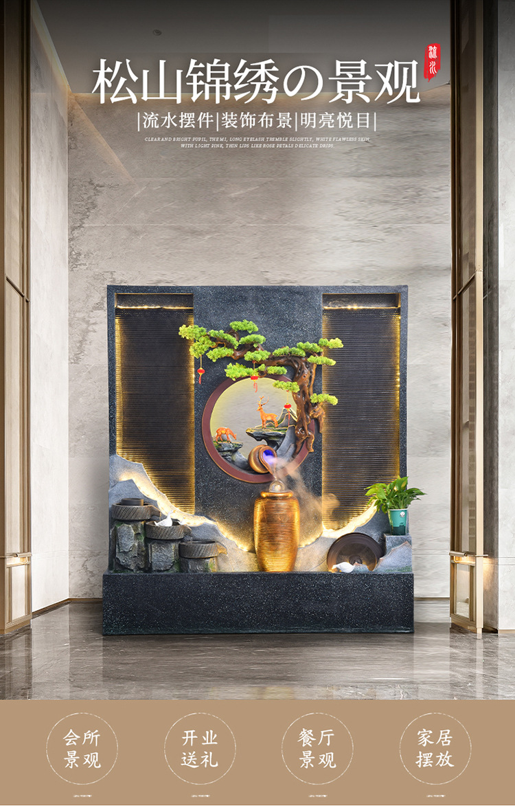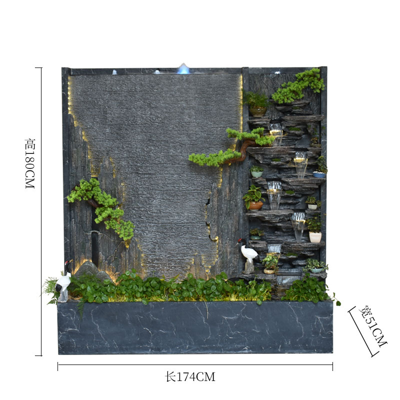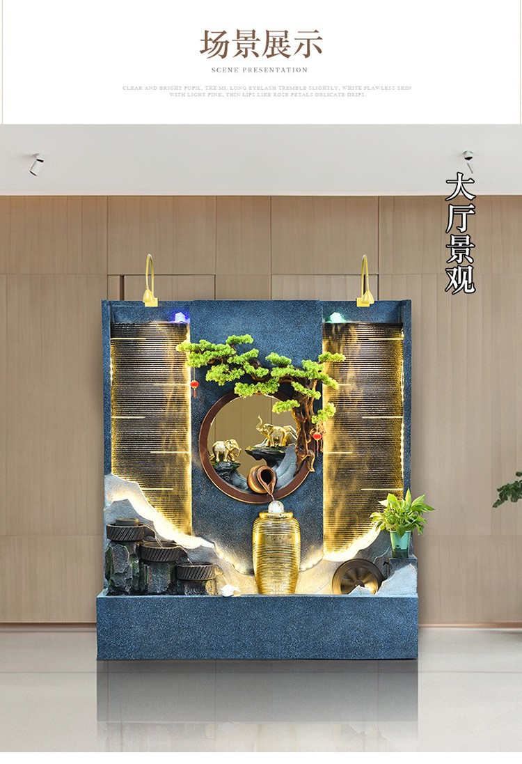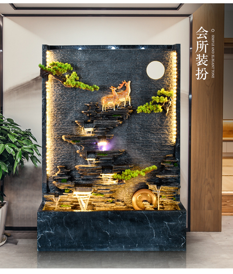 Rockery 물 분수 실내 거실 바닥 장식 풍수 바퀴 물 커튼 벽 물 스크린 오프닝 선물 풍경스토어 가기