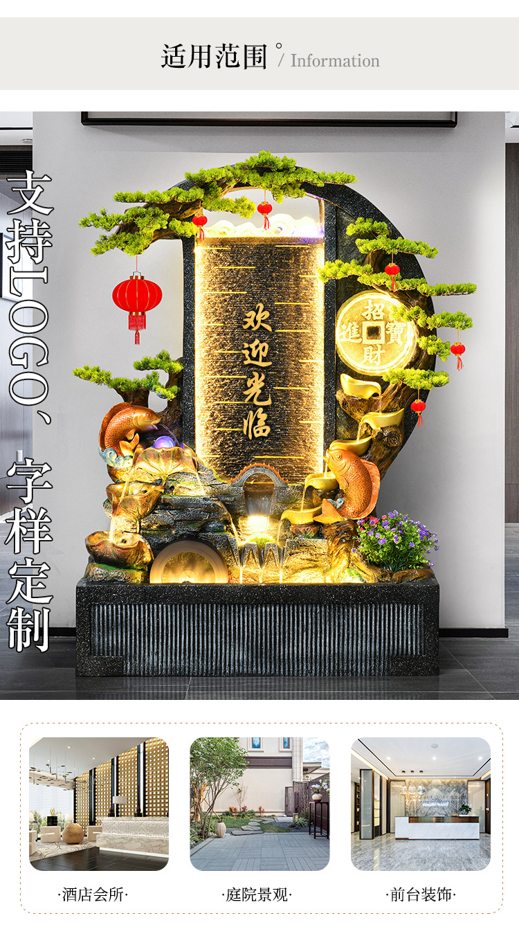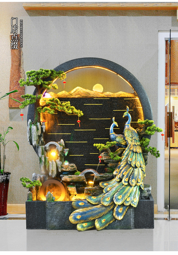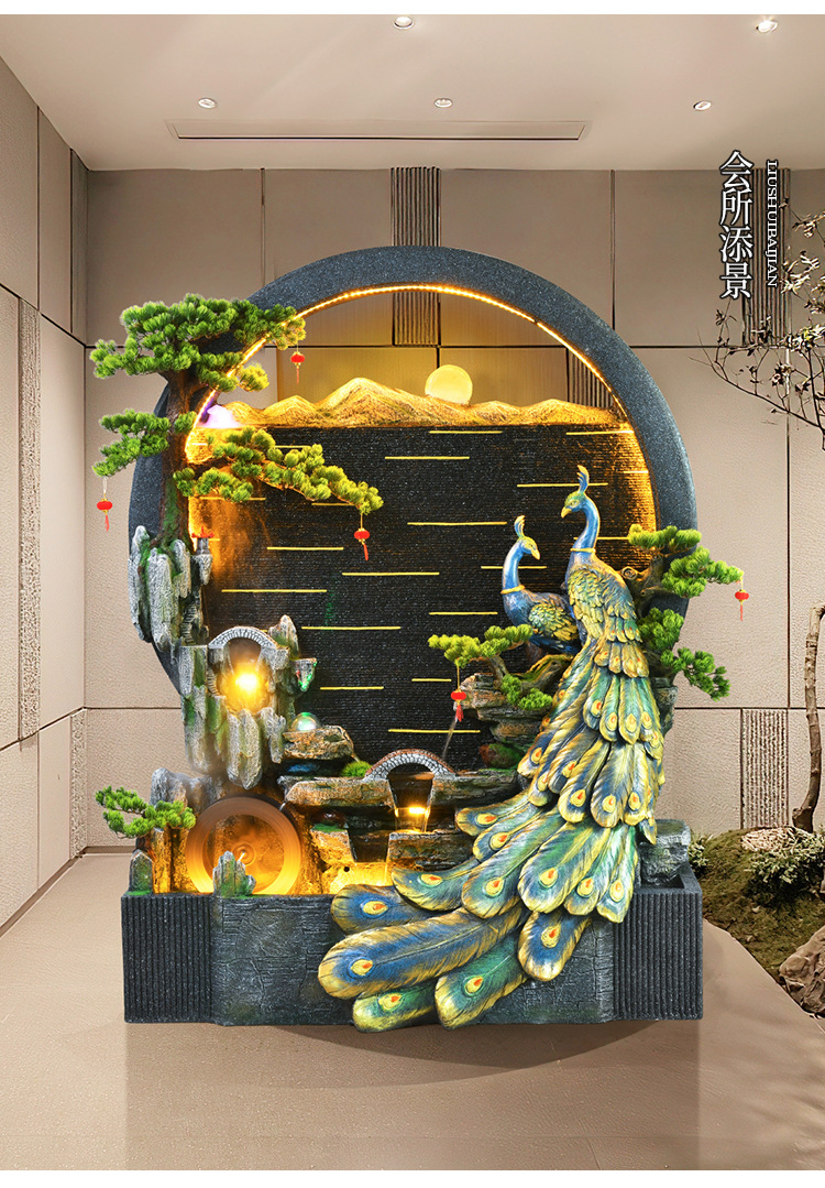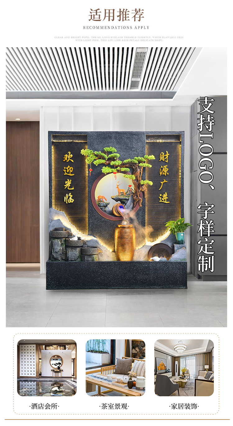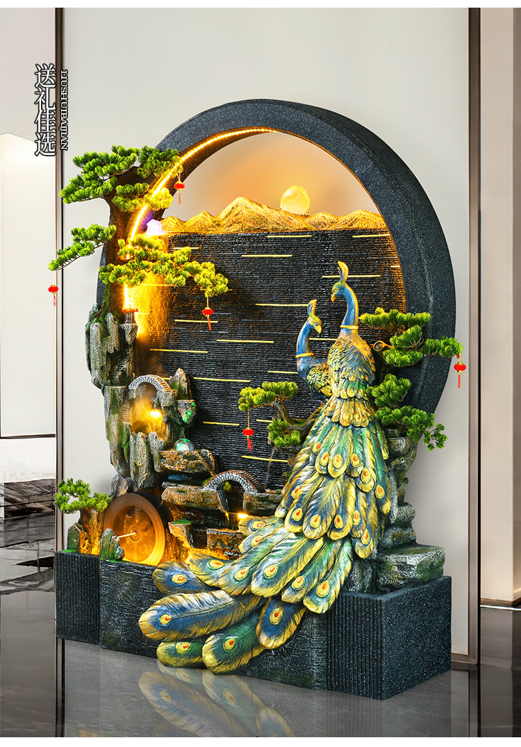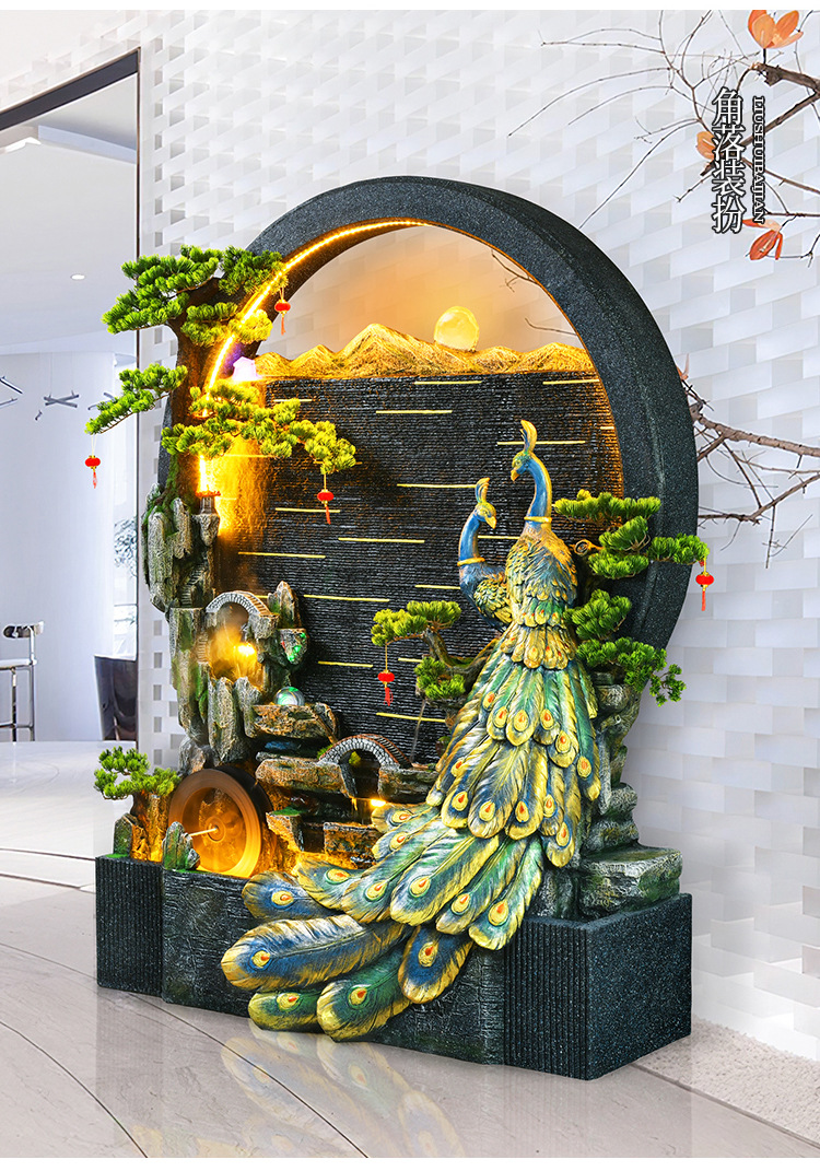 Rockery 물 분수 실내 거실 바닥 장식 풍수 바퀴 물 커튼 벽 물 스크린 오프닝 선물 풍경스토어 가기