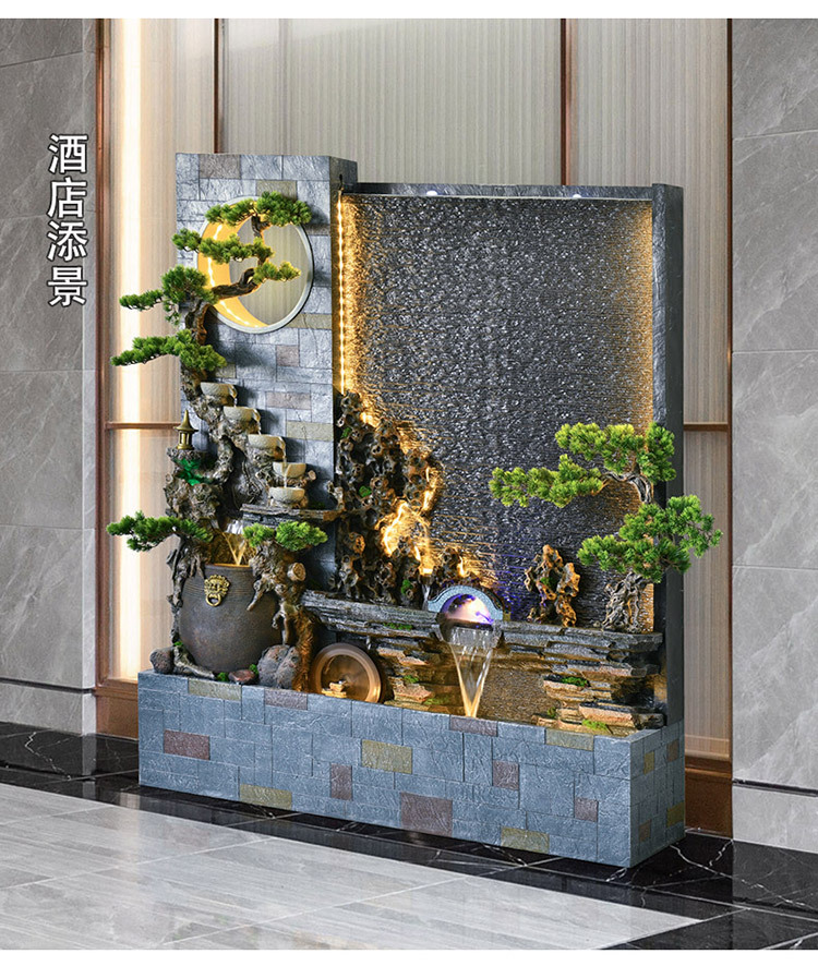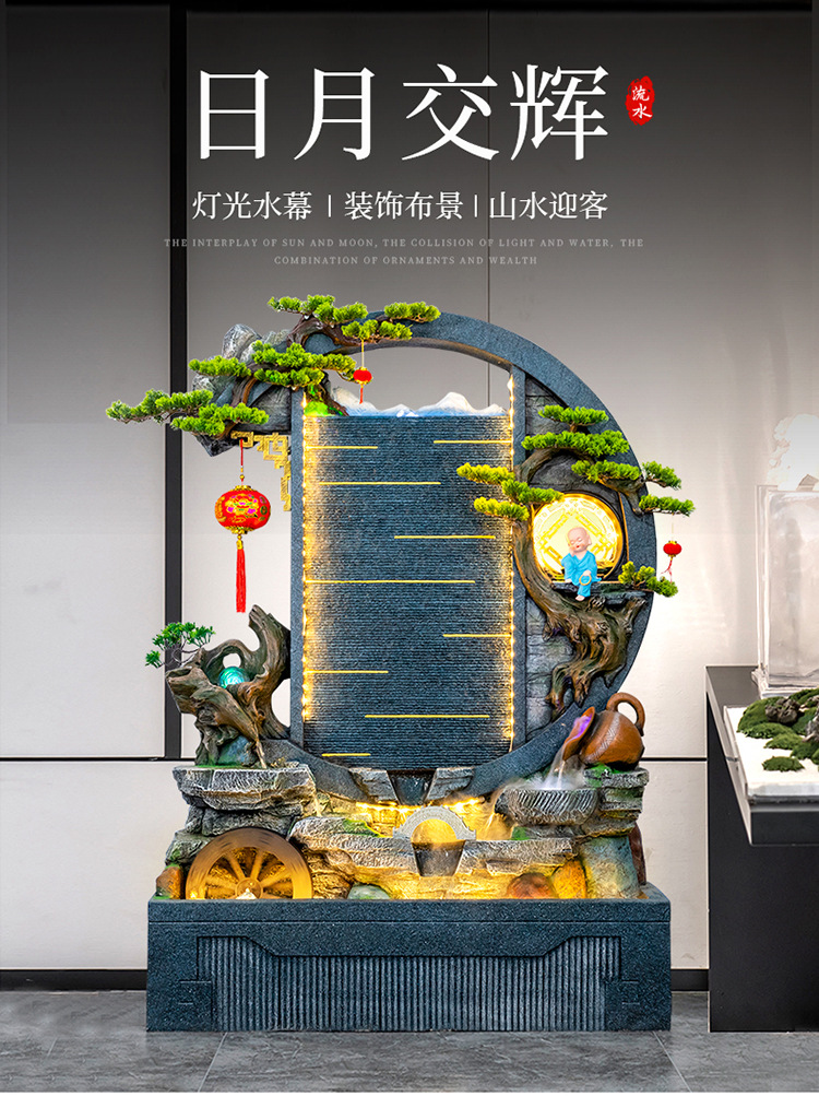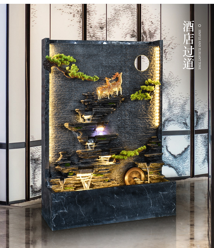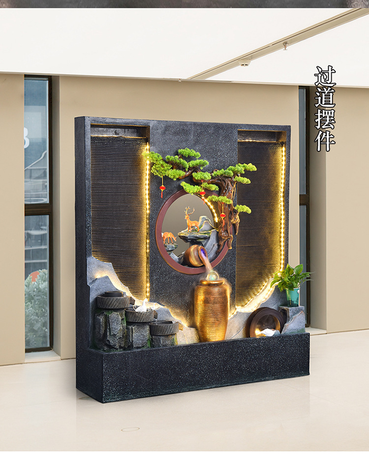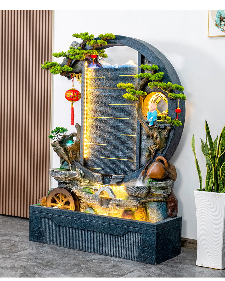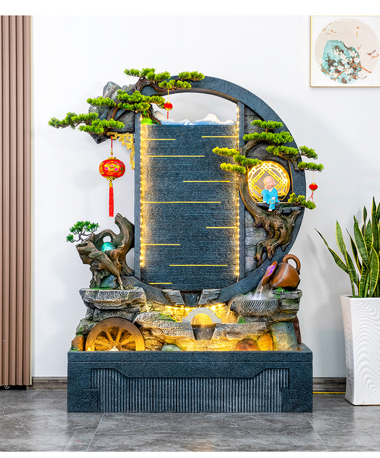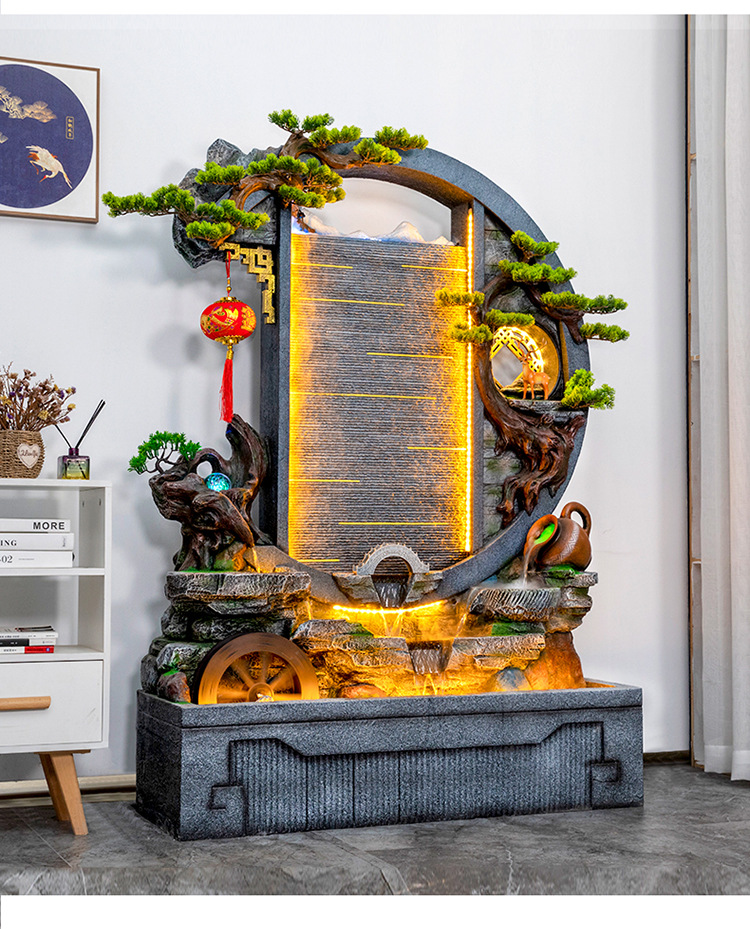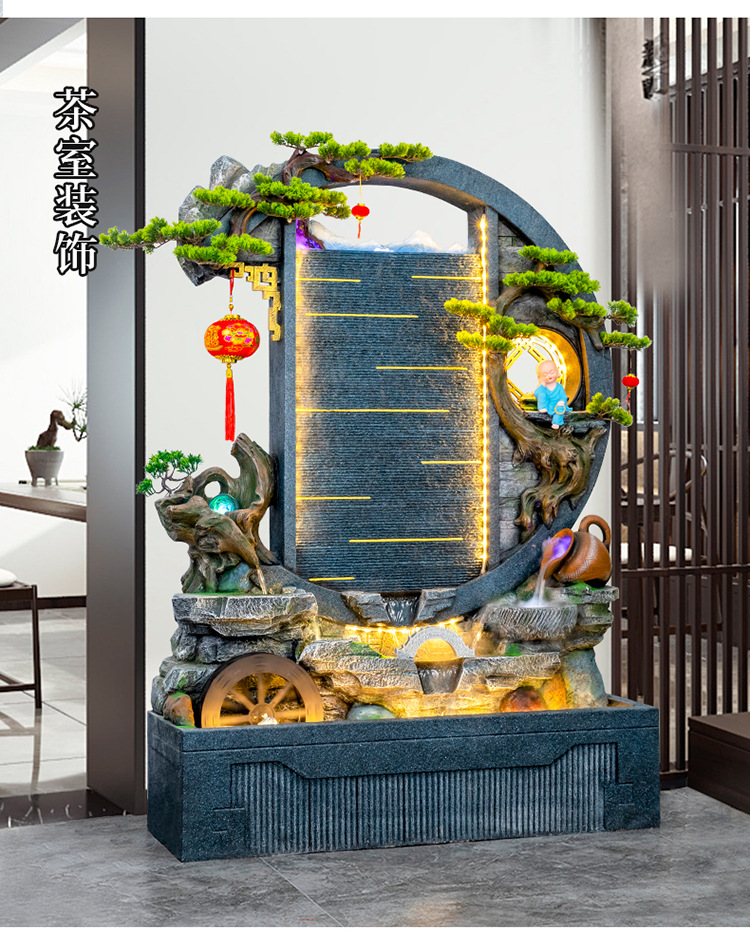 Rockery 물 분수 실내 거실 바닥 장식 풍수 바퀴 물 커튼 벽 물 스크린 오프닝 선물 풍경