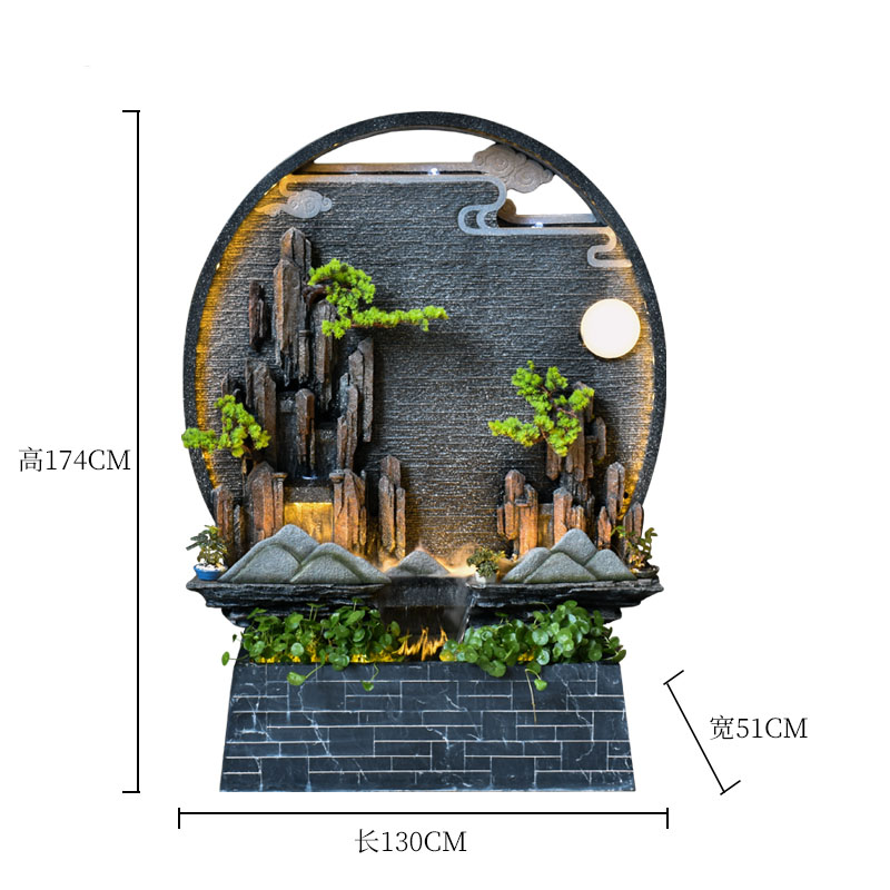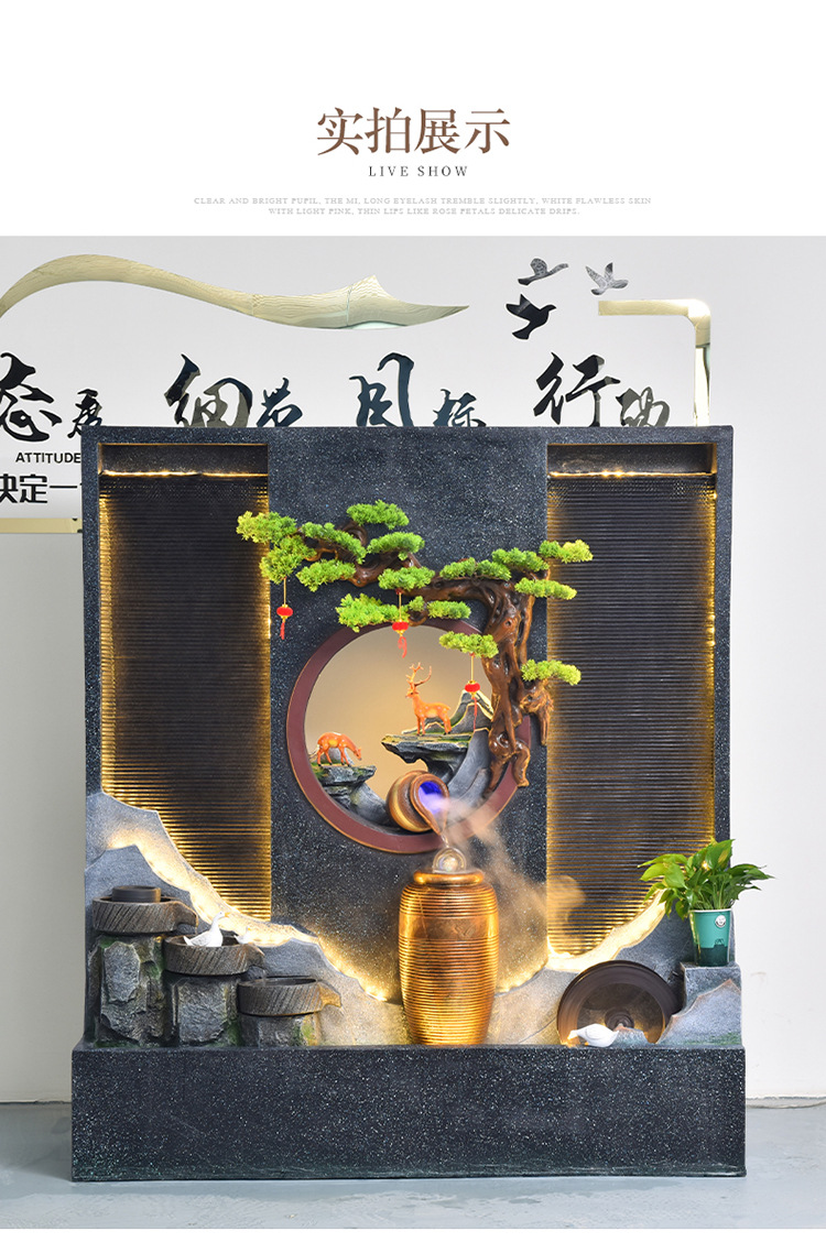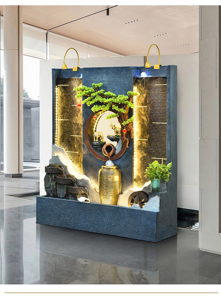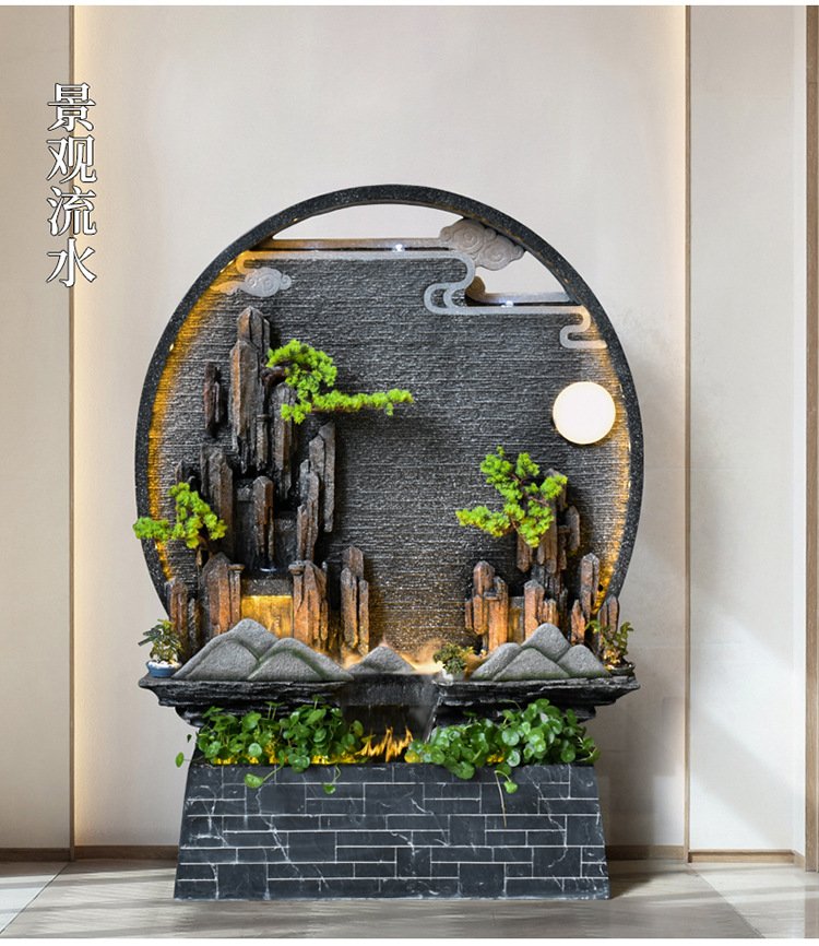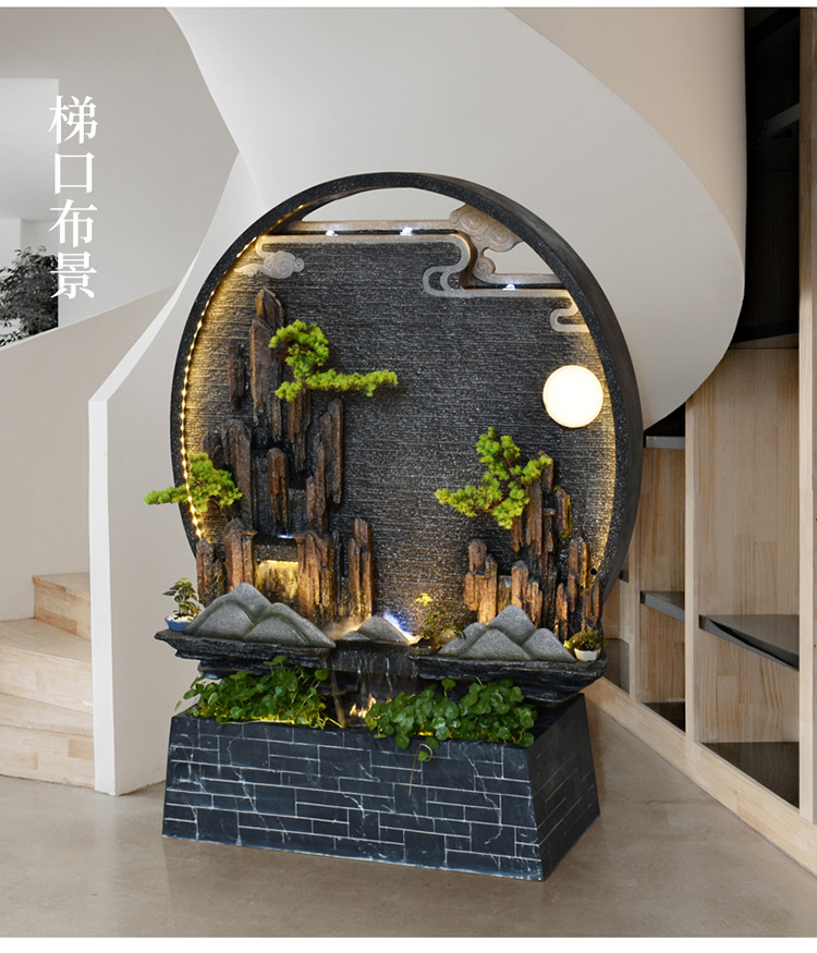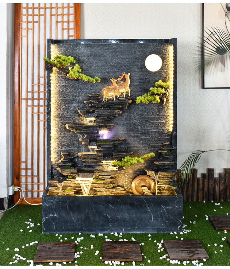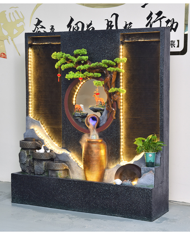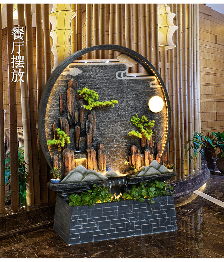 Rockery 물 분수 실내 거실 바닥 장식 풍수 바퀴 물 커튼 벽 물 스크린 오프닝 선물 풍경