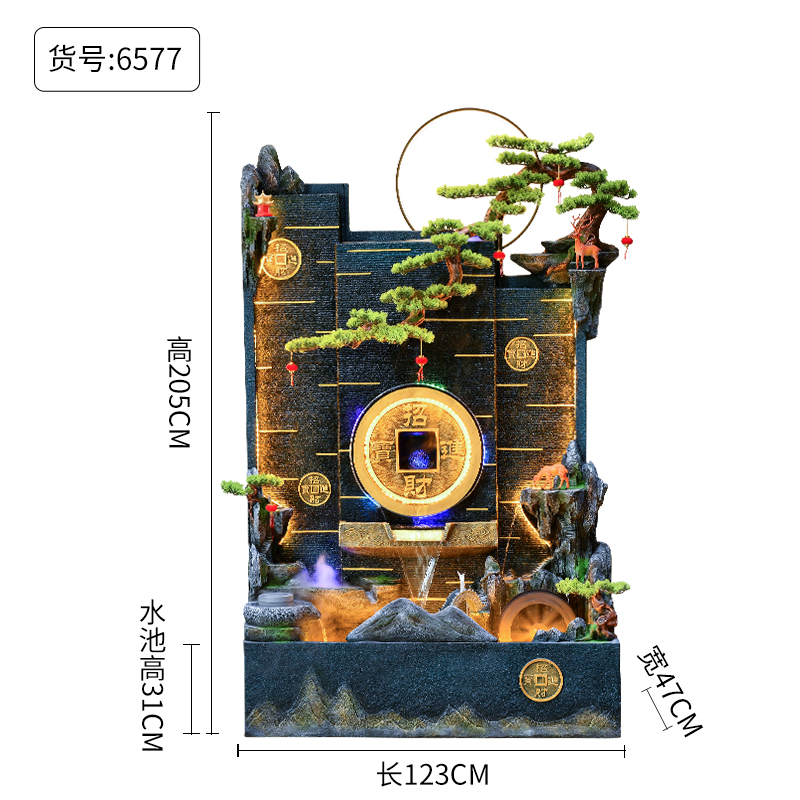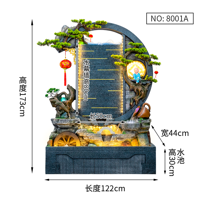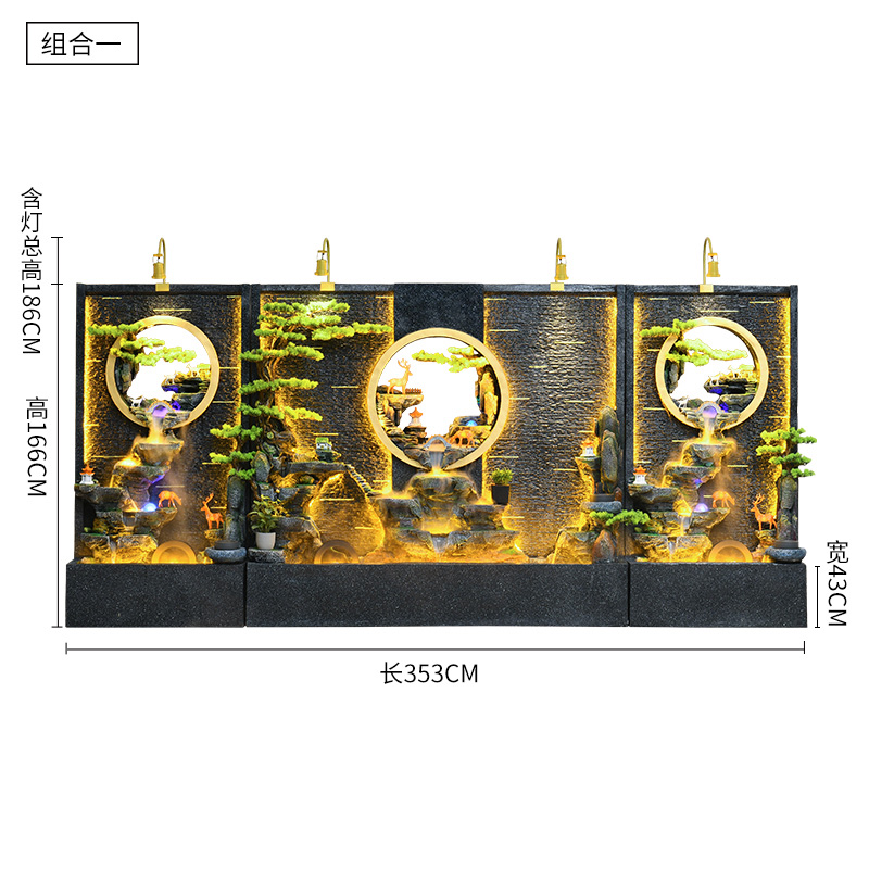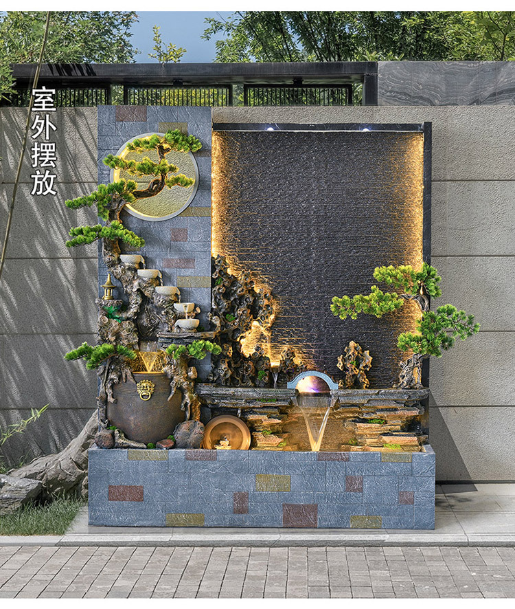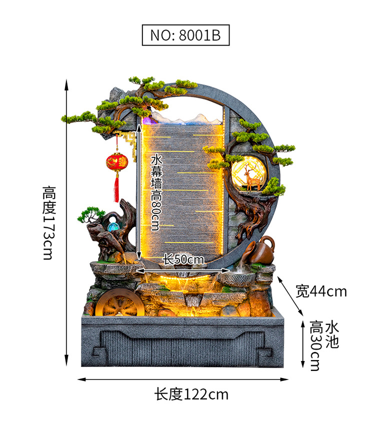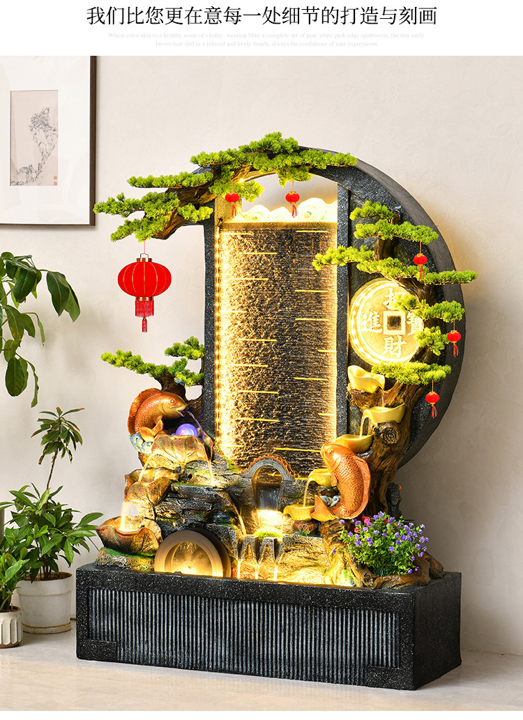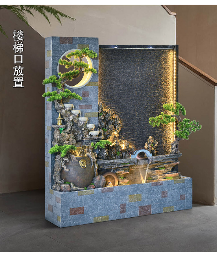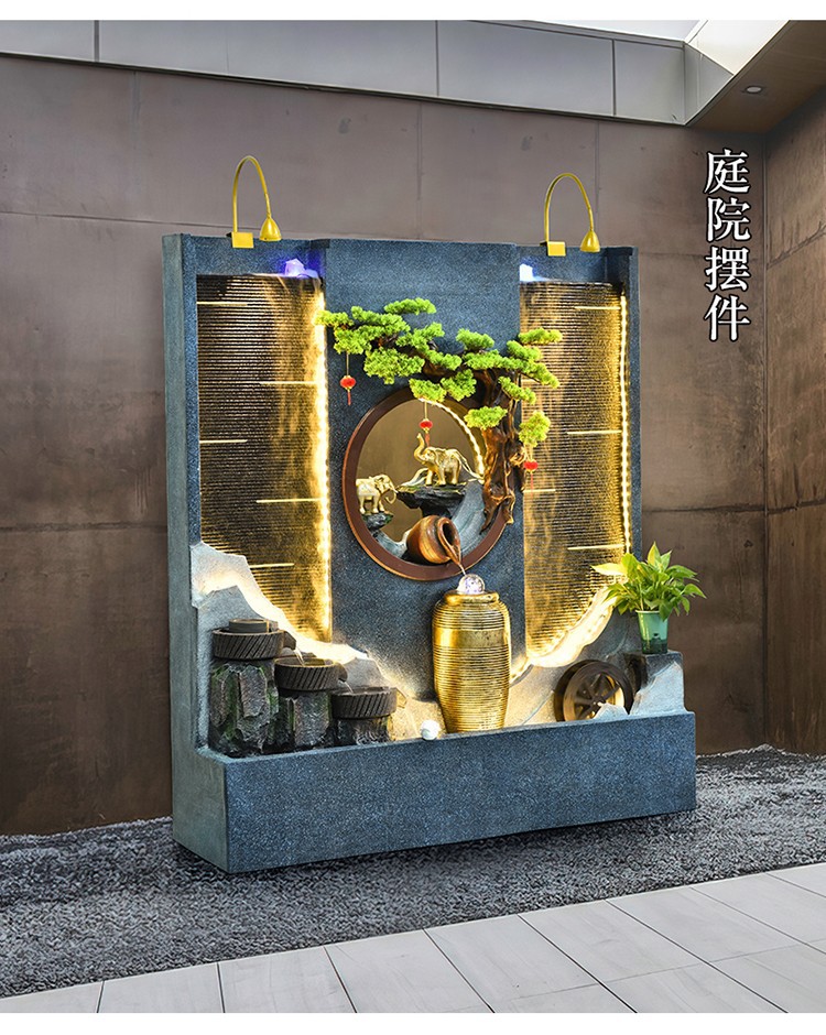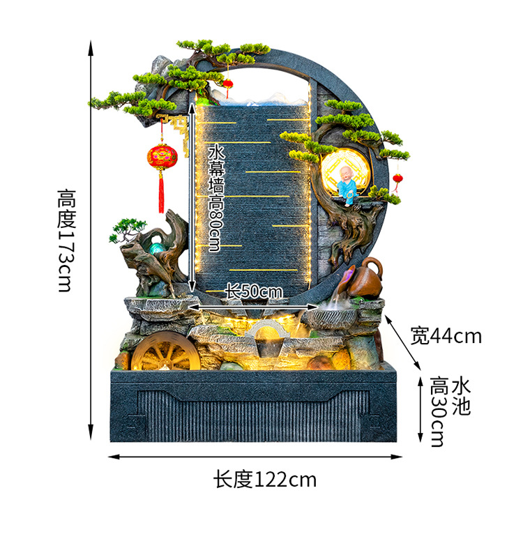 Rockery 물 분수 실내 거실 바닥 장식 풍수 바퀴 물 커튼 벽 물 스크린 오프닝 선물 풍경