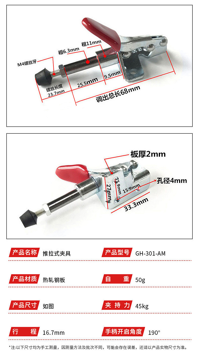 빠른 클램프 푸시 풀 GH-301-AM-WDC 클램프 압축기 헤라클레스 수동 빠른 클램프 도매