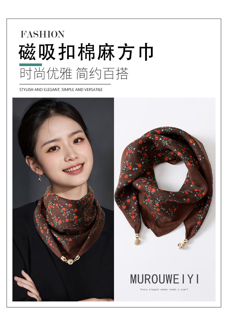 새로운 마그네틱 버클 코튼 및 리넨 스카프 스퀘어 스카프 여성 서양식 목 보호 패션 다크 버클 스카프 올매치 장식 전문 실크 스카프스토어 가기