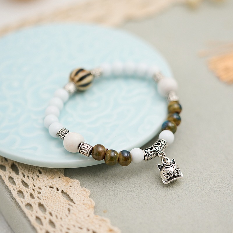 민족 스타일 구슬 세라믹 팔찌 Jingdezhen 도자기 구슬 팔찌 고대 스타일 액세서리 행운의 가방 팔찌 행운의 사자 팔찌스토어 가기