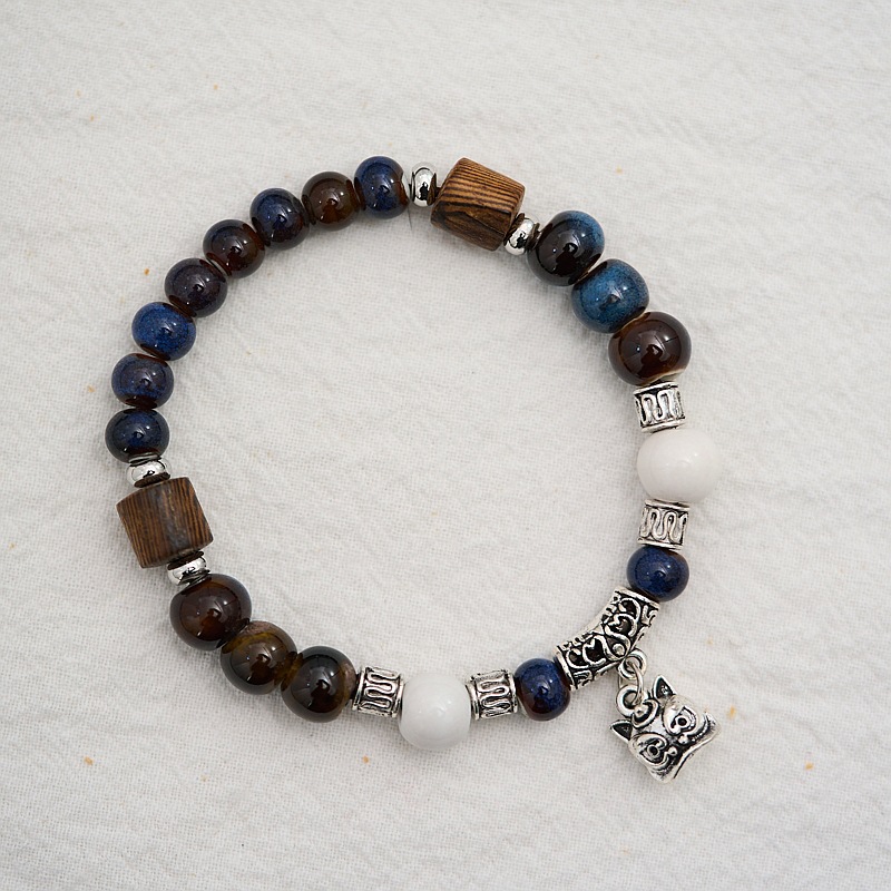 민족 스타일 구슬 세라믹 팔찌 Jingdezhen 도자기 구슬 팔찌 고대 스타일 액세서리 행운의 가방 팔찌 행운의 사자 팔찌