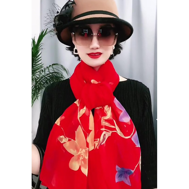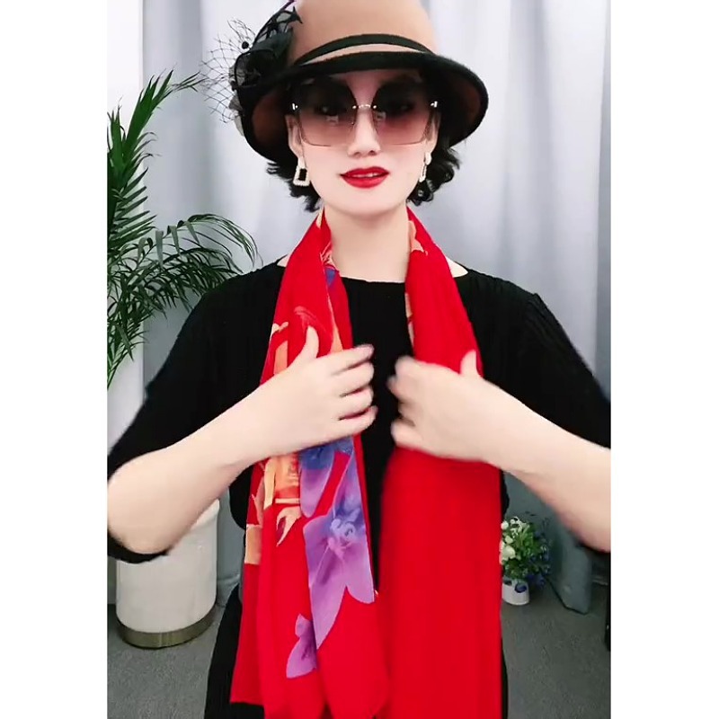 꽃 풍부한 붉은 새해 빨간 스카프 대형 해변 수건 사계절 따뜻한 여행 태양 보호 스카프스토어 가기