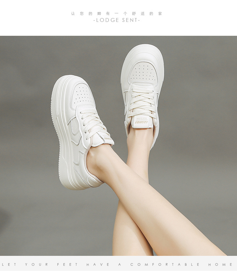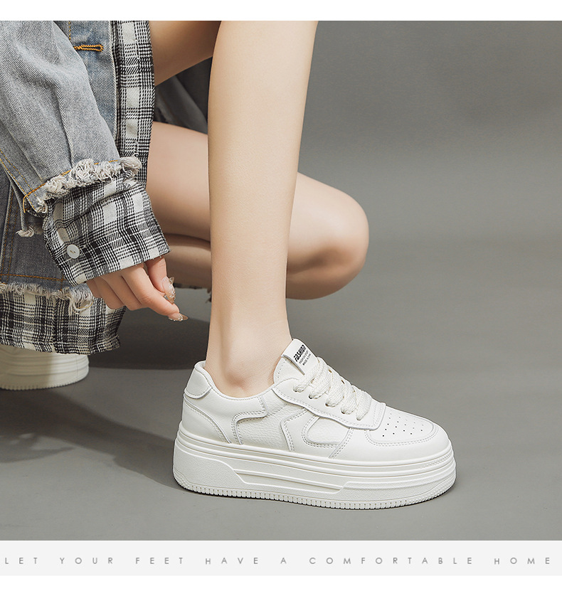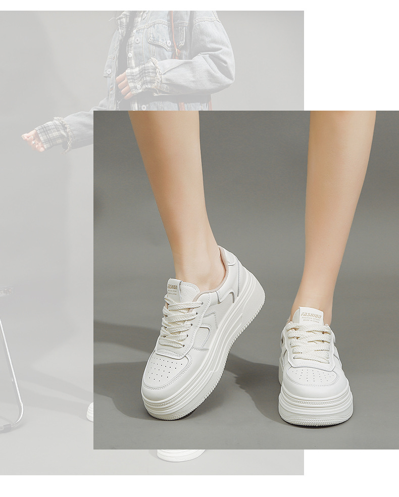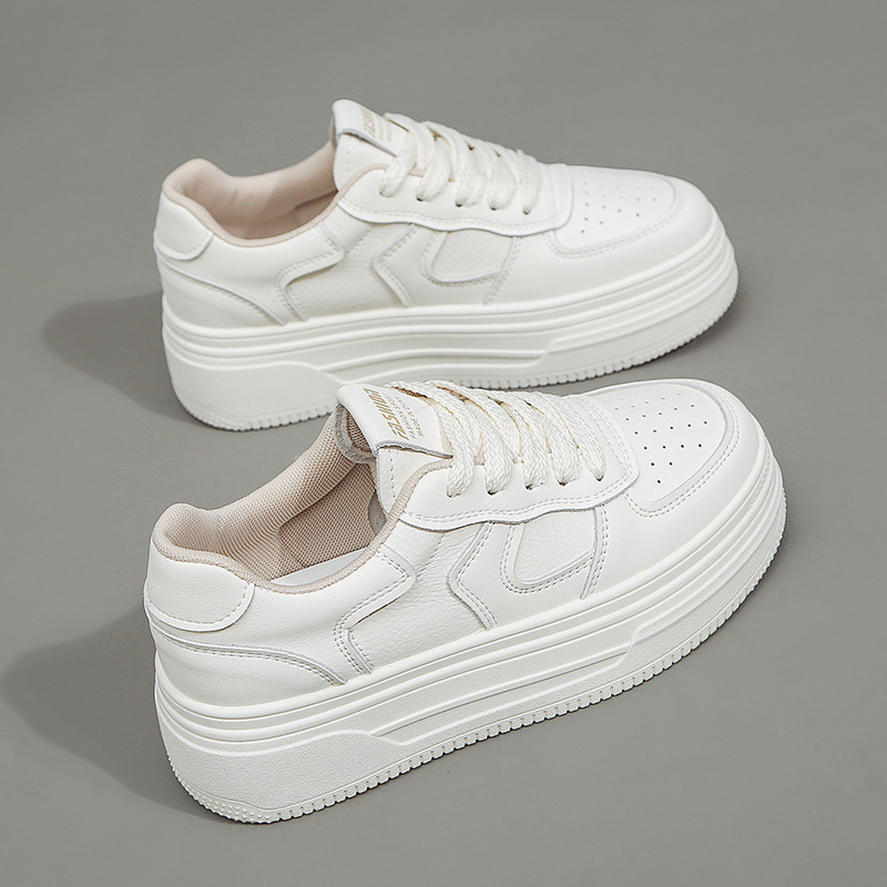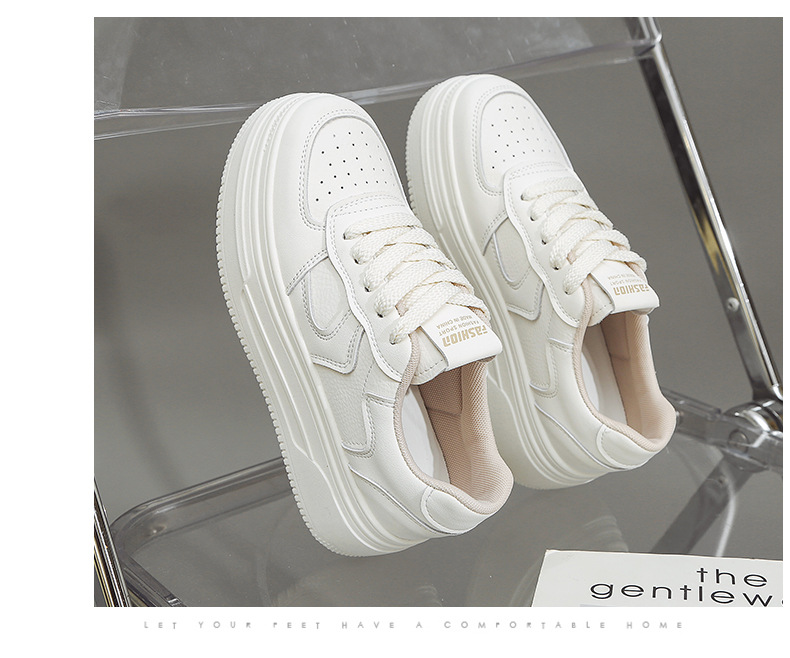 여성을위한 정품 가죽 흰색 신발 2025 봄 새로운 다목적 폭발적인 플랫폼 두꺼운 밑창 높이 증가 여성 신발 캐주얼 스포츠 스니커즈스토어 가기
