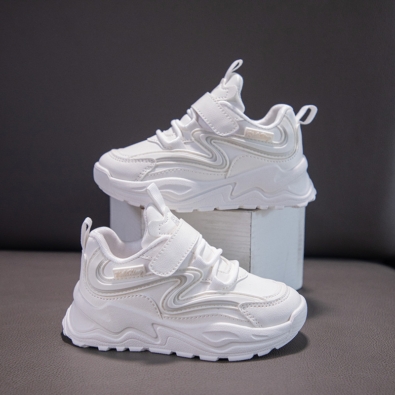 여자 운동화 2025 봄 새로운 한국어 스타일 어린이 운동화 가죽 부드러운 바닥 3-12 세 학생 흰색 신발스토어 가기