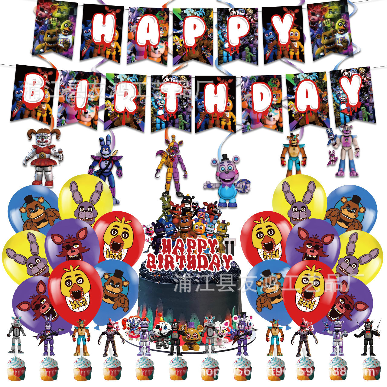 다섯 밤 곰 프레디 생일 파티 장식 만화 파티 생일 장식 풀 깃발 풍선 세트