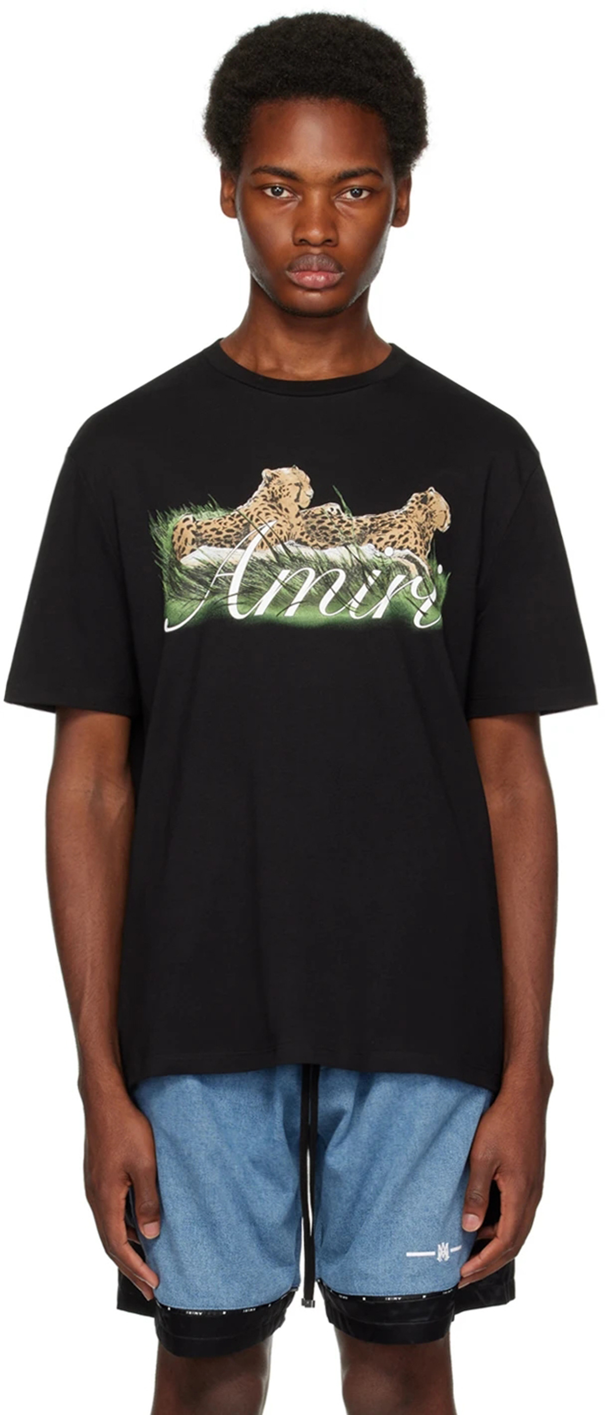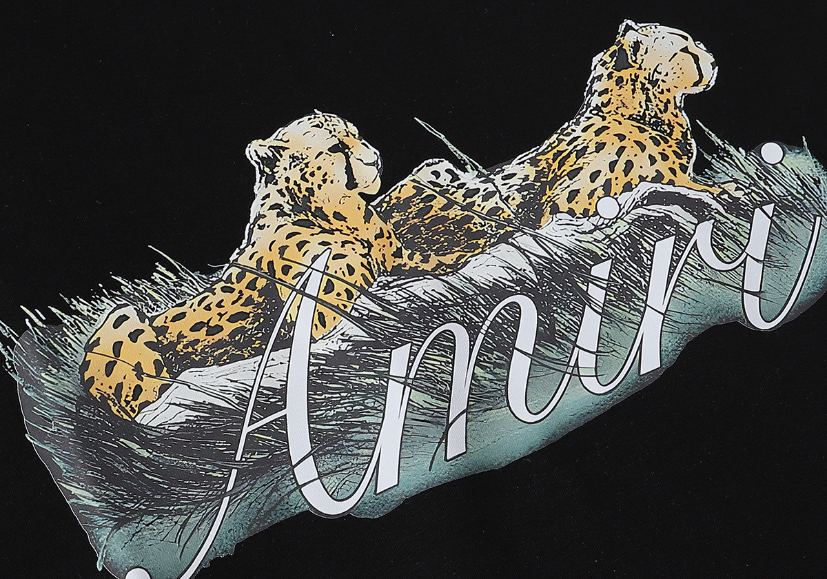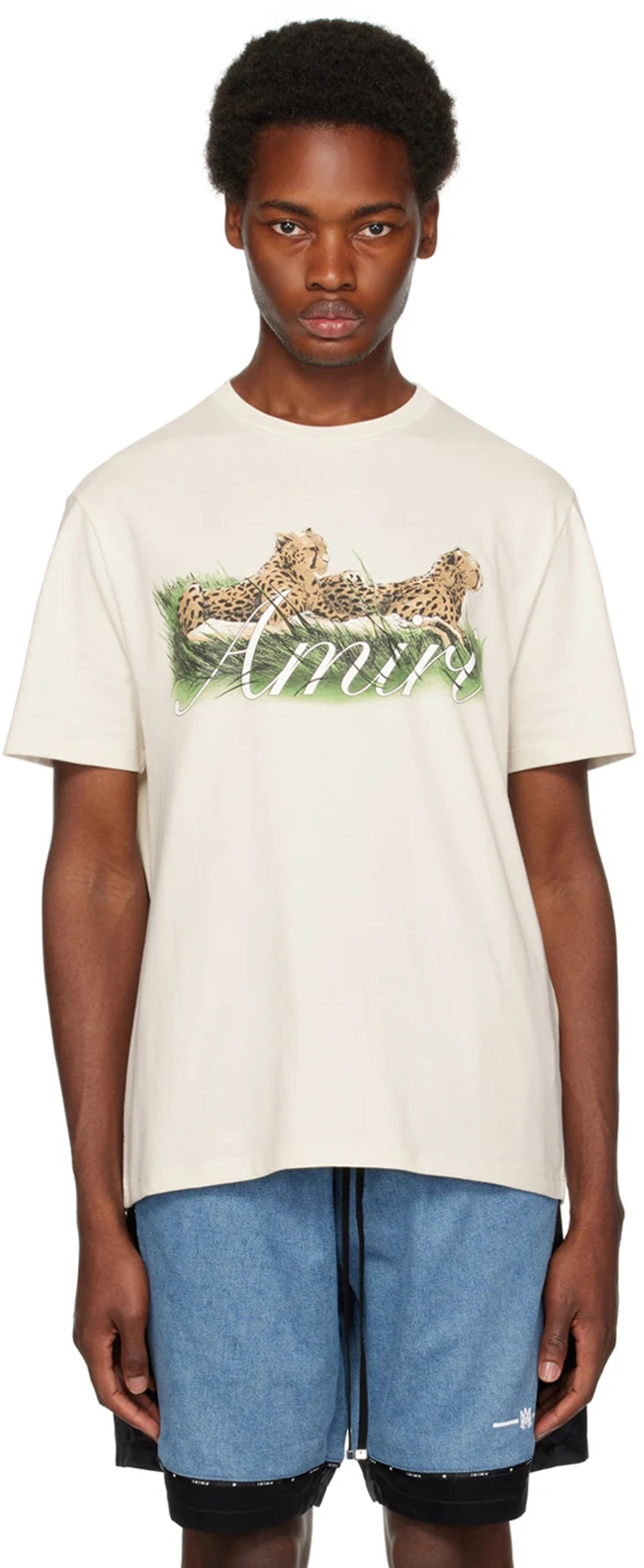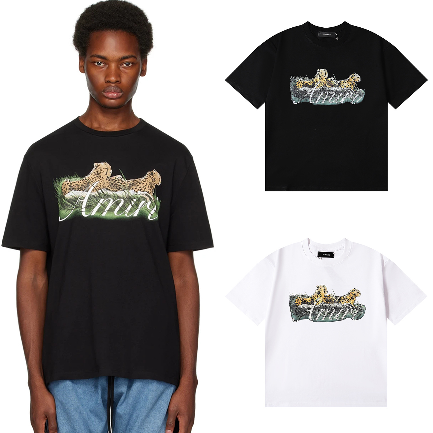 2024 여름 트렌디 한 아미리 라이트 럭셔리 치타 인쇄 높은 무게면 캐주얼 반팔 티셔츠 남성과 여성 커플 착용스토어 가기