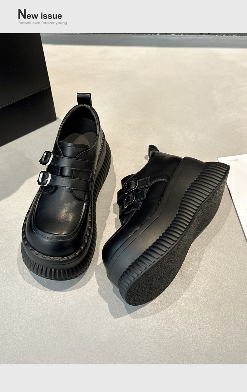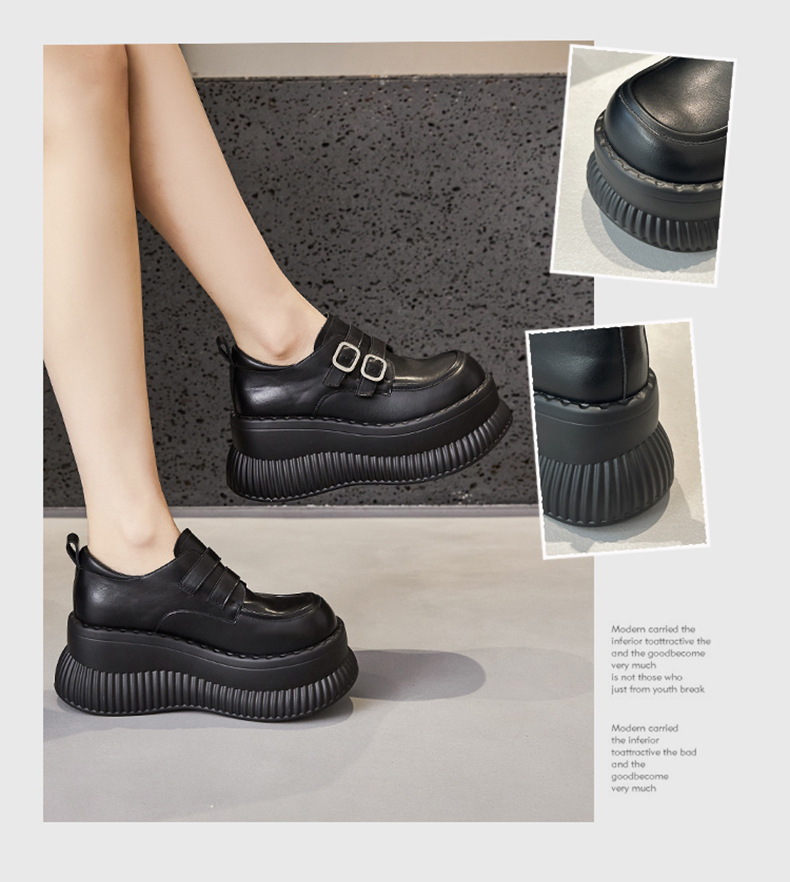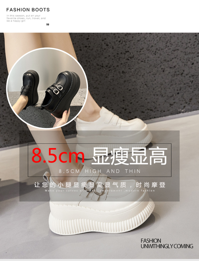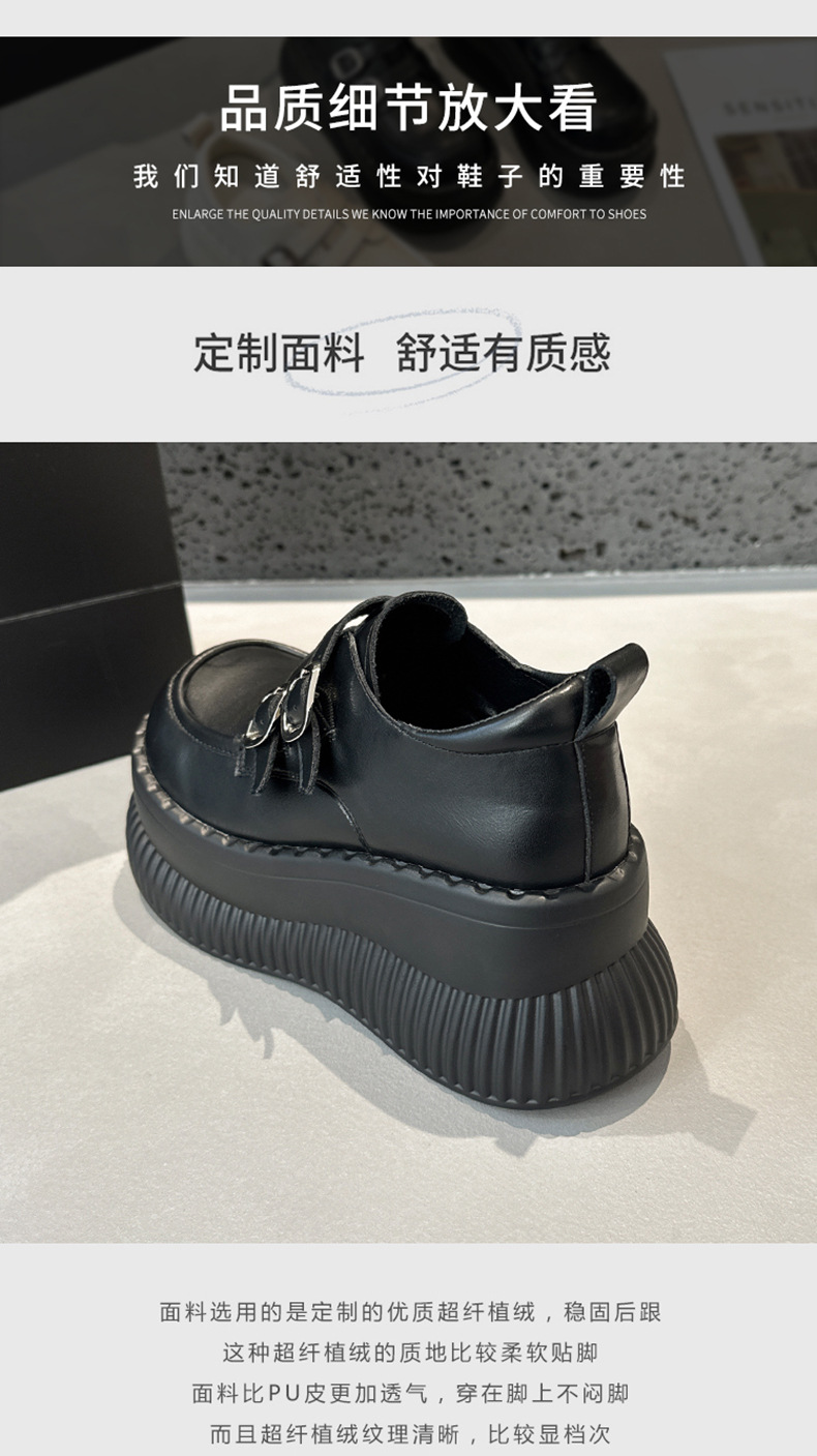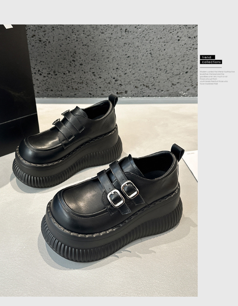 여성용 두꺼운 밑창 로퍼 2025 봄 새로운 다용도 작은 내부 높이 여성 신발 검은 영국 스타일 작은 가죽 신발스토어 가기