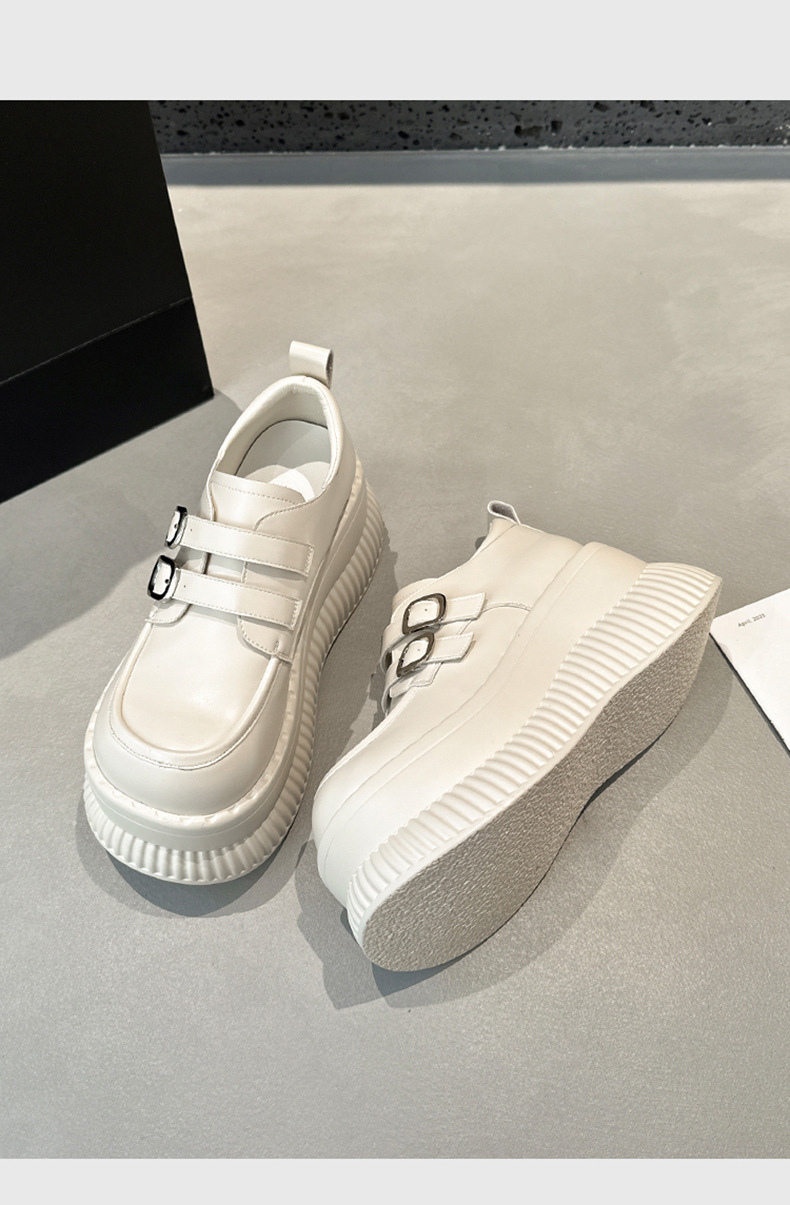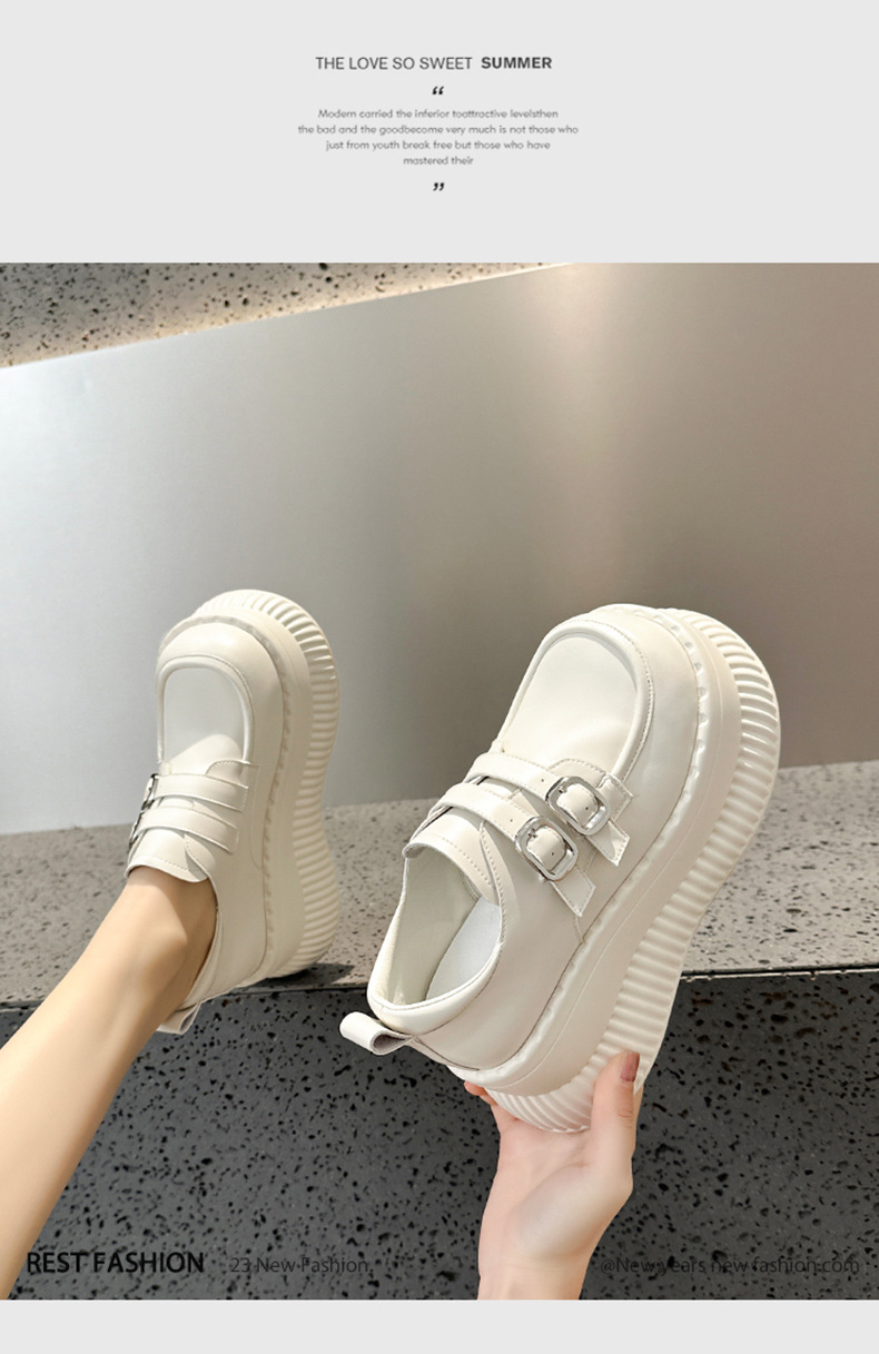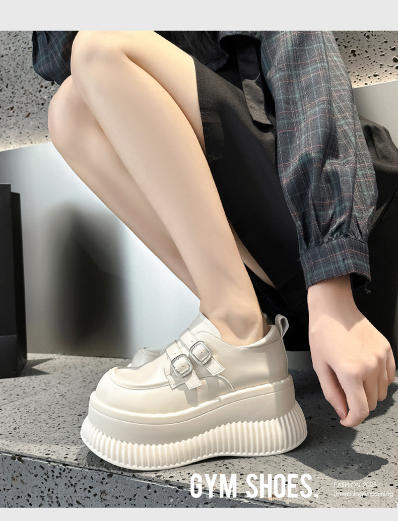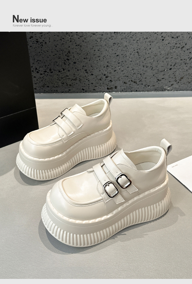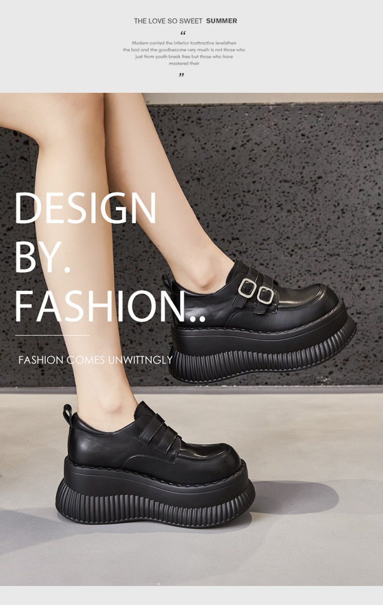 여성용 두꺼운 밑창 로퍼 2025 봄 새로운 다용도 작은 내부 높이 여성 신발 검은 영국 스타일 작은 가죽 신발스토어 가기
