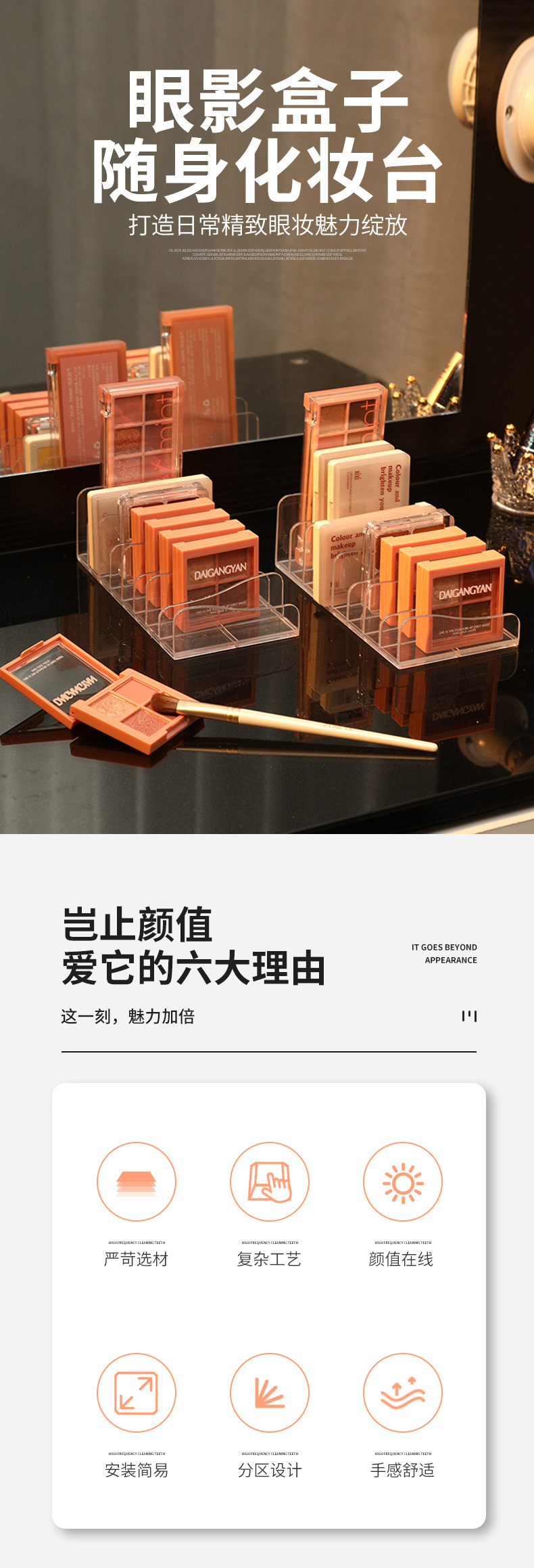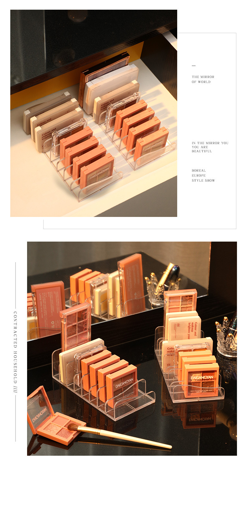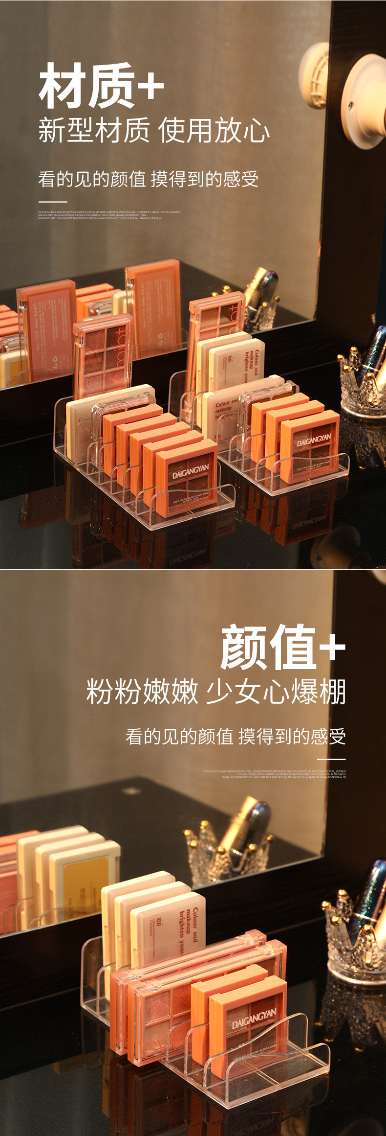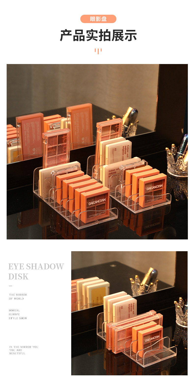 [두꺼운 아이 섀도우 플레이트 스토리지 랙] 투명한 메이크업 파우더 케이크 상자 화장품 블러시 스토리지 랙 데스크탑 파티션