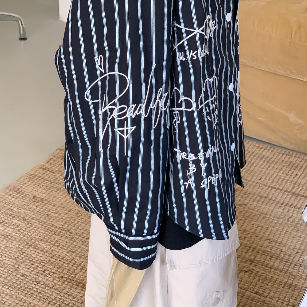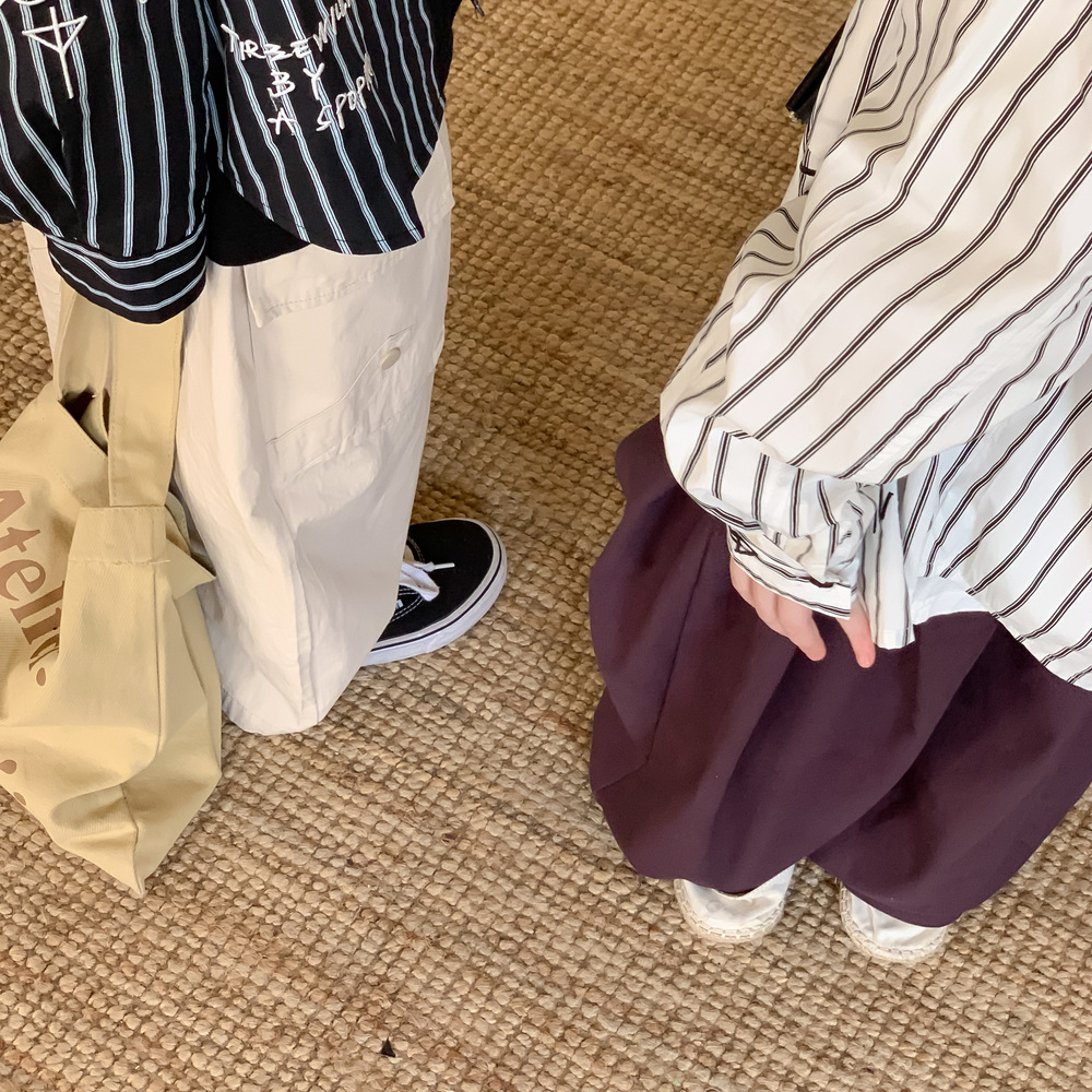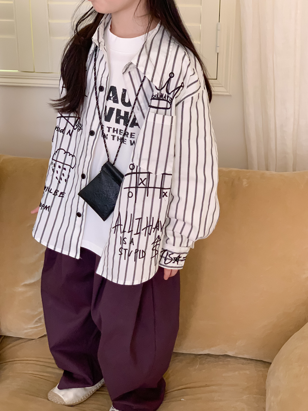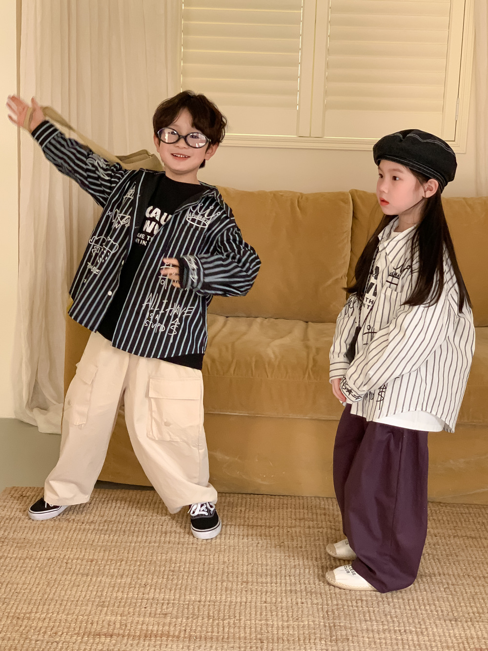 아동용 셔츠 2024 가을 한국 스타일 옷깃 스트라이프 셔츠 소년 소녀용, 아동용 캐주얼 루즈 다용도 레터 탑스토어 가기