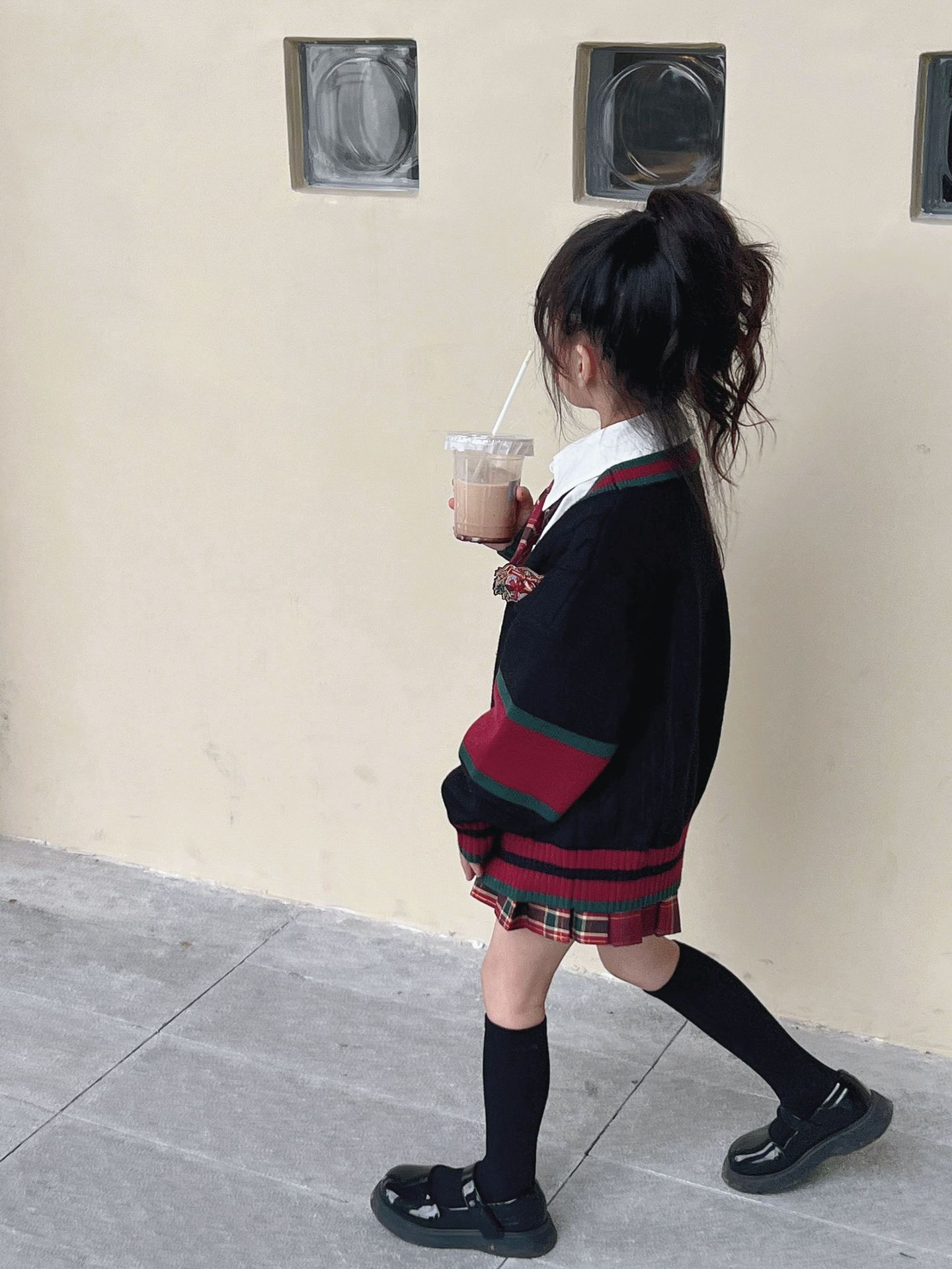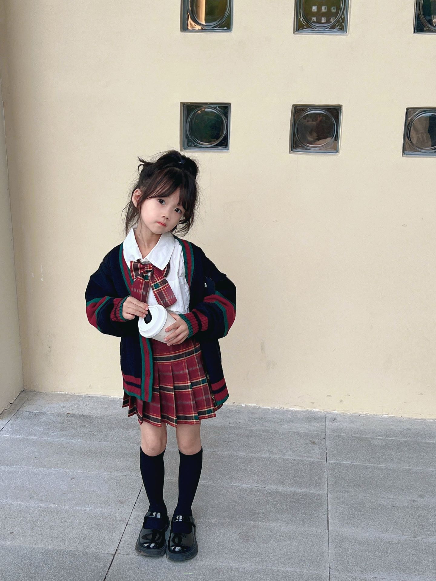 새해 크리스마스 가을과 겨울 세트 스웨터 카디건 코트 소녀 의류 jk 유니폼 스커트 대학 스타일 새해 복스토어 가기
