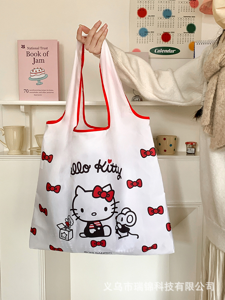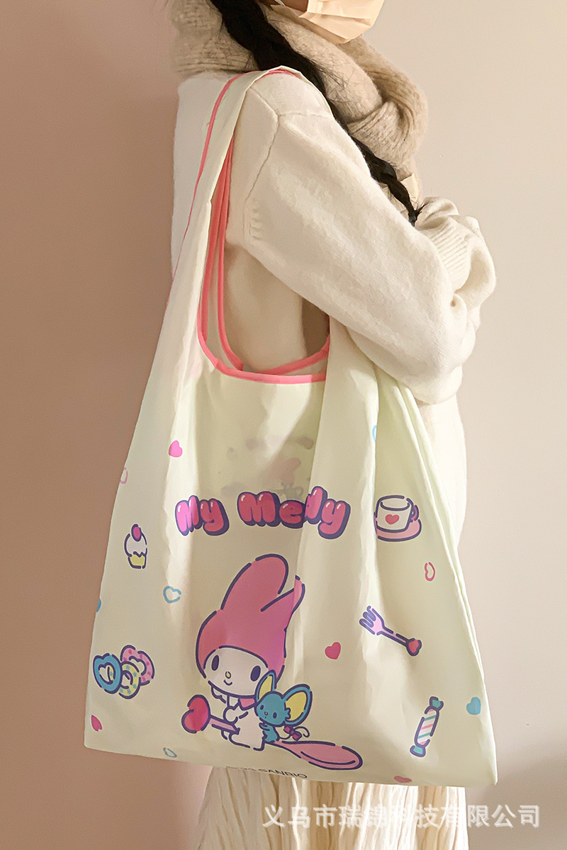 산리오 정품 가방 공장 도매 귀여운 쿨리 미 소녀 어깨 접이식 대용량 쇼핑백