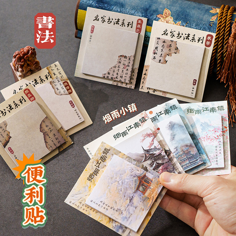 유명한 서예 시리즈 끈적 끈적한 메모 고대 스타일 고풍스러운 인은 강한 끈적 끈적한 소재 국가 패션 노트 종이 N 번 스티커스토어 가기