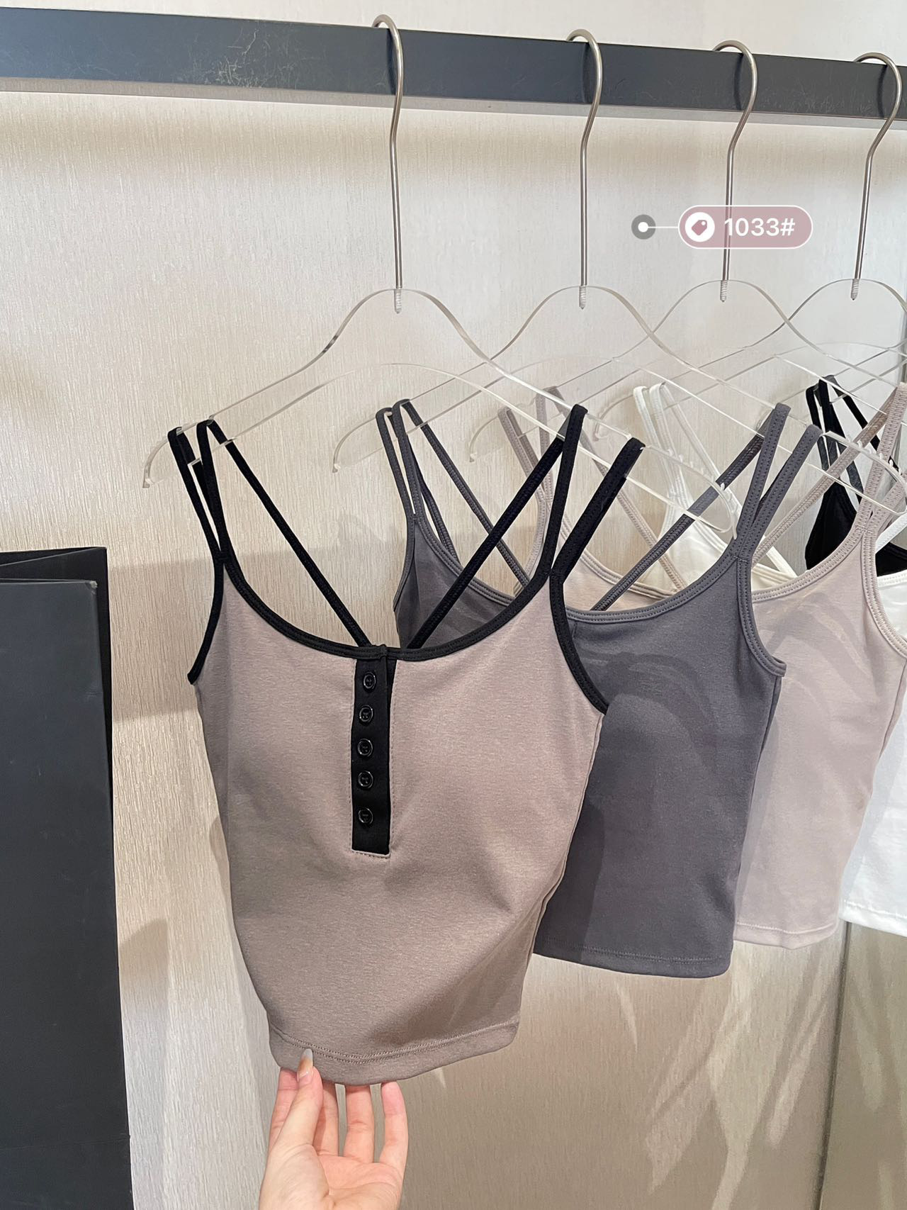 한국식 크로스 숄더 스트랩 버튼 서스펜더 스트랩 가슴 패드 편안한 고정 컵 아름다운 뒷면 안쪽과 바깥 쪽의 짧은 착용스토어 가기