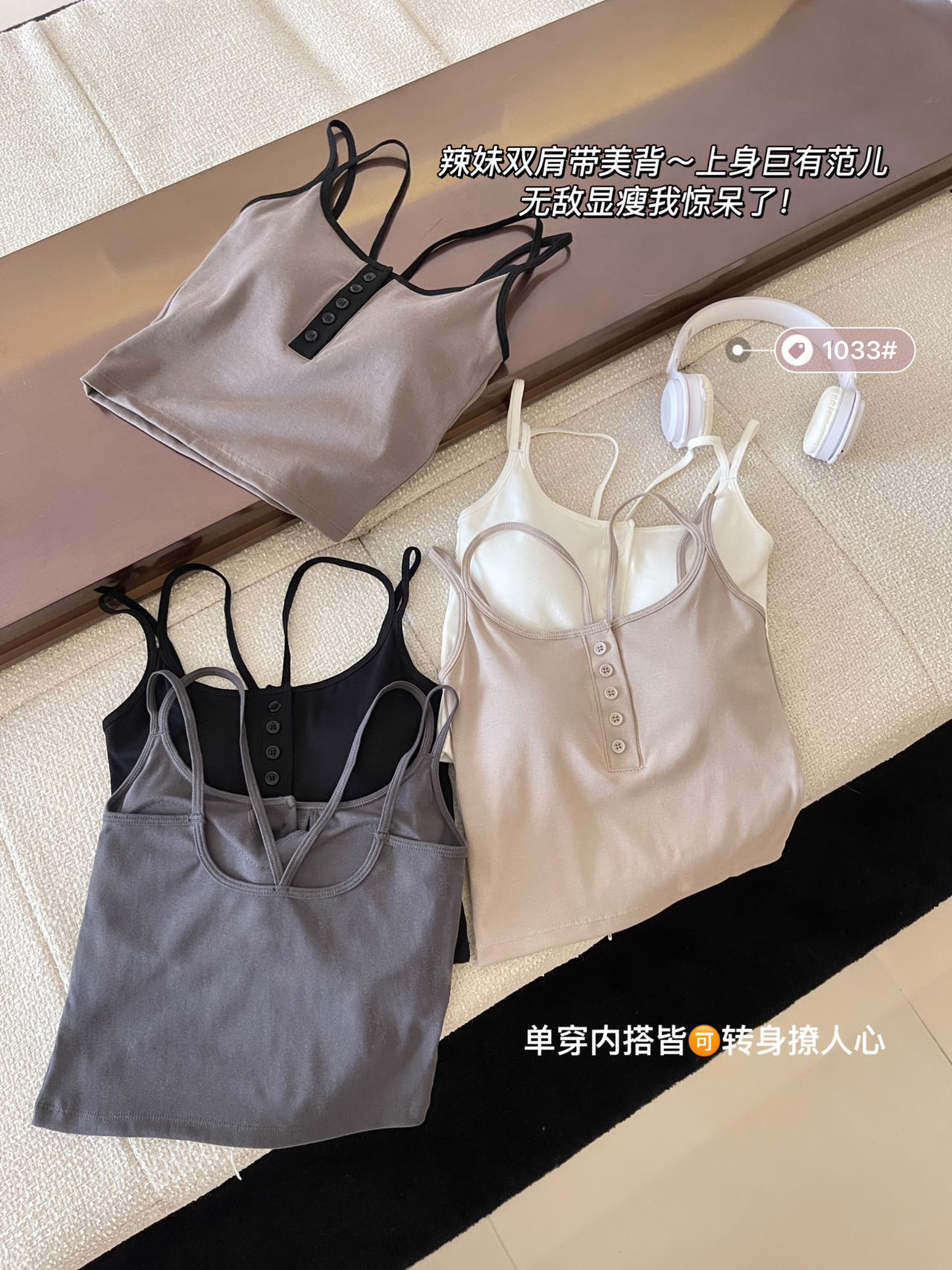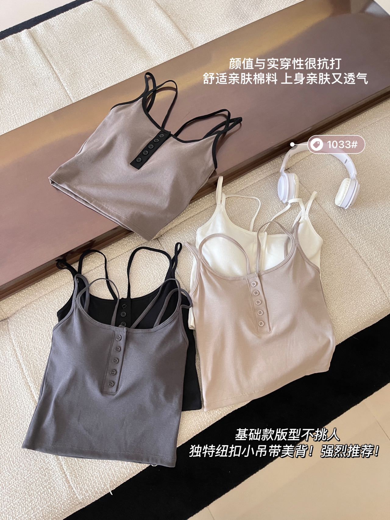 한국식 크로스 숄더 스트랩 버튼 서스펜더 스트랩 가슴 패드 편안한 고정 컵 아름다운 뒷면 안쪽과 바깥 쪽의 짧은 착용