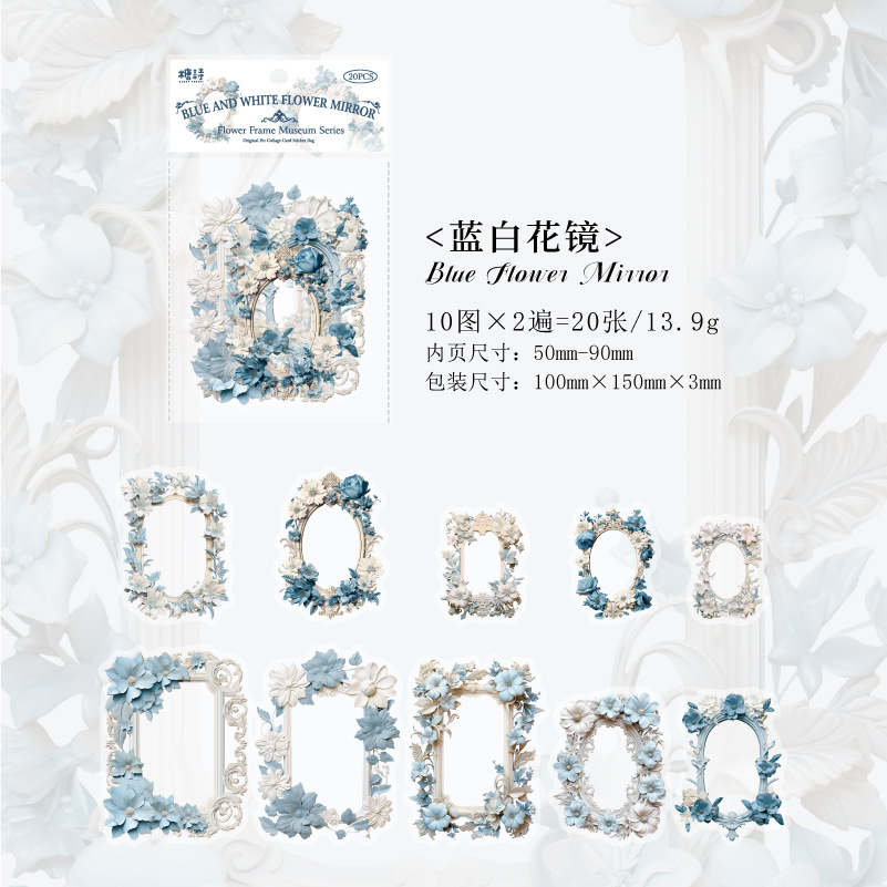 설탕시 PET 콜라주 카드 스티커 가방 꽃 프레임 박물관 시리즈 손 계정 DIY 장식 기본 스티커 소재 6