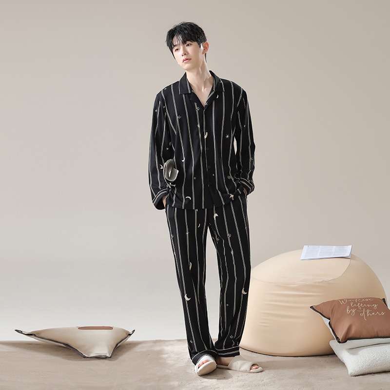 [항균성 신장면] 2024 새 봄 · 가을 커플 잠옷 여성 긴팔 면화 남성용 홈웨어 세트스토어 가기