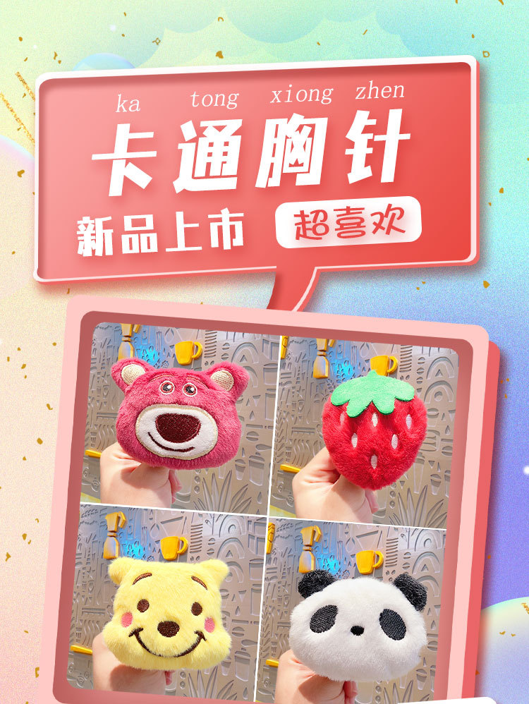 봉제 만화 브로치 인형 펜던트 백 펜던트 작은 보석 DIY 의류 액세서리 도매 키 체인스토어 가기