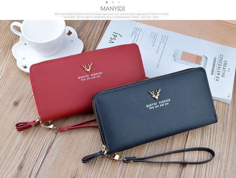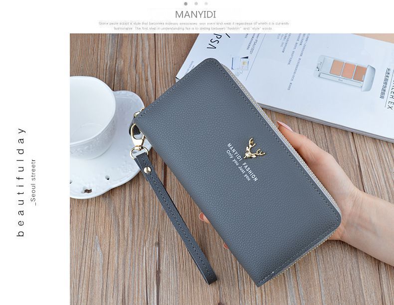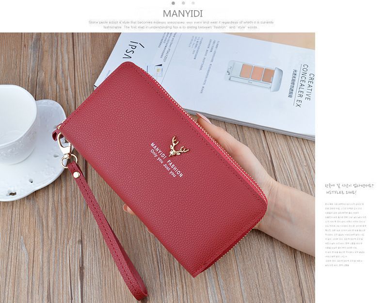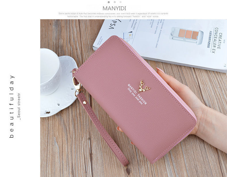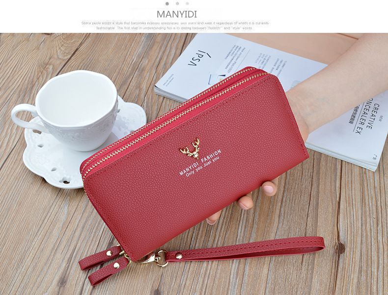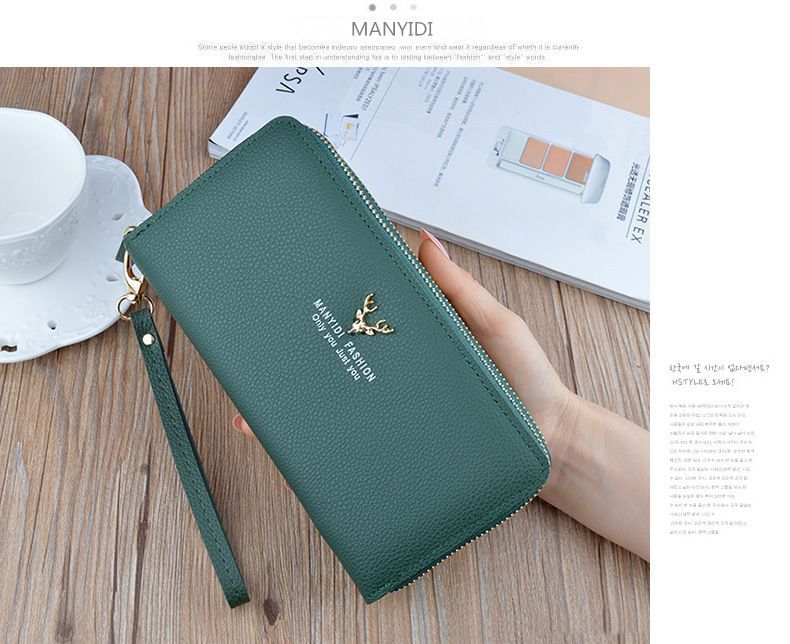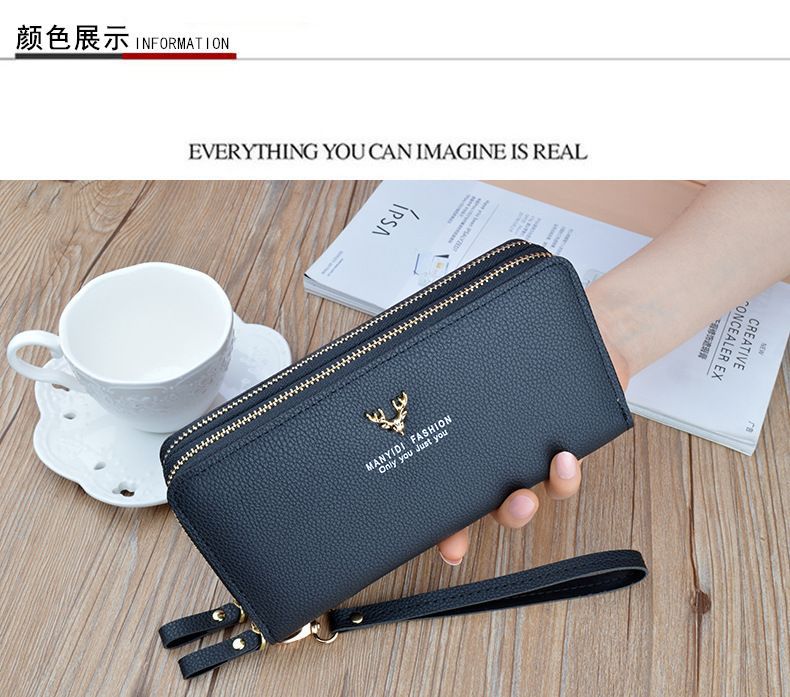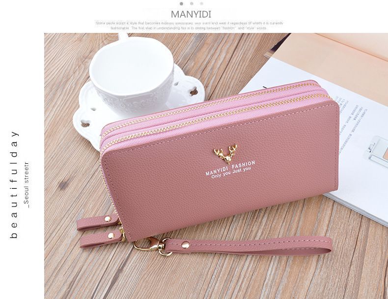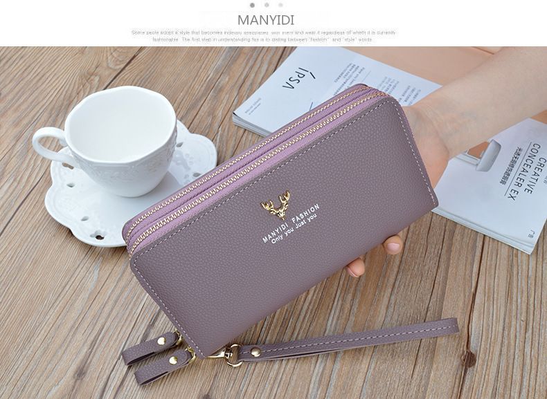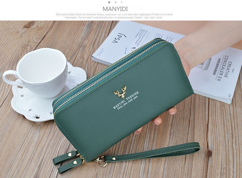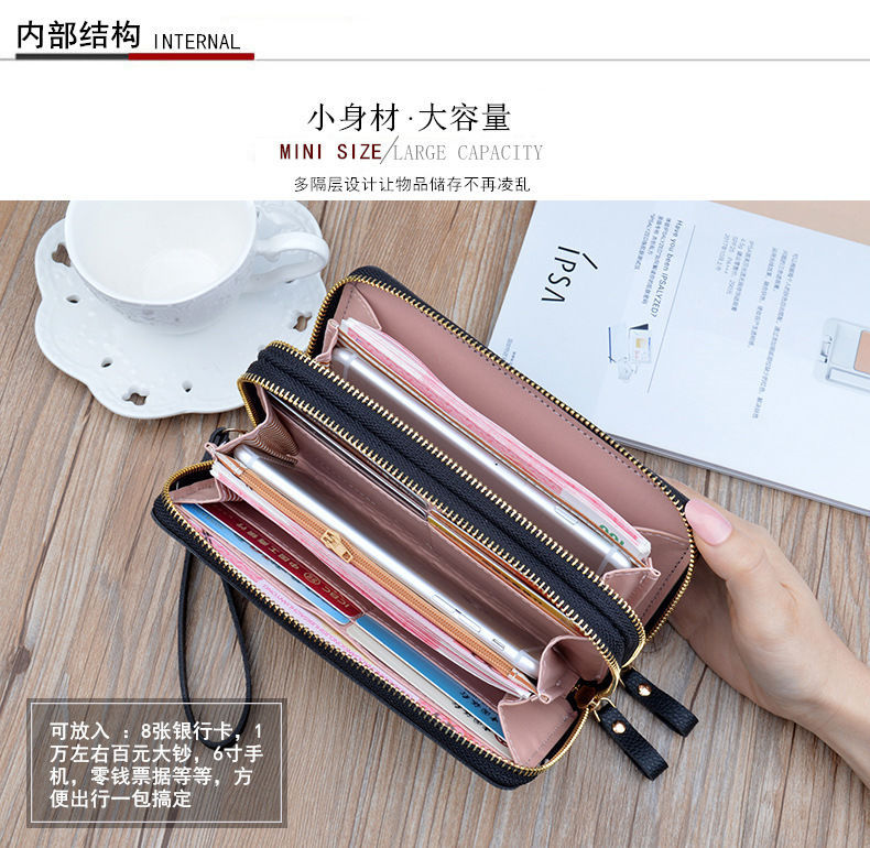 여성용 지갑 여성용 롱 클러치 더블 지퍼 지갑 카드 가방 대용량 더블 레이어 지갑 휴대 전화 가방 대외 무역스토어 가기