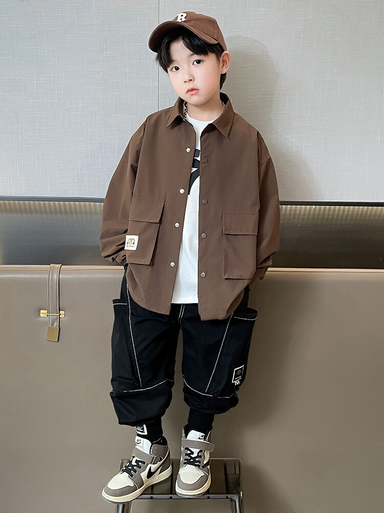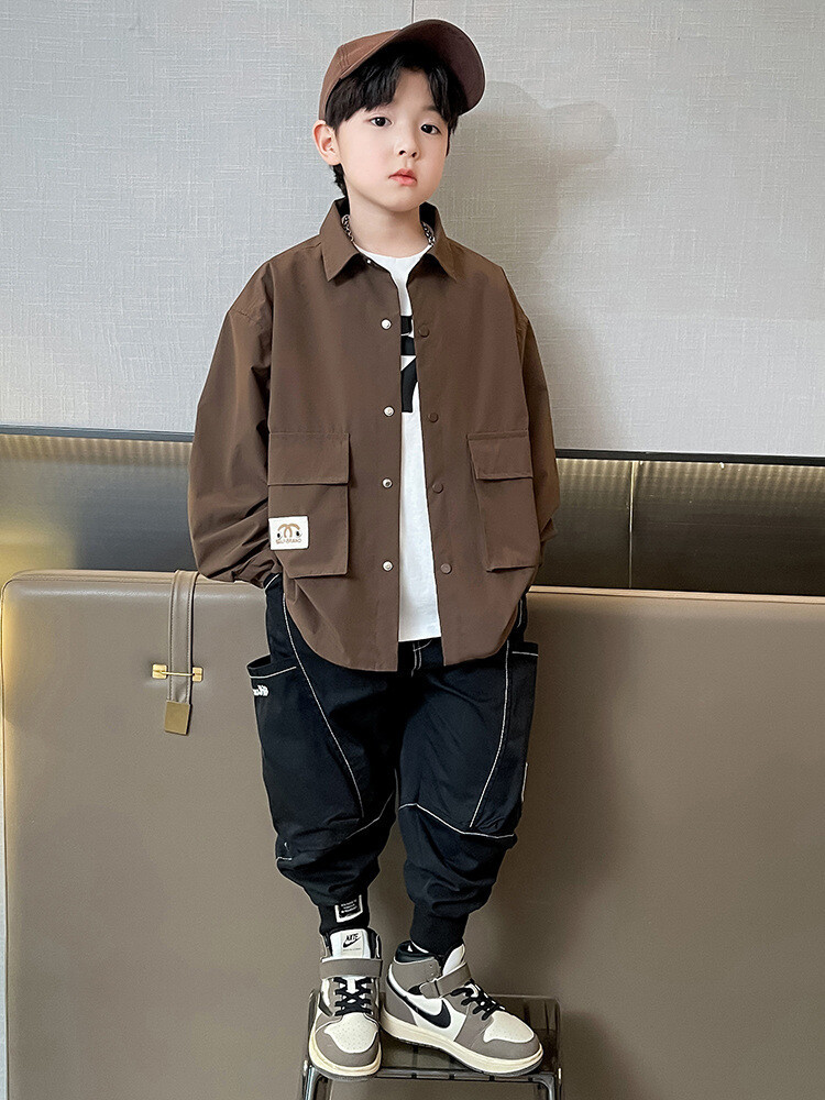 소년 셔츠 도매 2024 새로운 어린이 패션 봄 느슨한 캐주얼 트렌디 쿨 셔츠 다목적 한국 스타일 탑