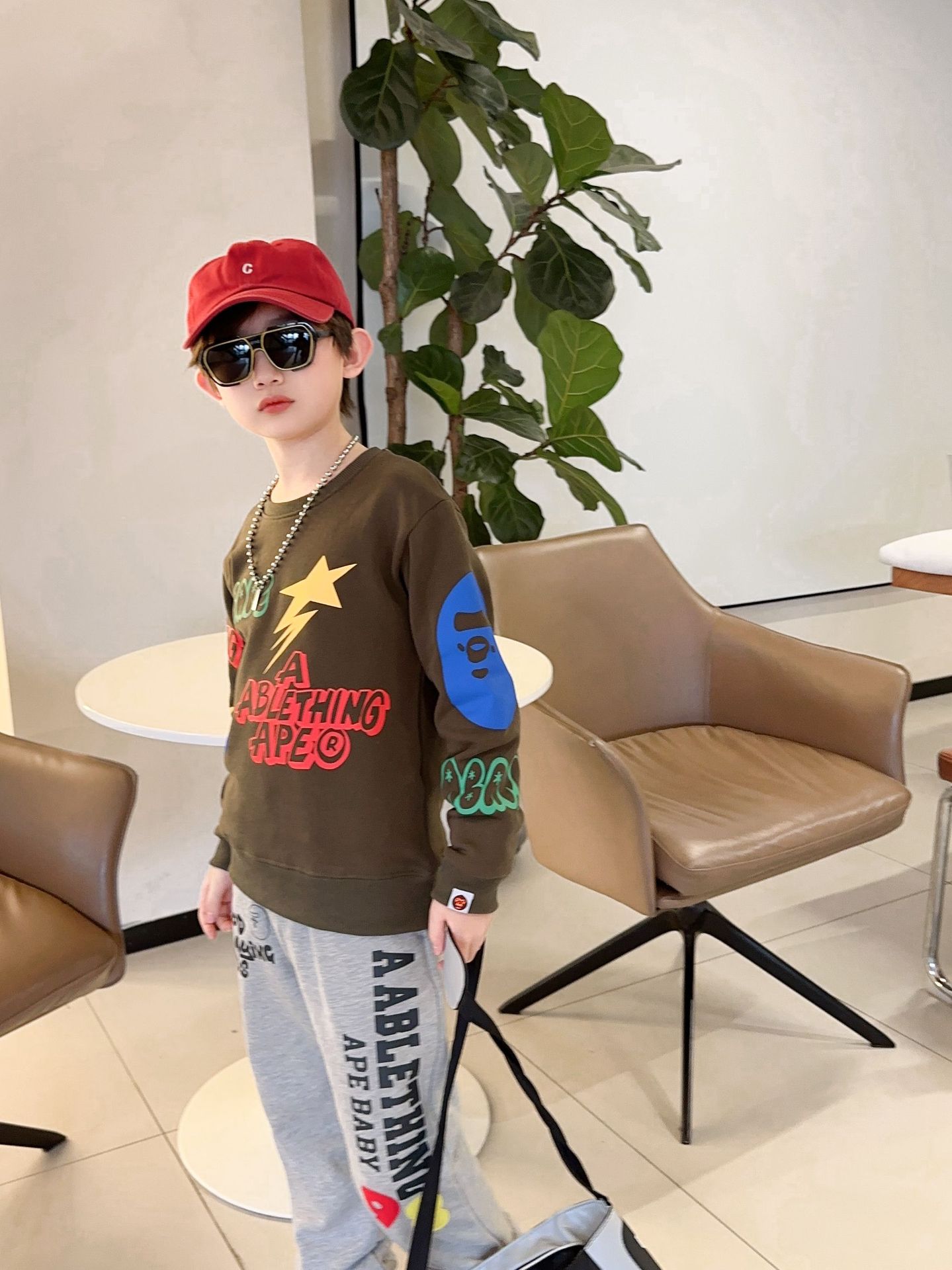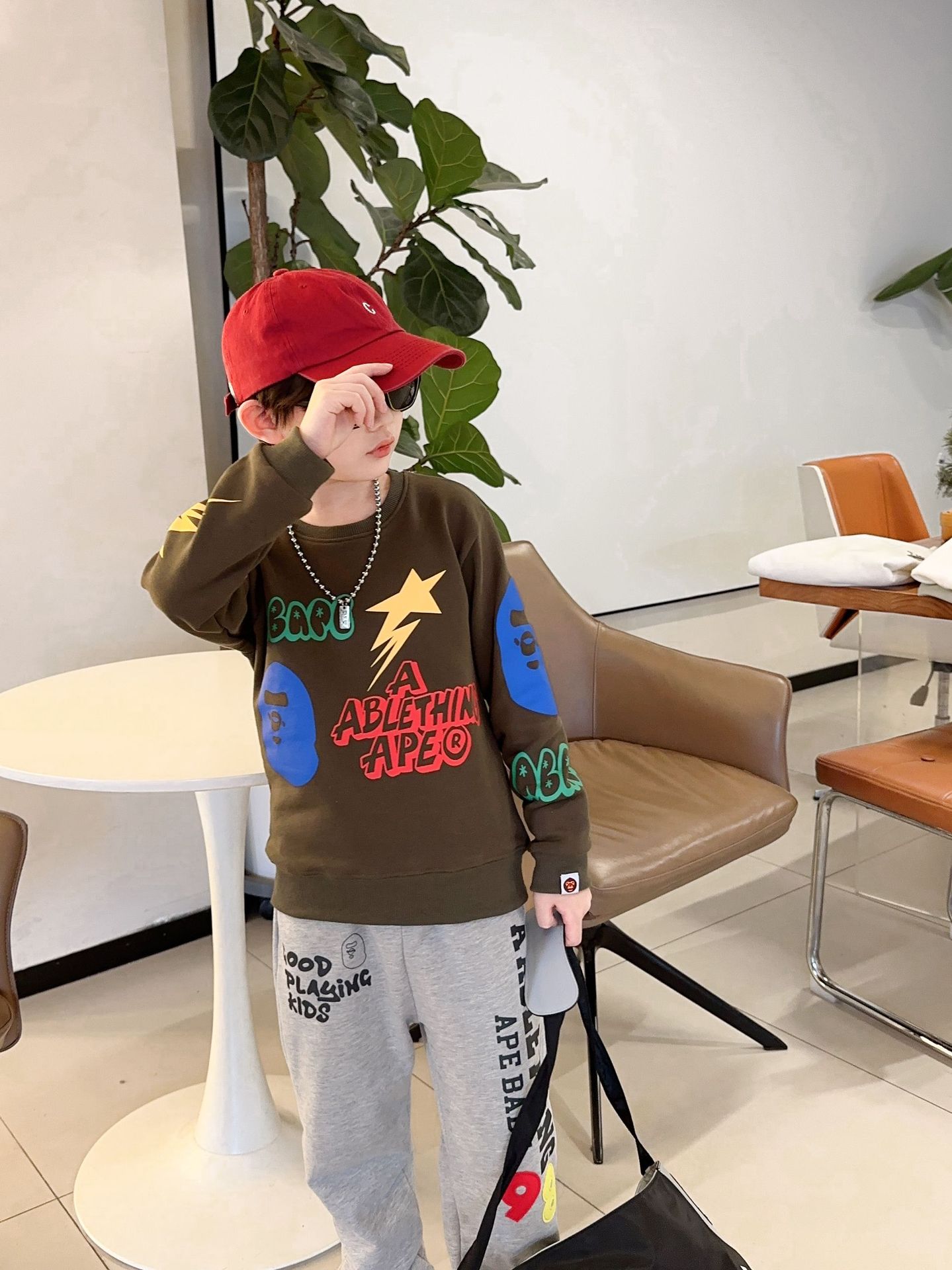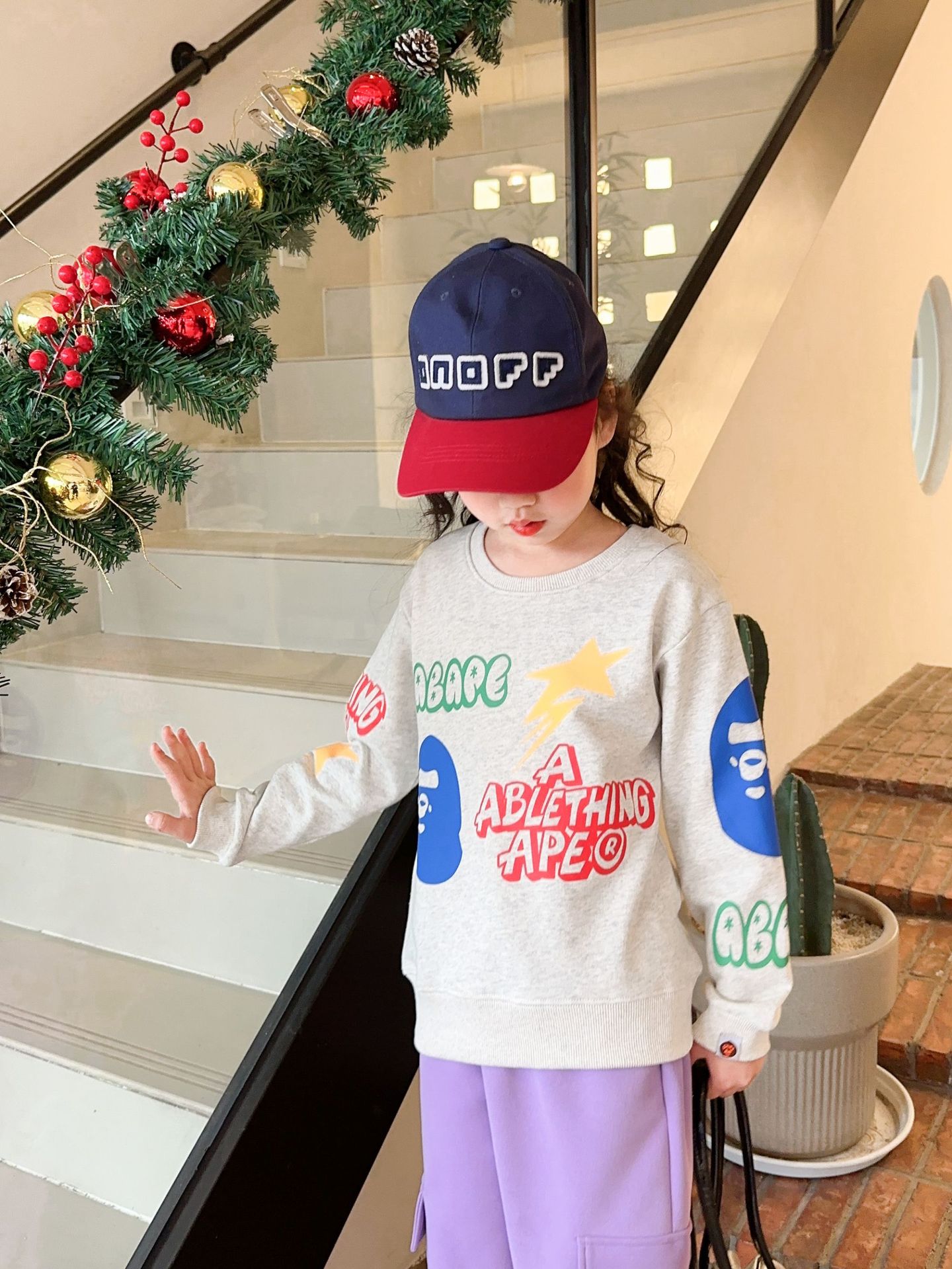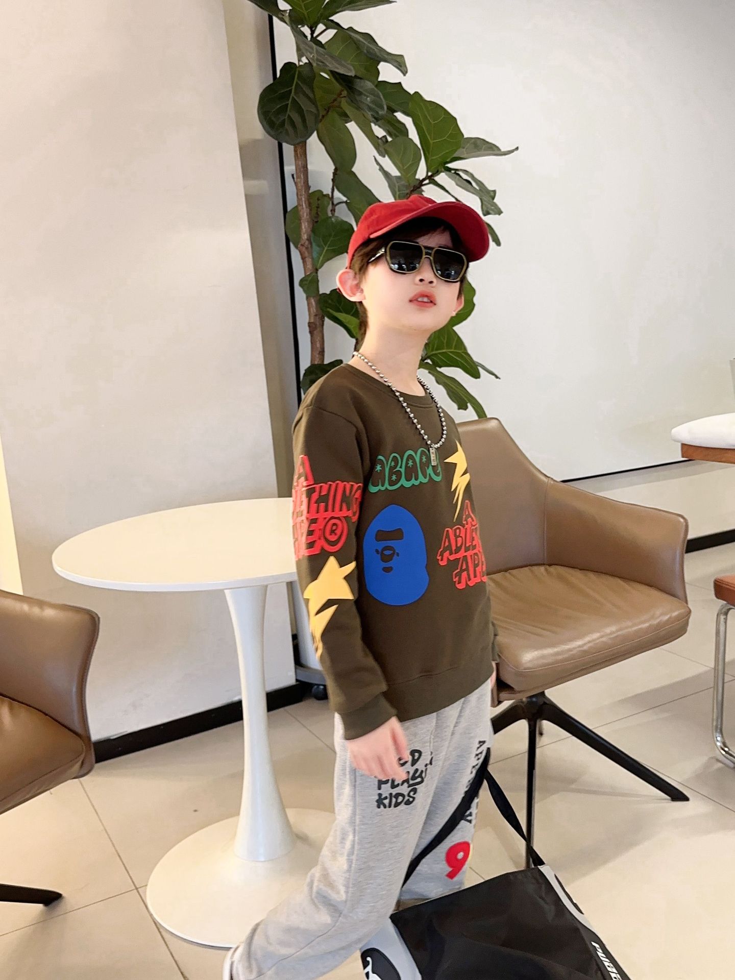 가을 어린이용 봄, 가을, 겨울 스타일 트렌디 브랜드 캐주얼 라운드넥 풀오버 만화 프린트 칭다오 원숭이 아동복 부드러운 촉감스토어 가기