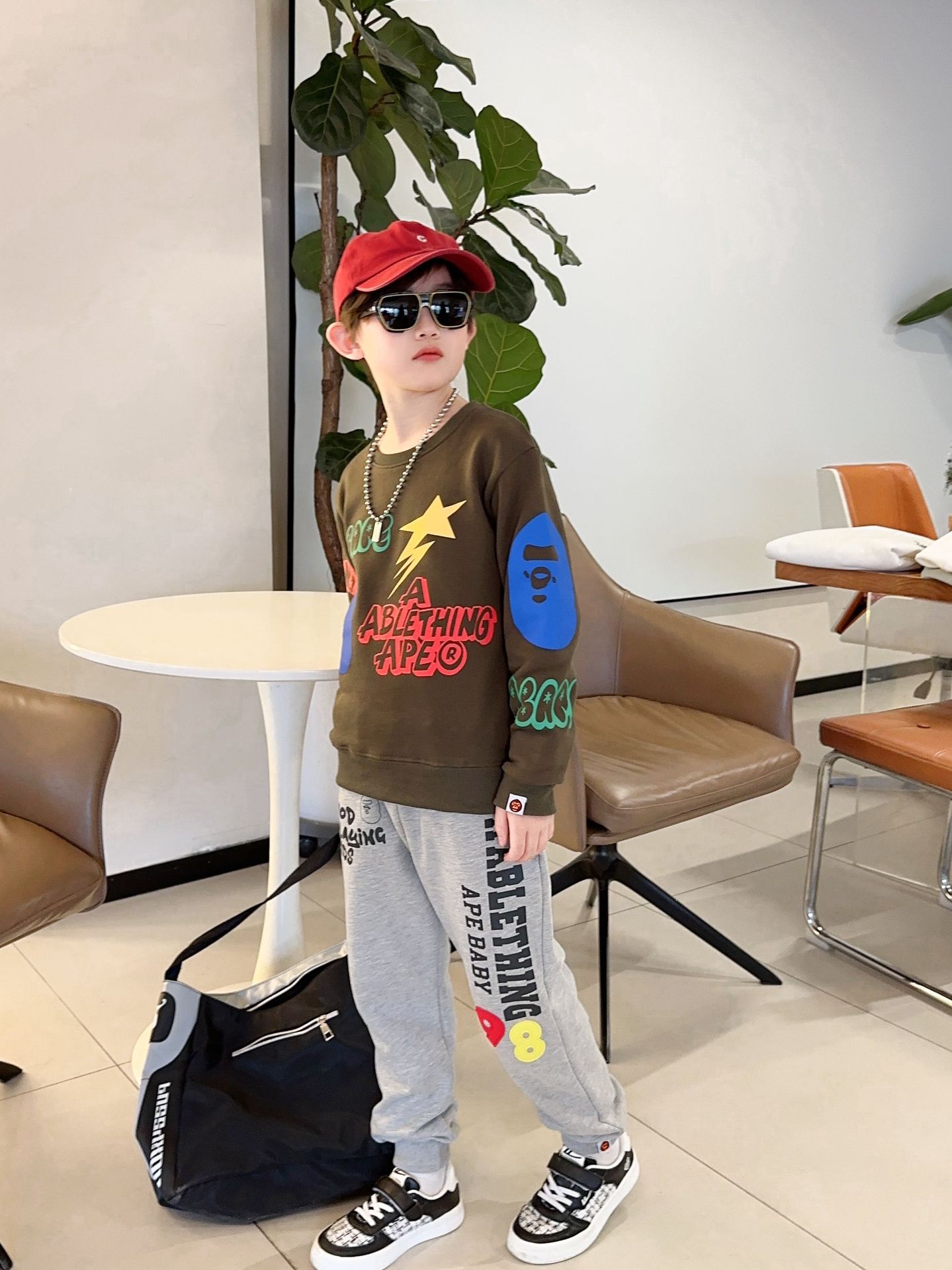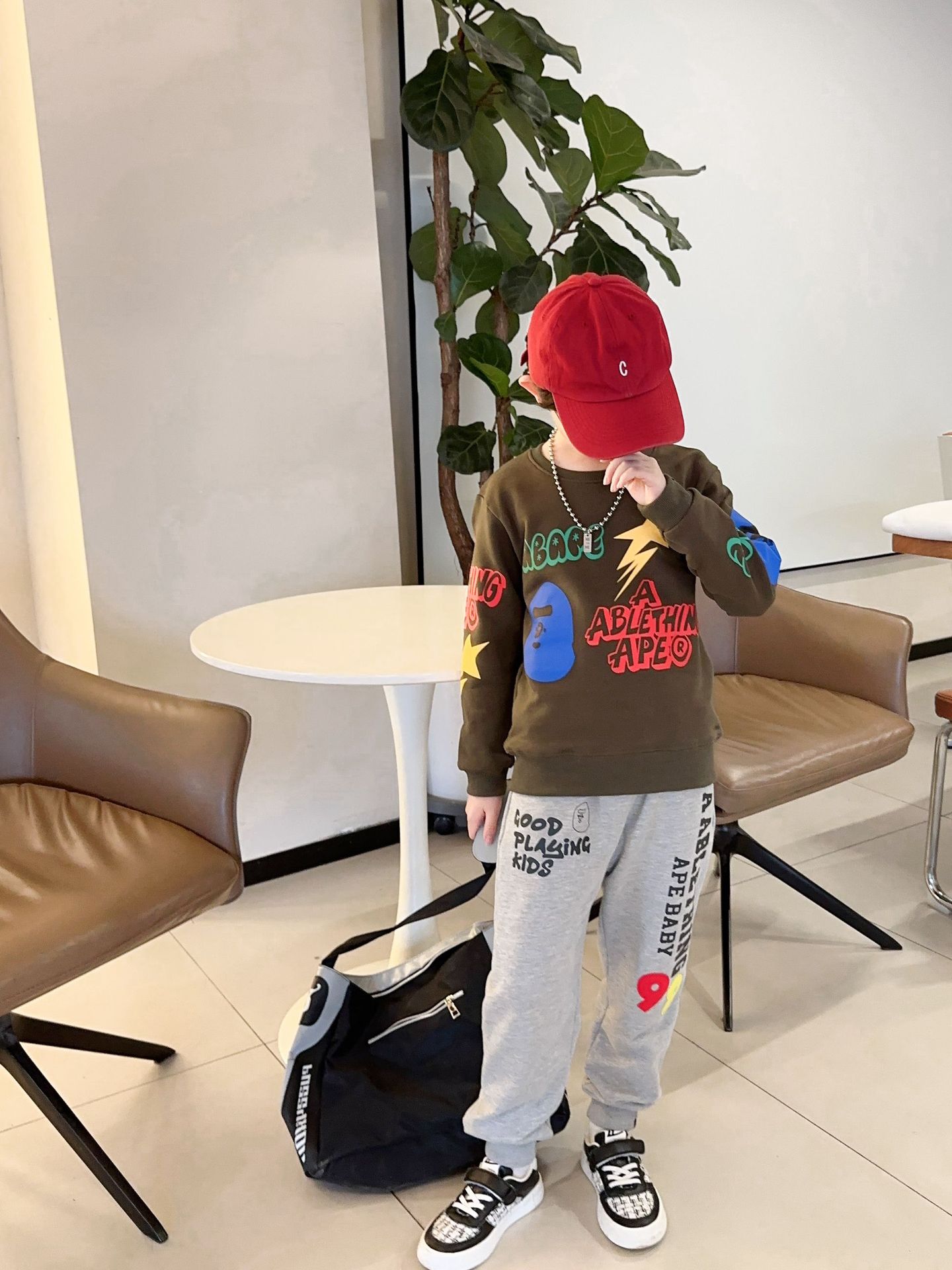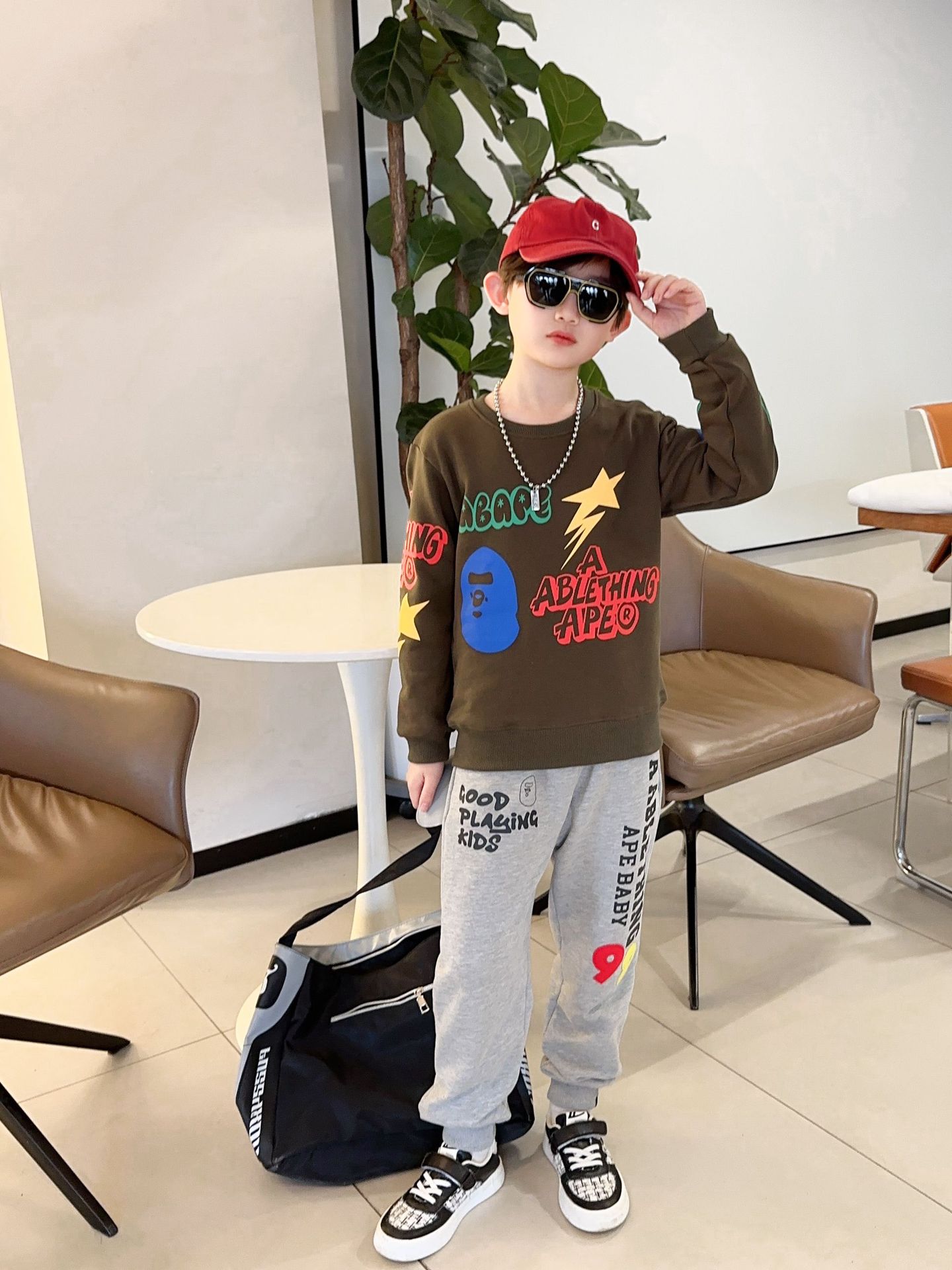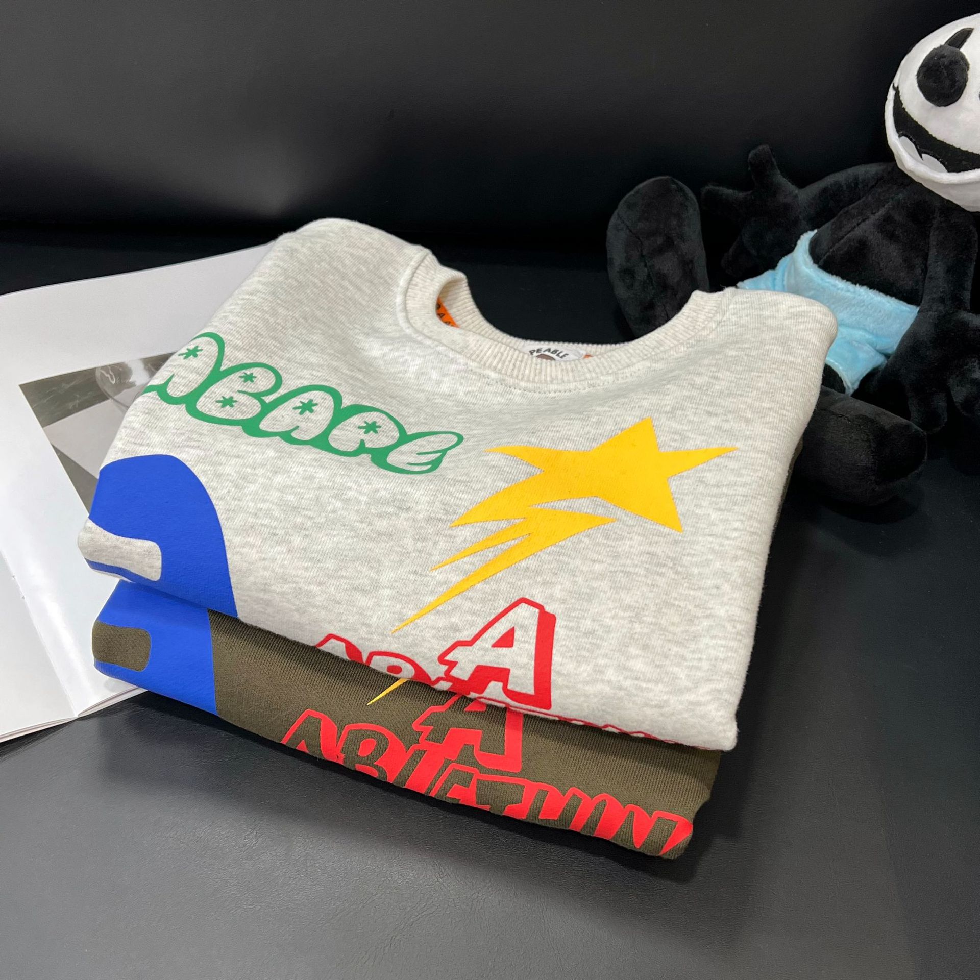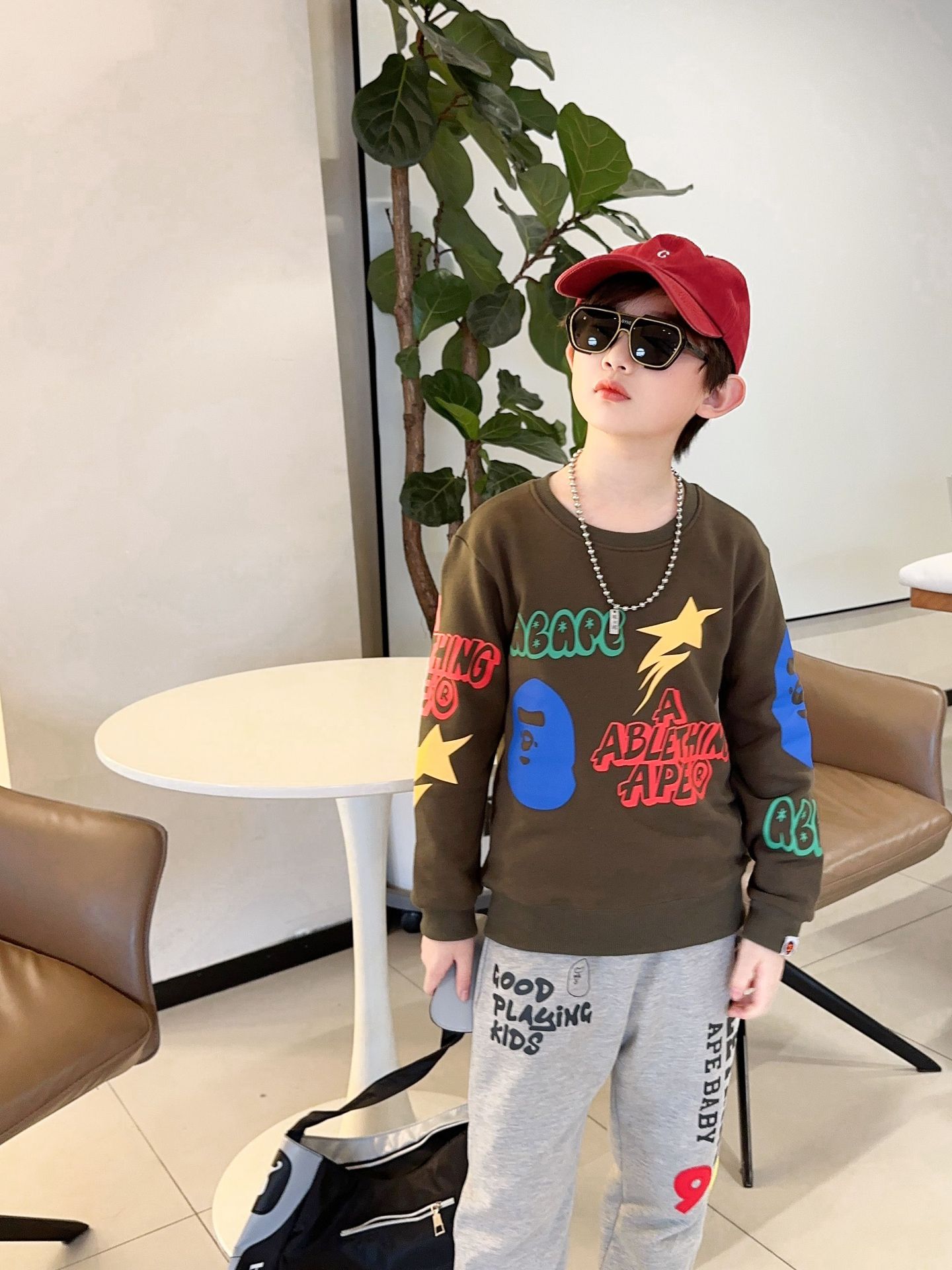가을 어린이용 봄, 가을, 겨울 스타일 트렌디 브랜드 캐주얼 라운드넥 풀오버 만화 프린트 칭다오 원숭이 아동복 부드러운 촉감스토어 가기