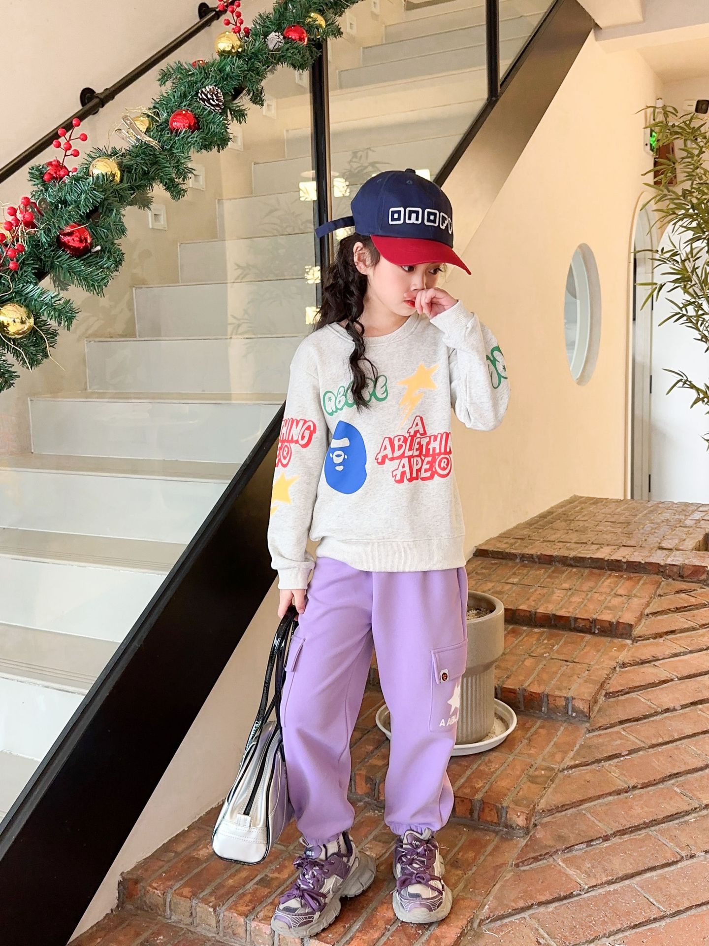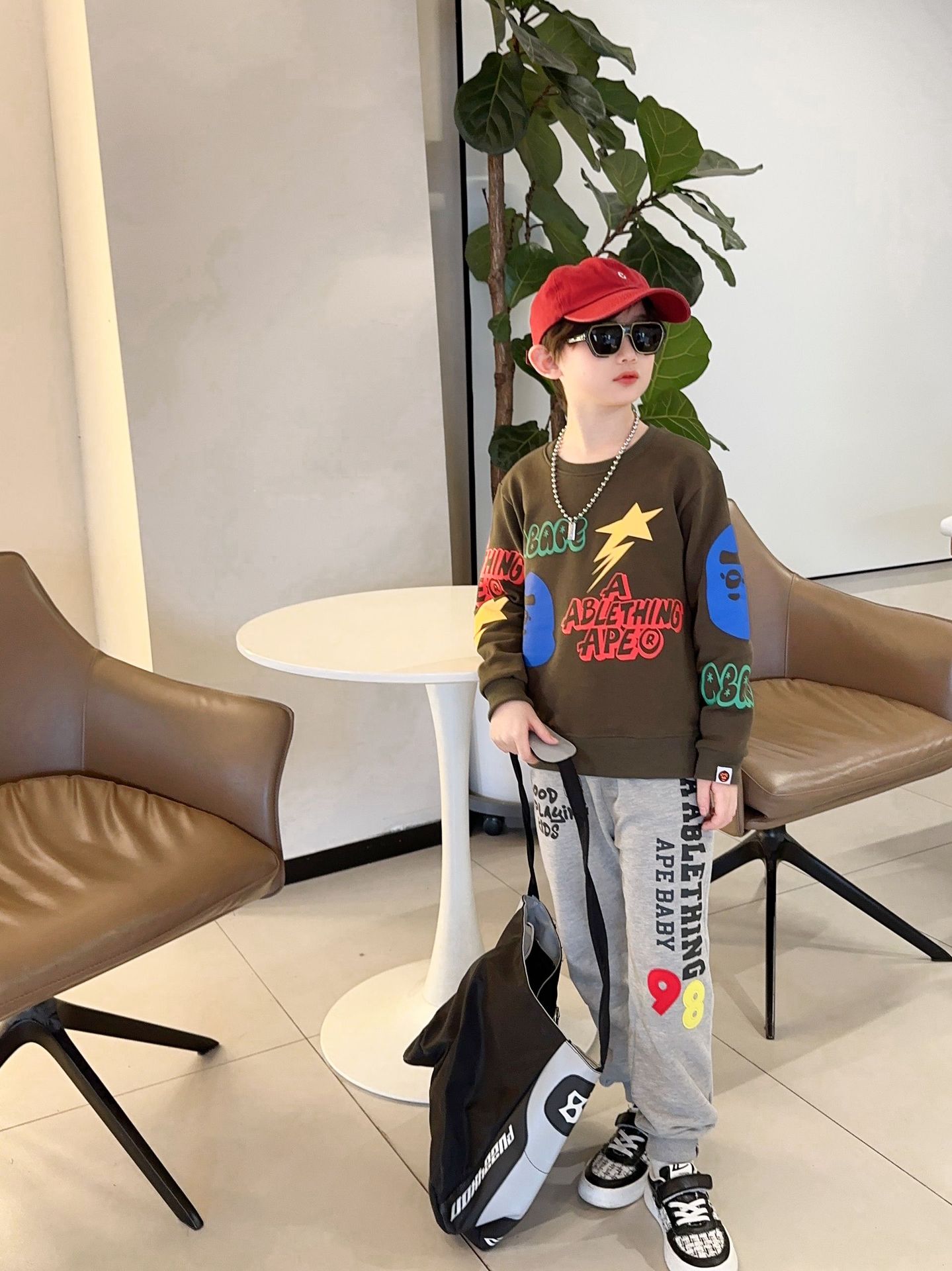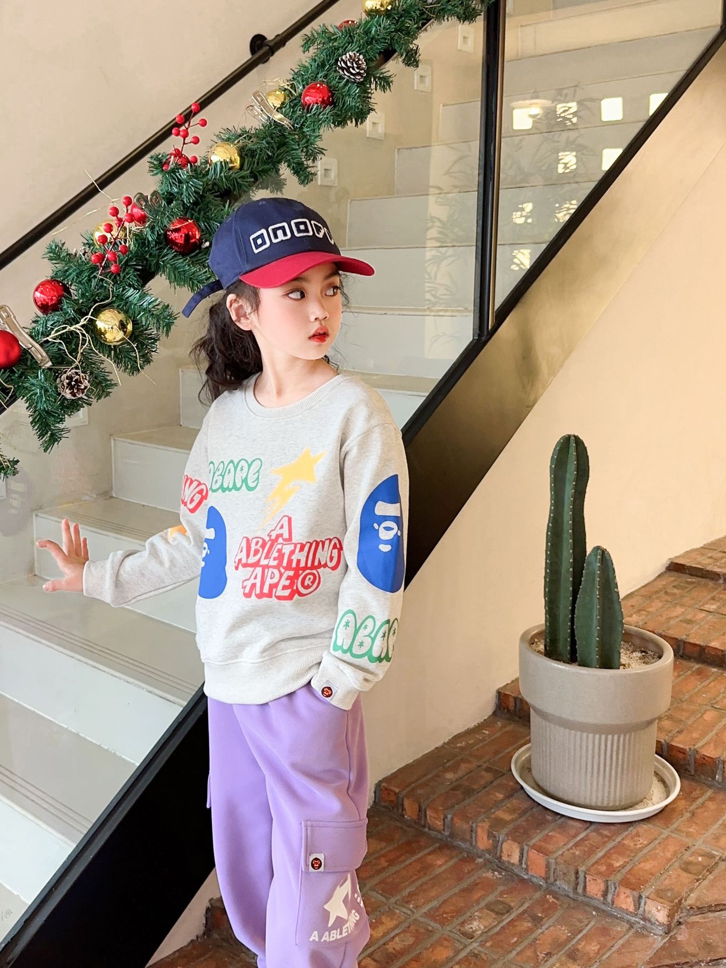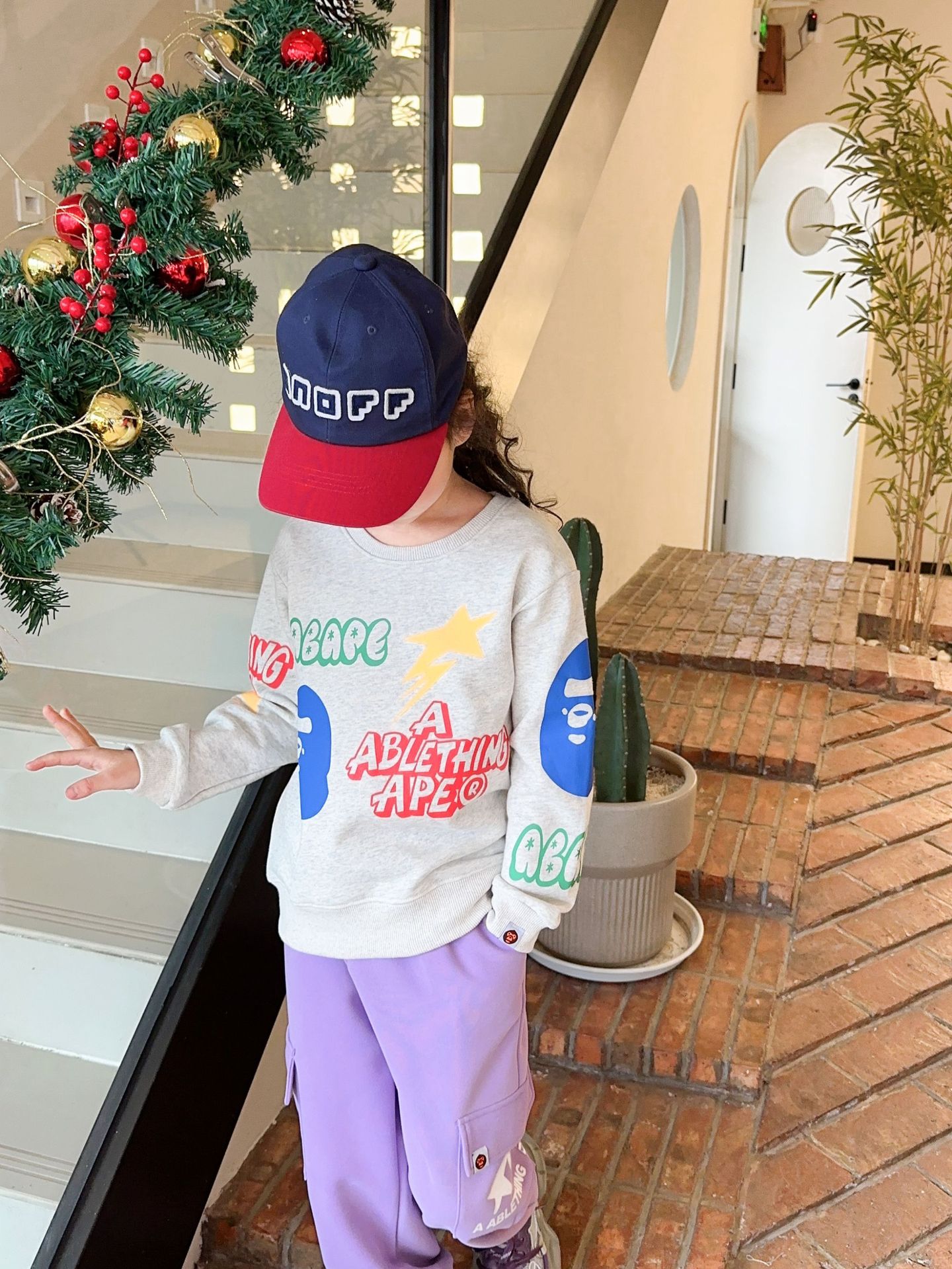 가을 어린이용 봄, 가을, 겨울 스타일 트렌디 브랜드 캐주얼 라운드넥 풀오버 만화 프린트 칭다오 원숭이 아동복 부드러운 촉감스토어 가기