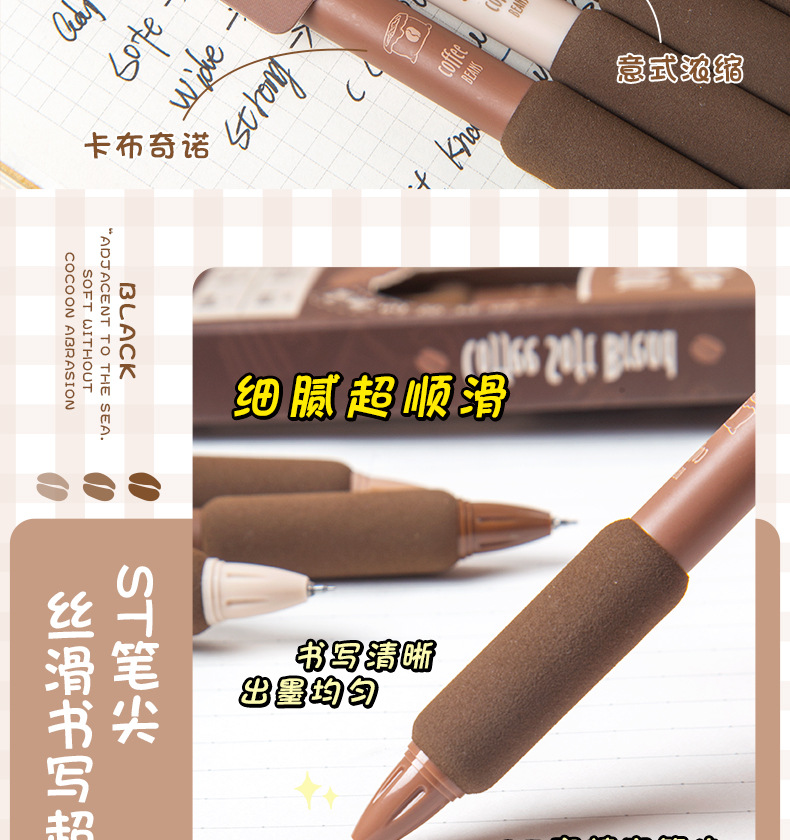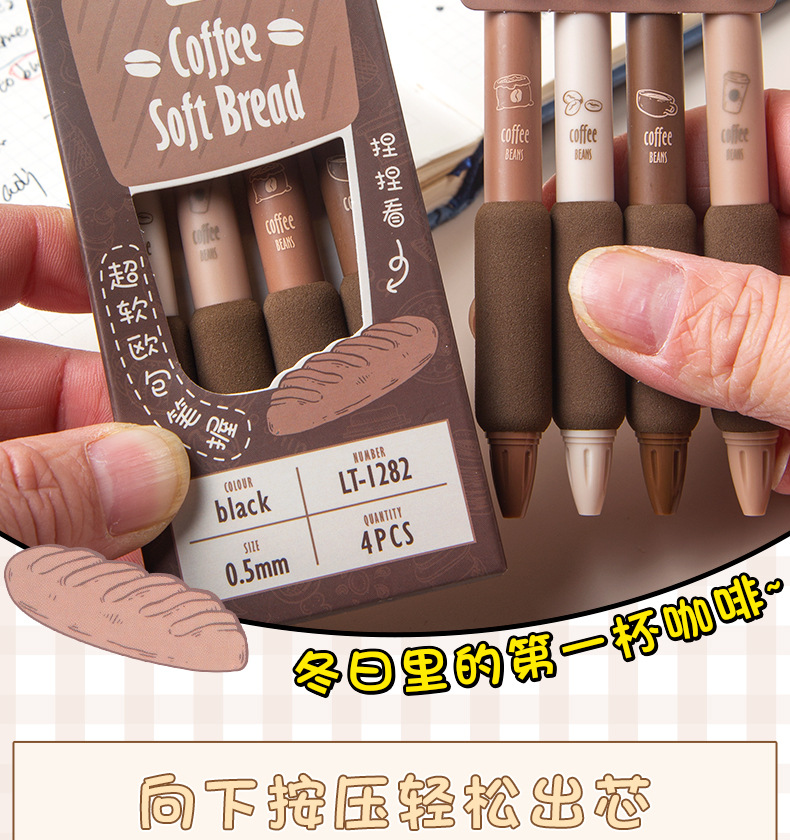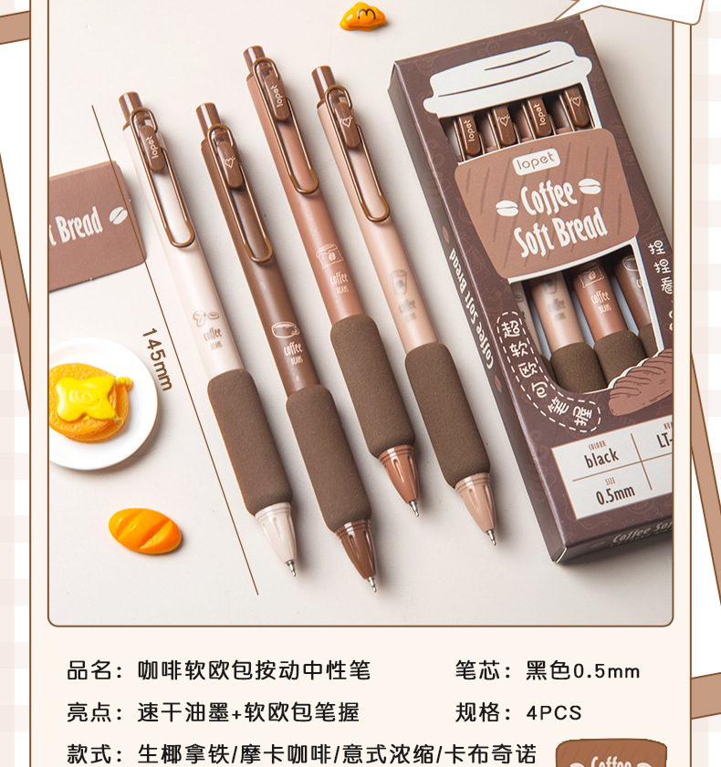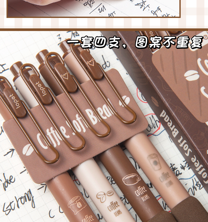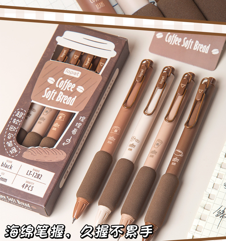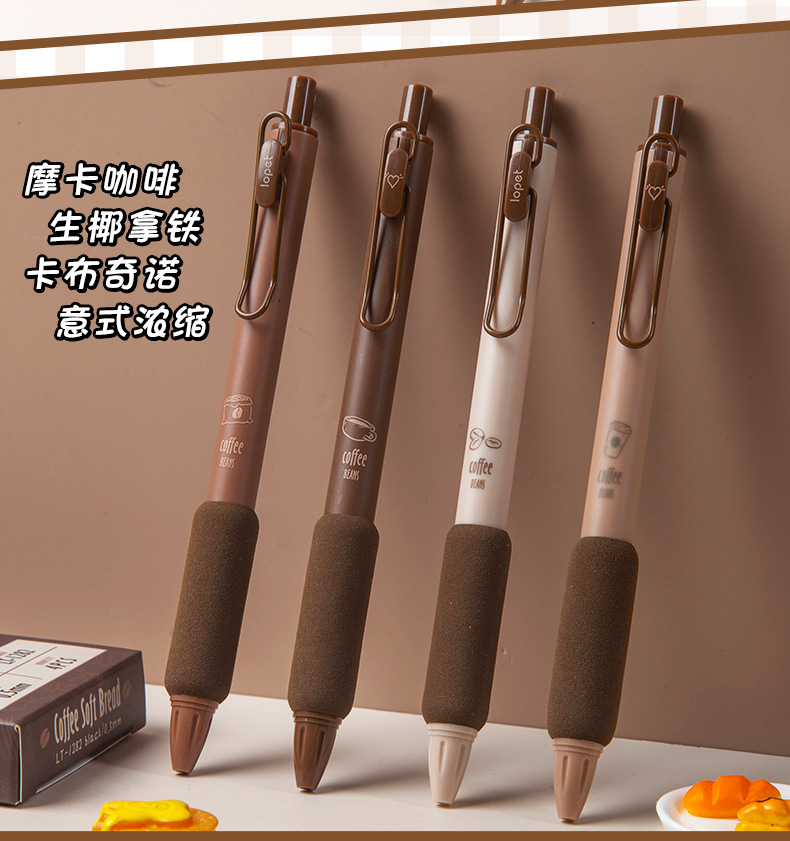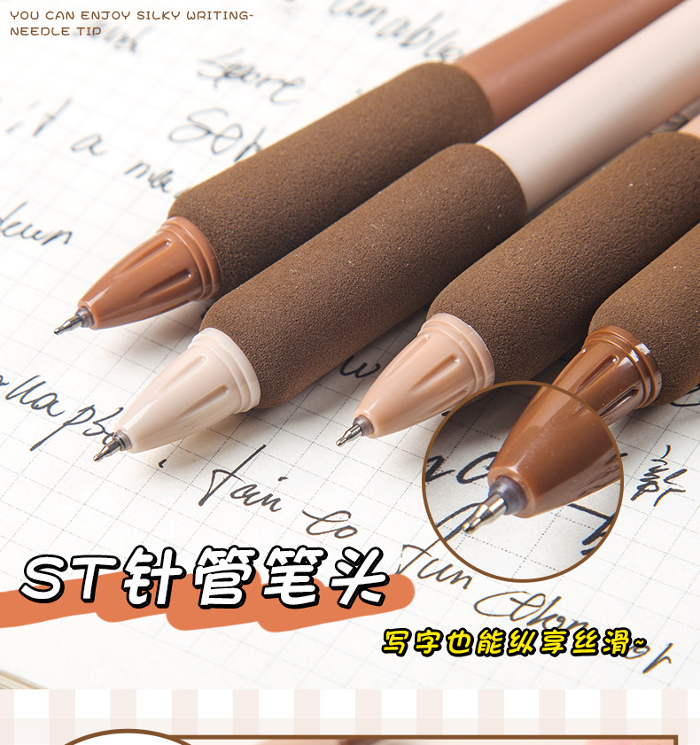 핀 푸시 펜 커피 유럽 가방 젤 펜 간단한 신선한 빠른 건조 학생 부드러운 브러시 질문 0.5 검은 펜스토어 가기