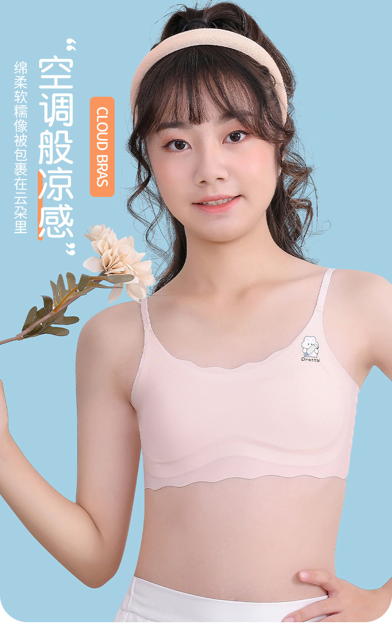 여름 얇은 얼음 실크 통기성 소녀 속옷 조끼 개발 기간 소녀 학생 중학교 고등학교 원활한 브래지어